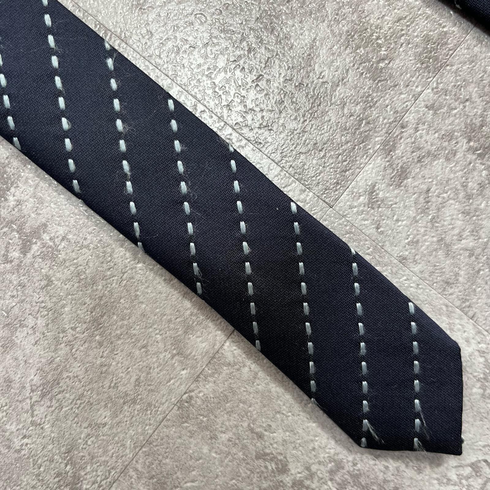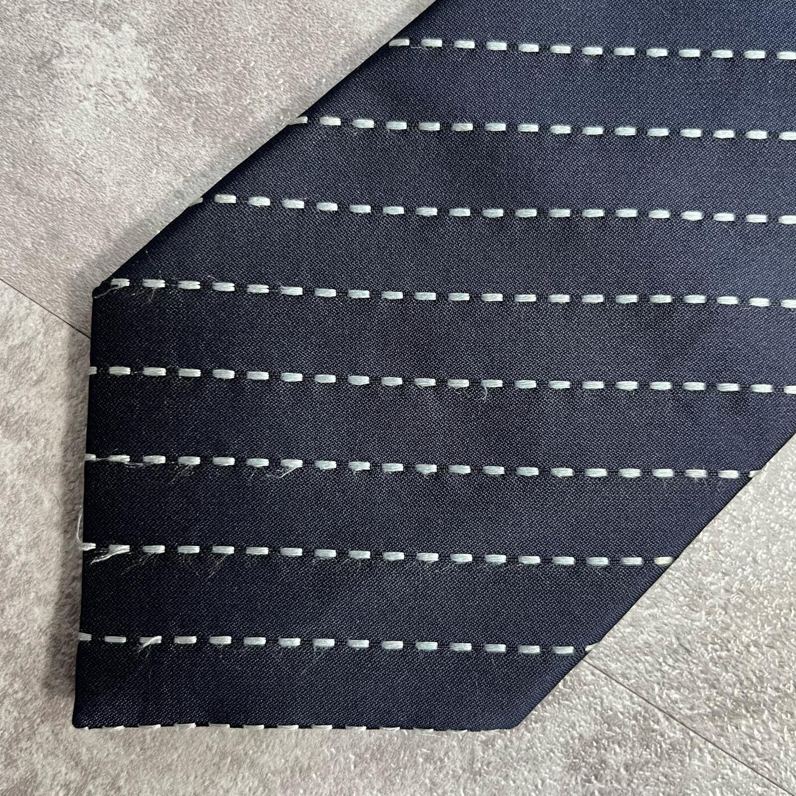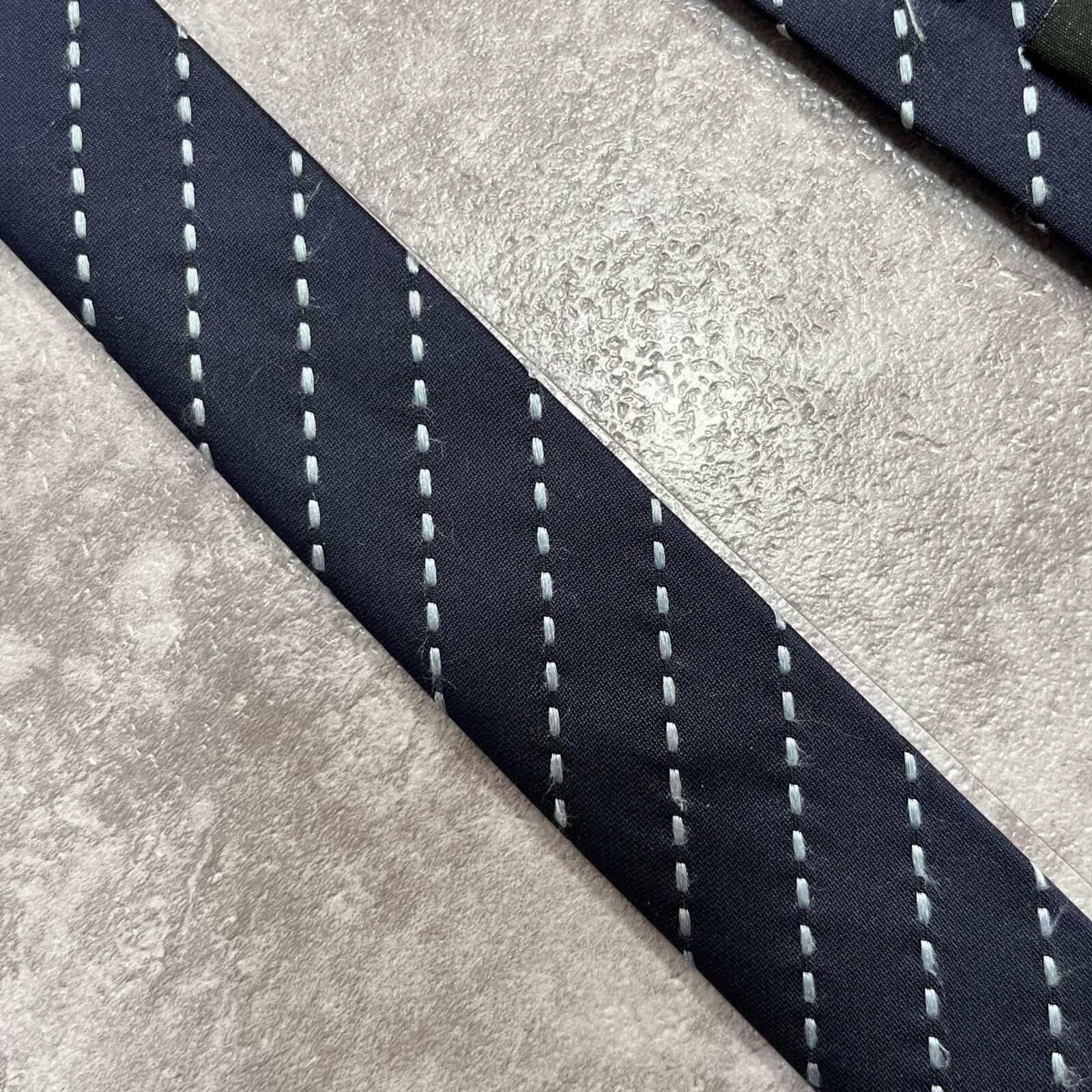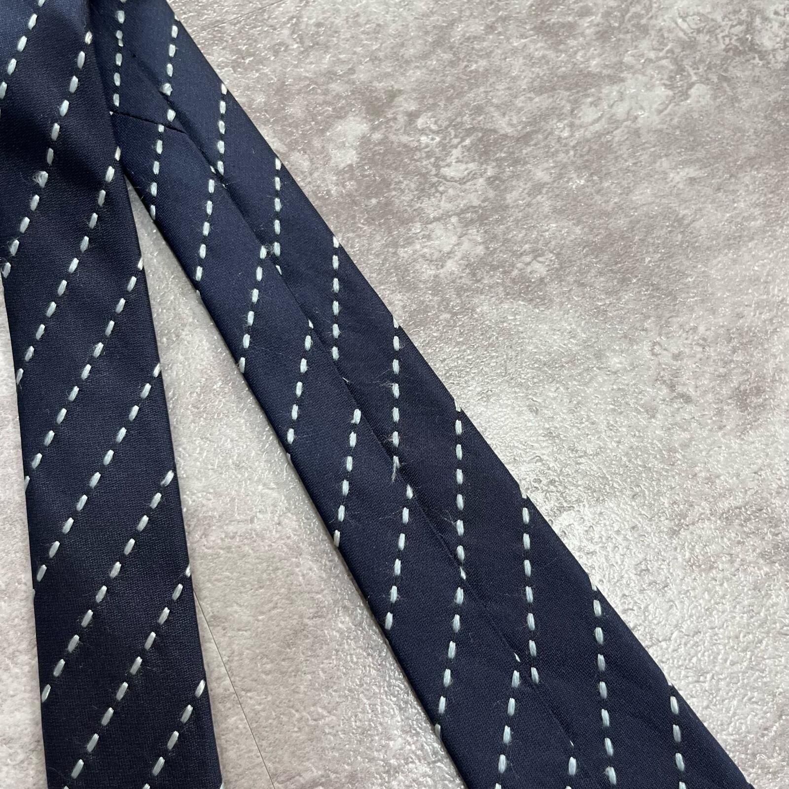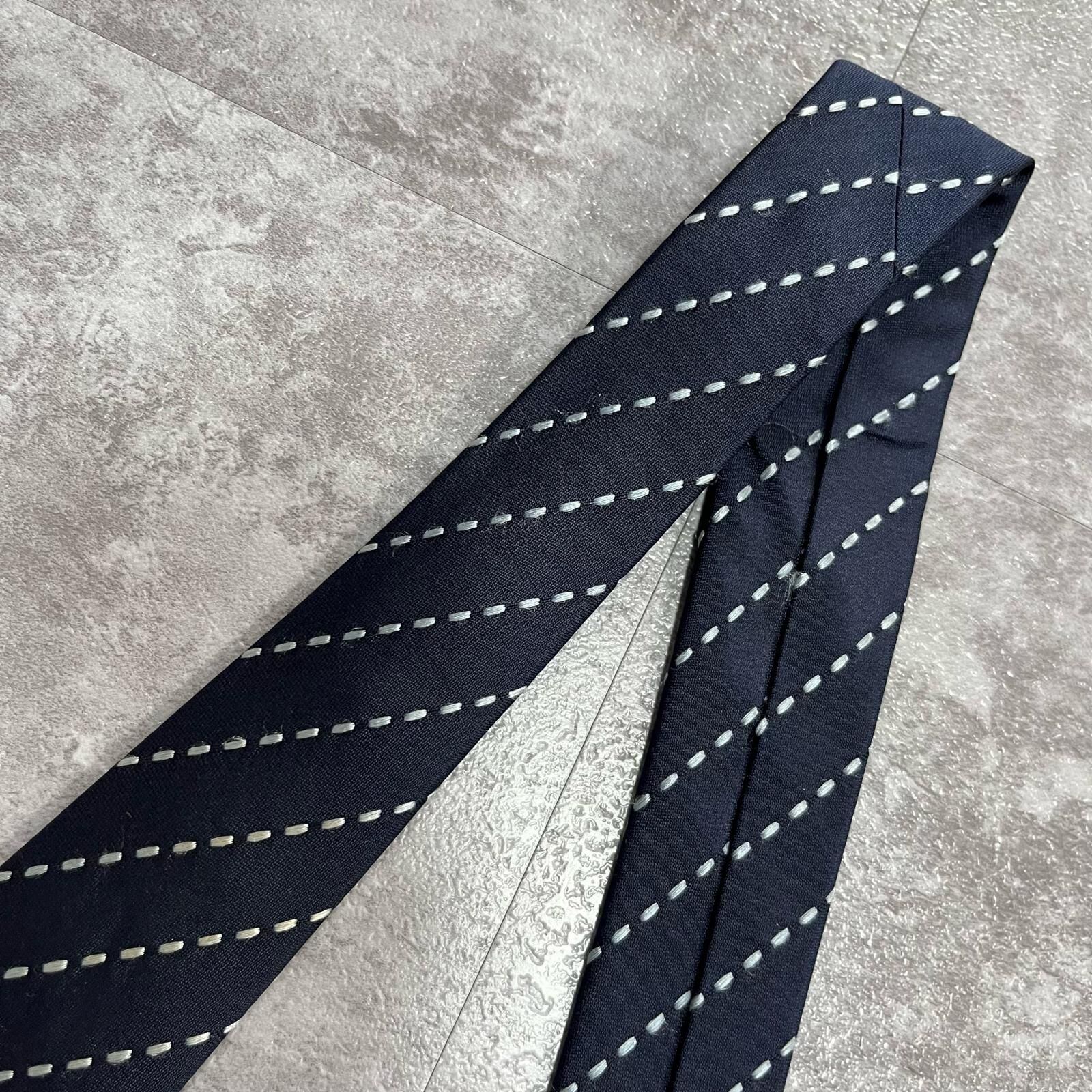 【ストライプ】ステッチストライプ柄ネクタイ シルク100% メンズ 中国製 ネイビー 紺色 ホワイト 白色 シンプル ビジネス向け クラシック