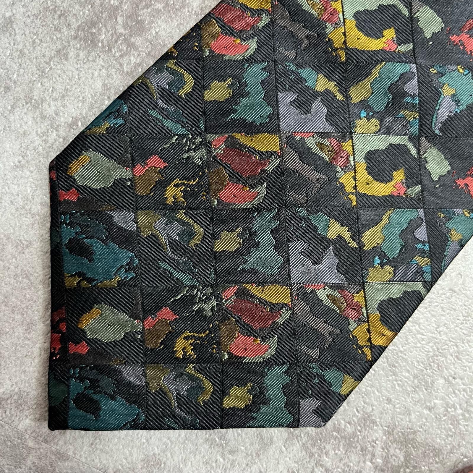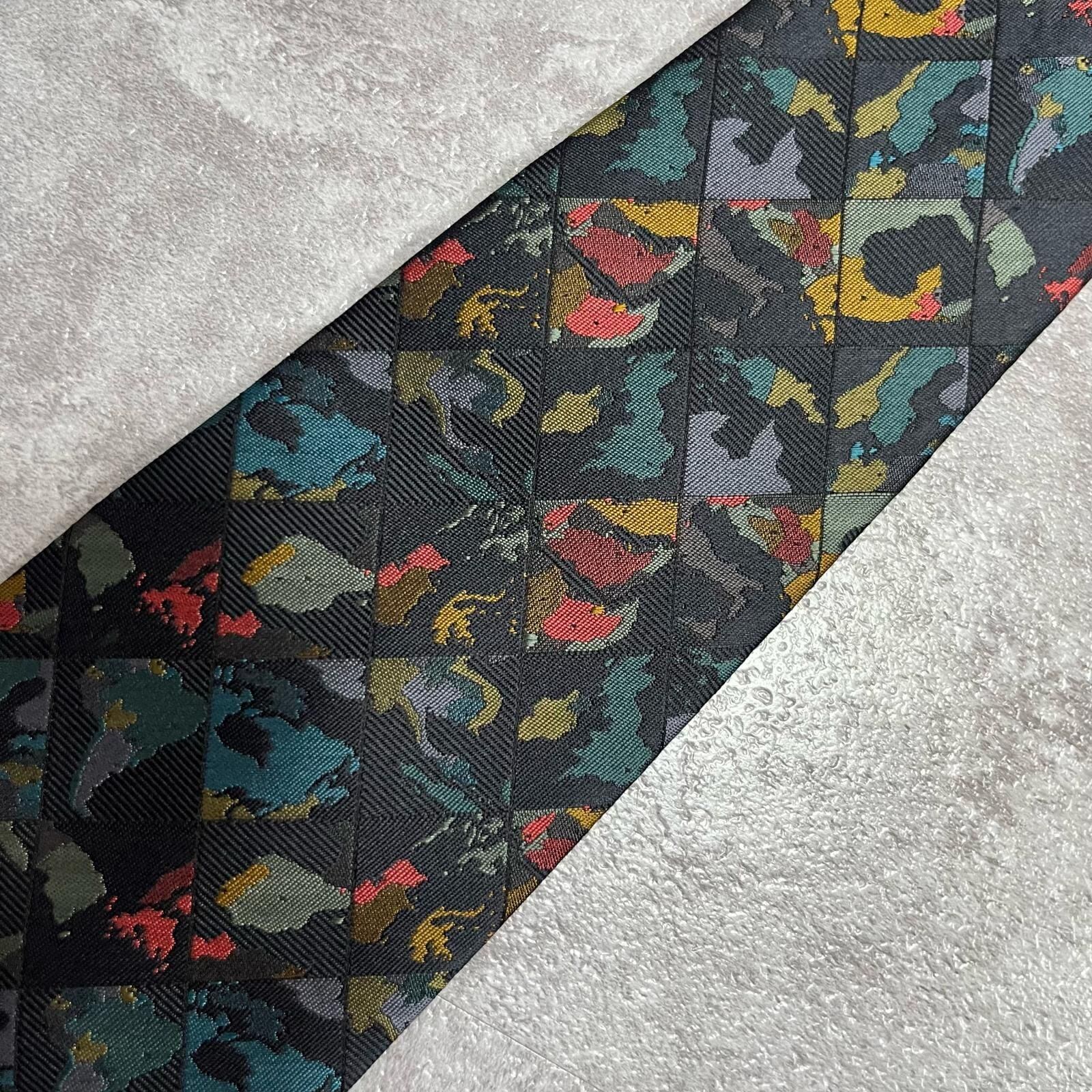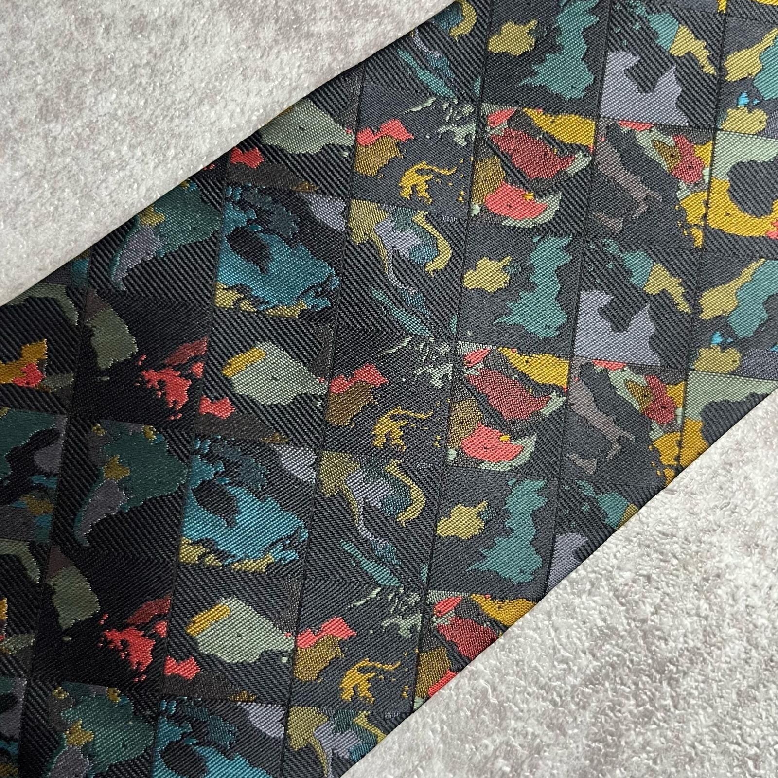 【銀座田屋】アニマル柄ネクタイ 動物モチーフ シルク100% メンズ 日本製 ブラック 黒色 マルチカラー 総柄 ビジネスネクタイ ブランドネクタイ フォーマルネクタイ アニマルデザイン