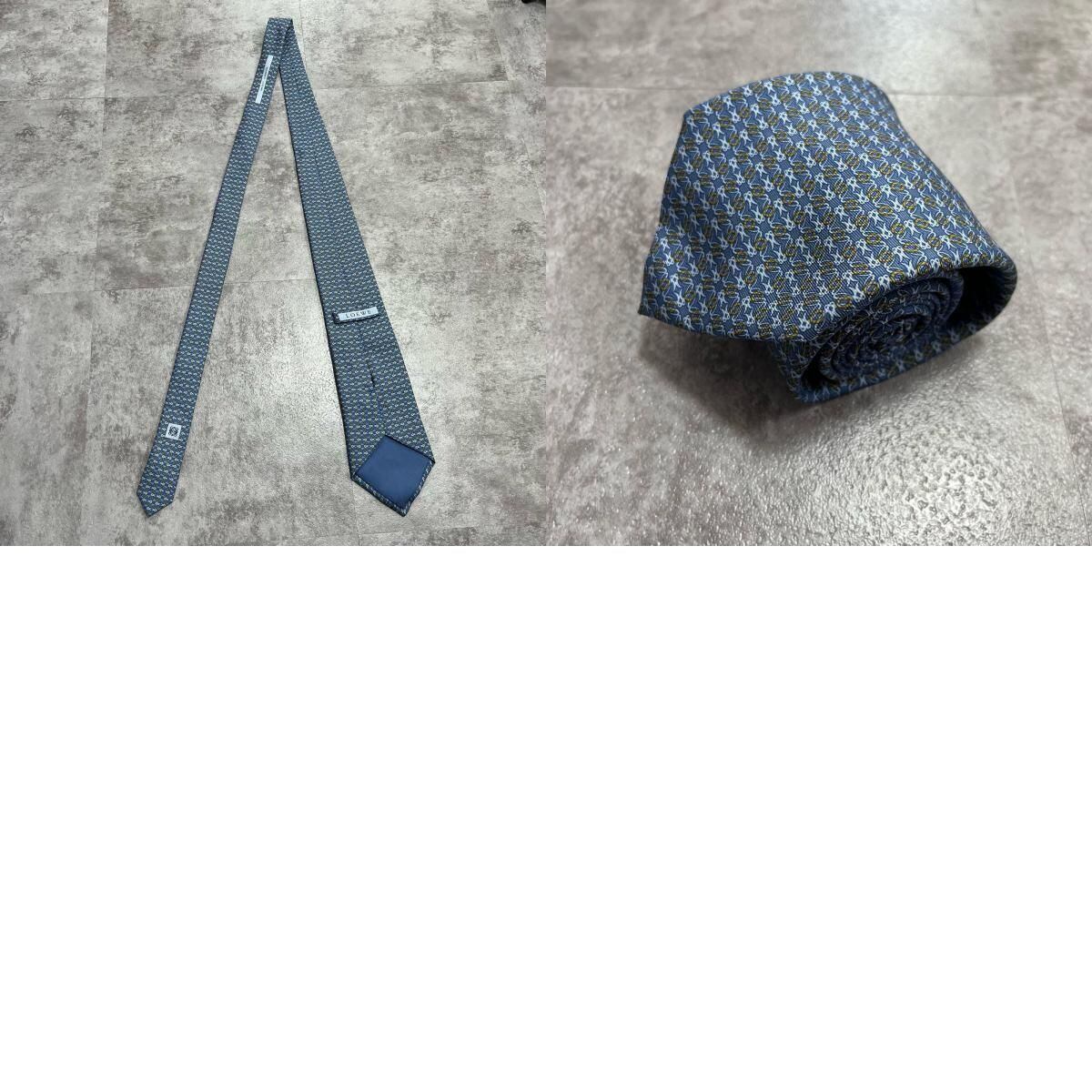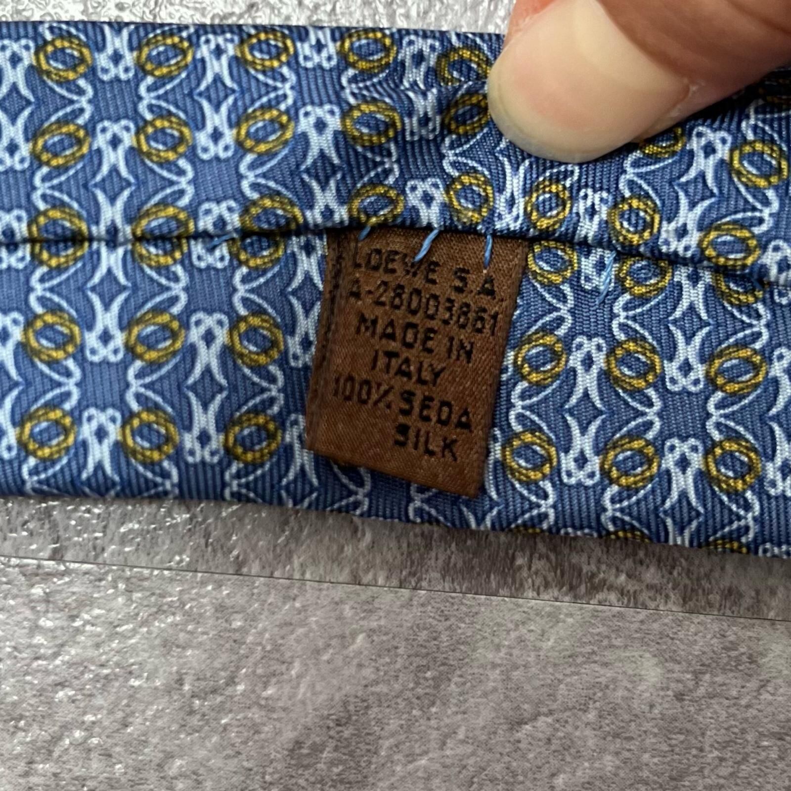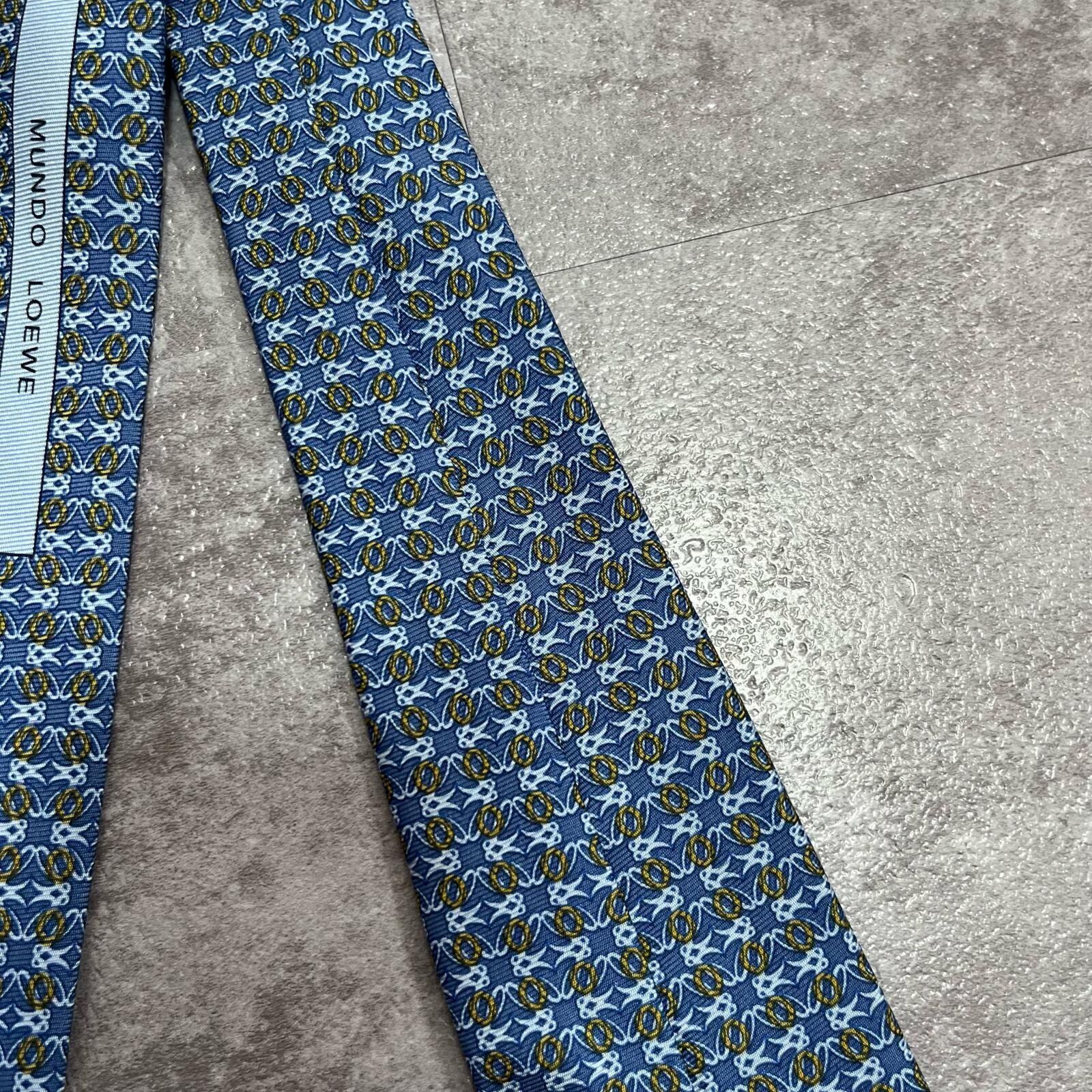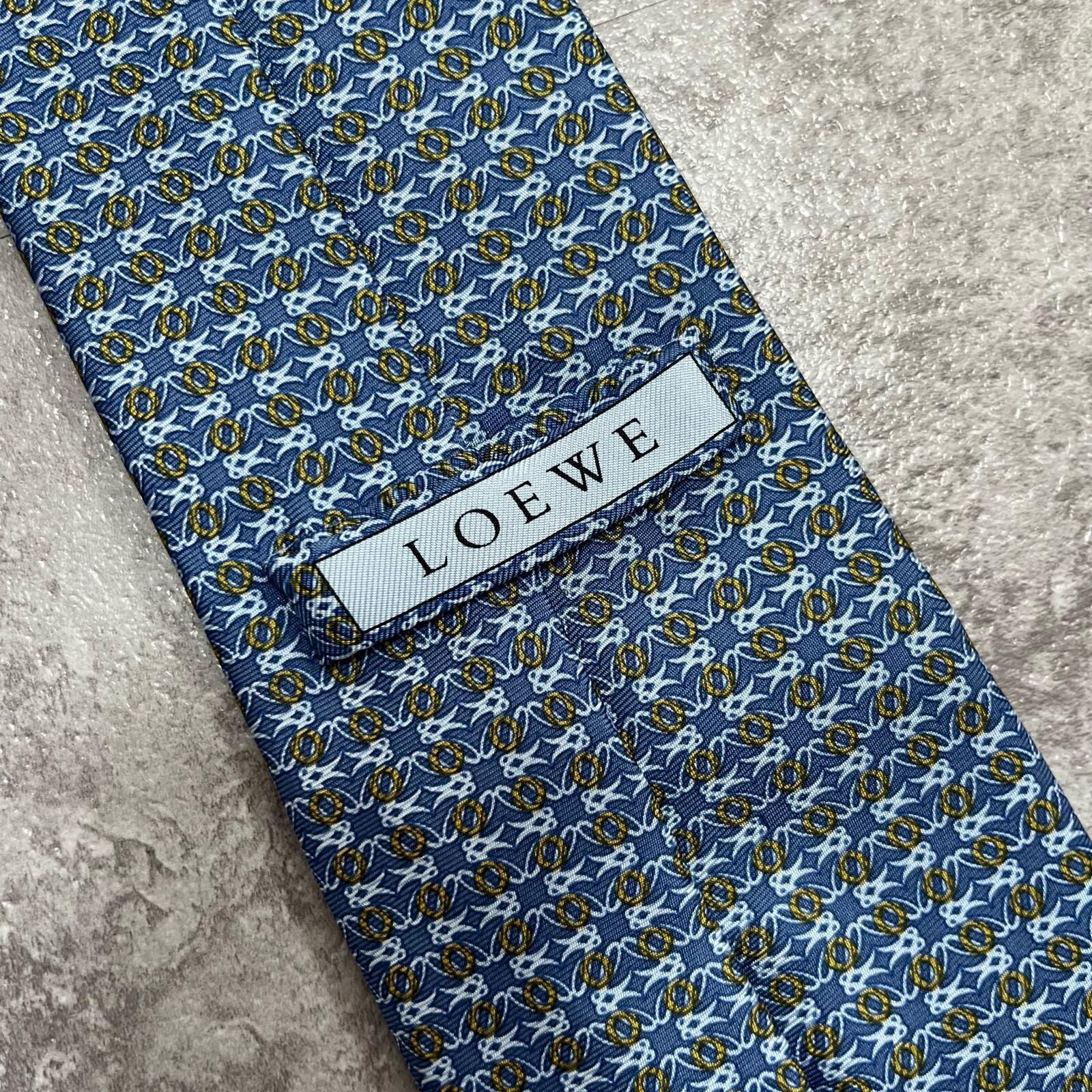 【LOEWE】ロエベ 小紋柄ネクタイ アナグラム風モチーフ シルク100% メンズ イタリア製 ブルー 青色 総柄 ビジネスネクタイ ブランドネクタイ フォーマルネクタイ 小紋デザイン