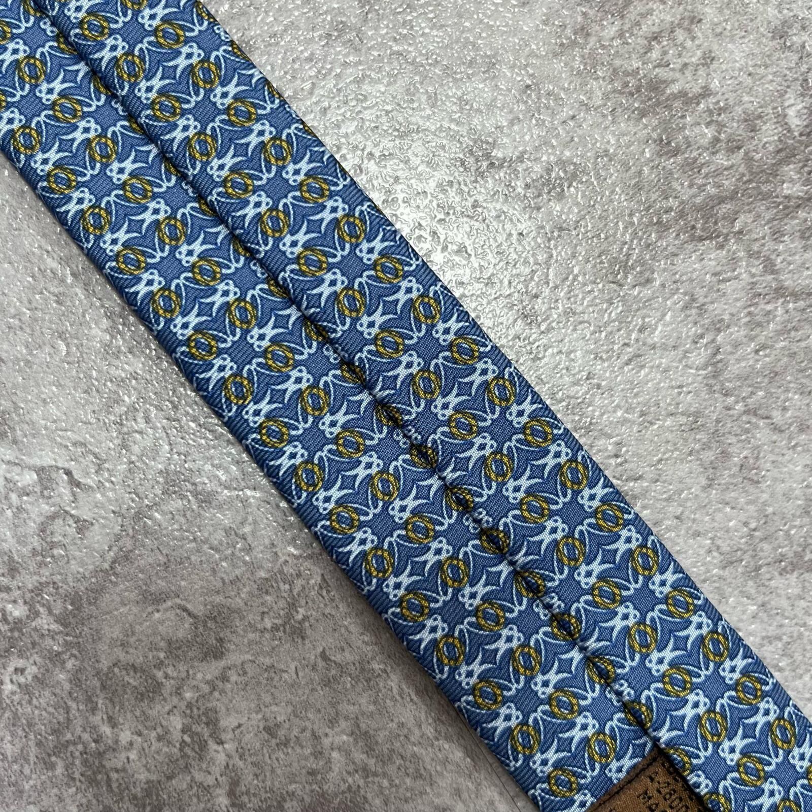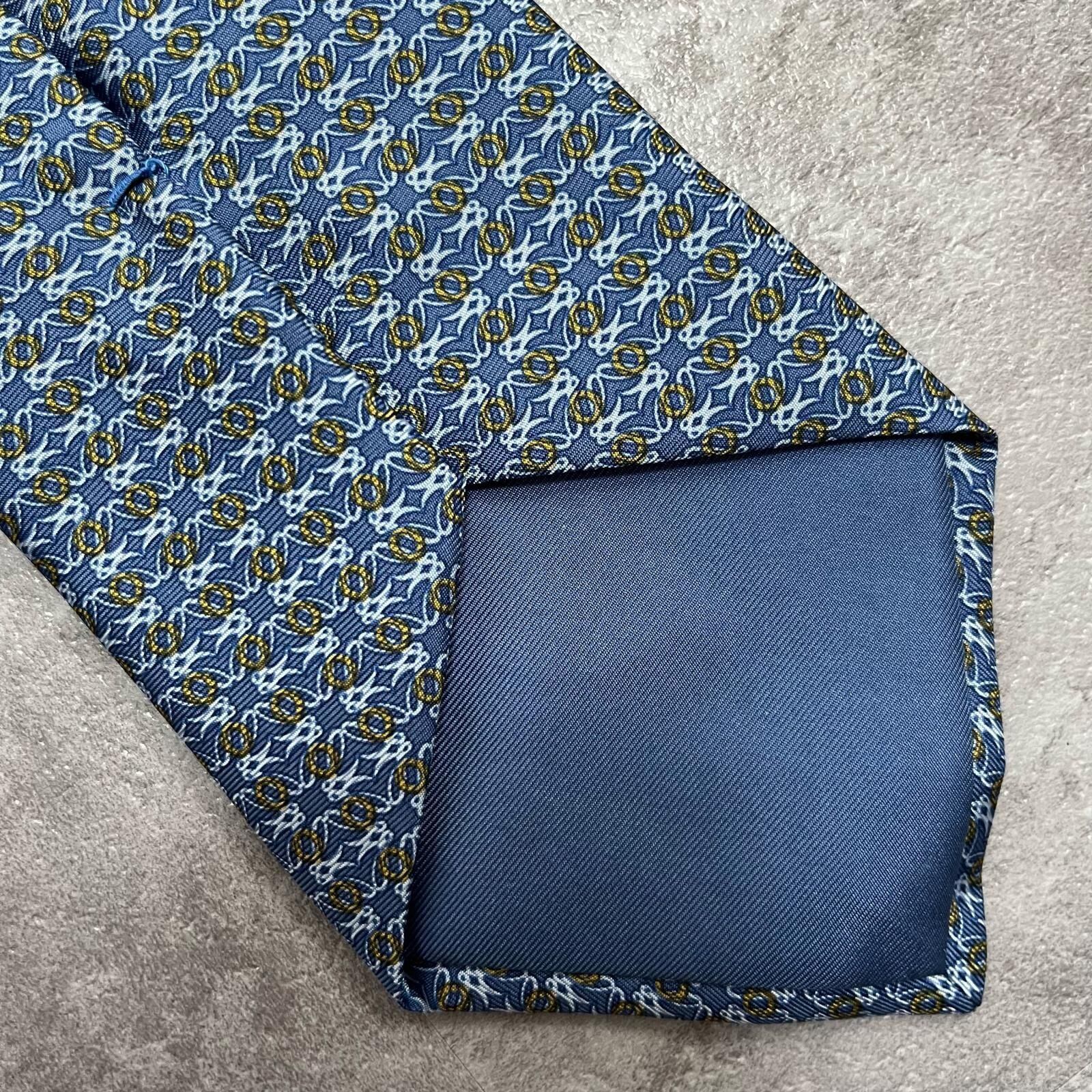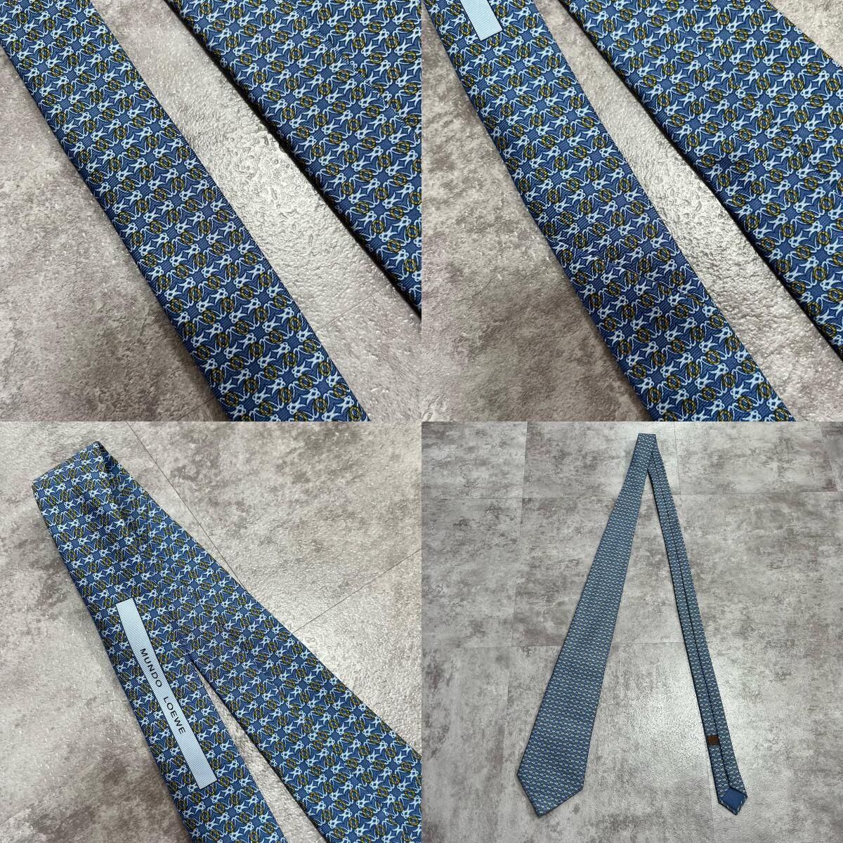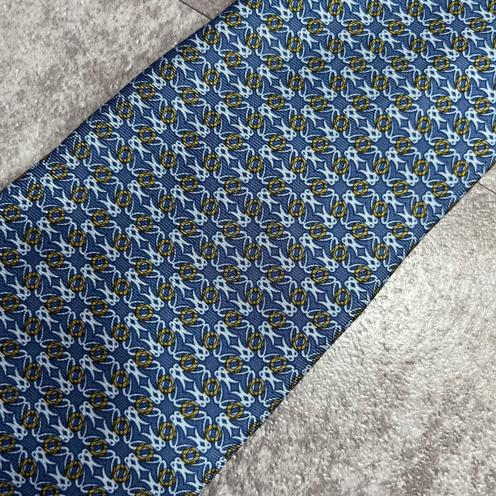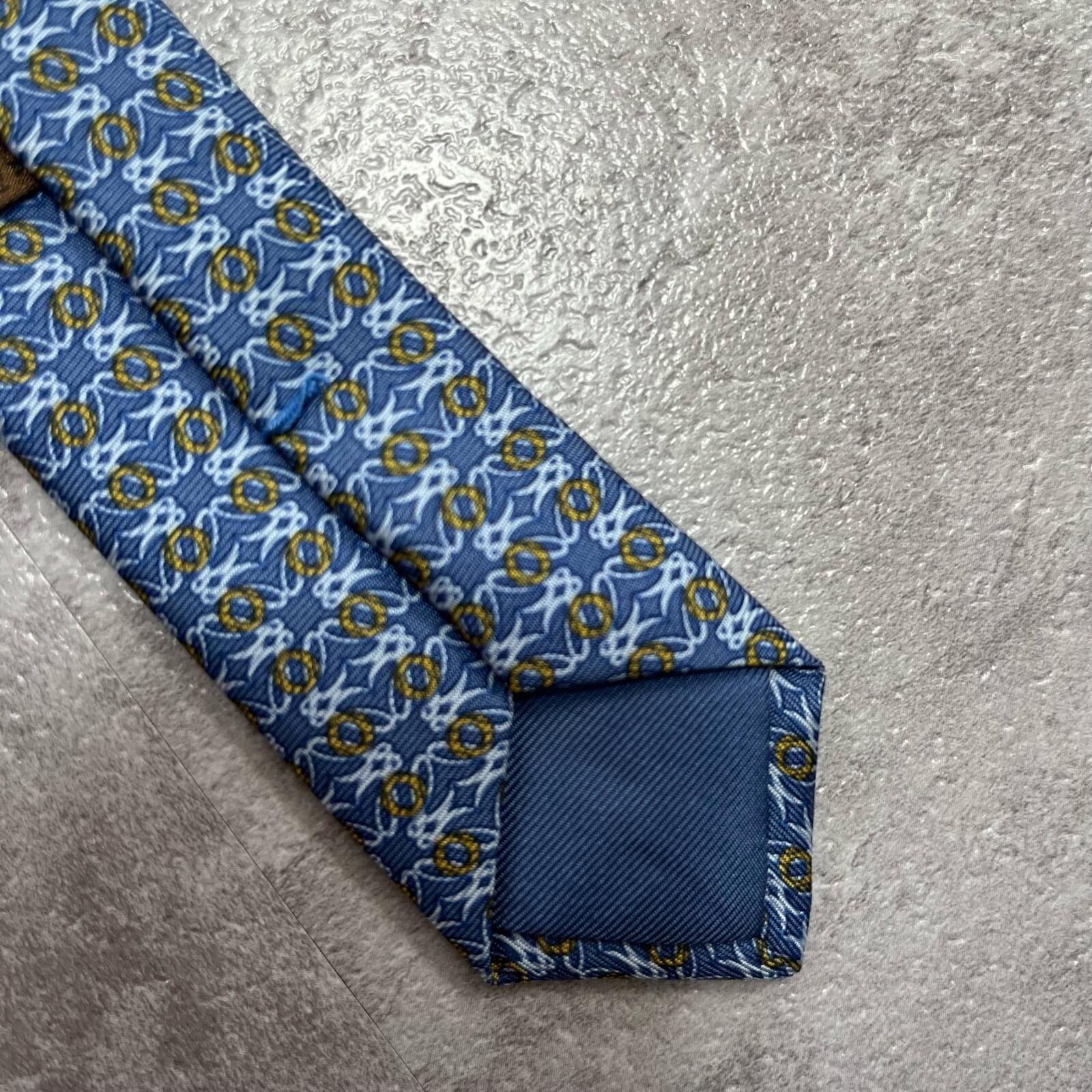 【LOEWE】ロエベ 小紋柄ネクタイ アナグラム風モチーフ シルク100% メンズ イタリア製 ブルー 青色 総柄 ビジネスネクタイ ブランドネクタイ フォーマルネクタイ 小紋デザイン