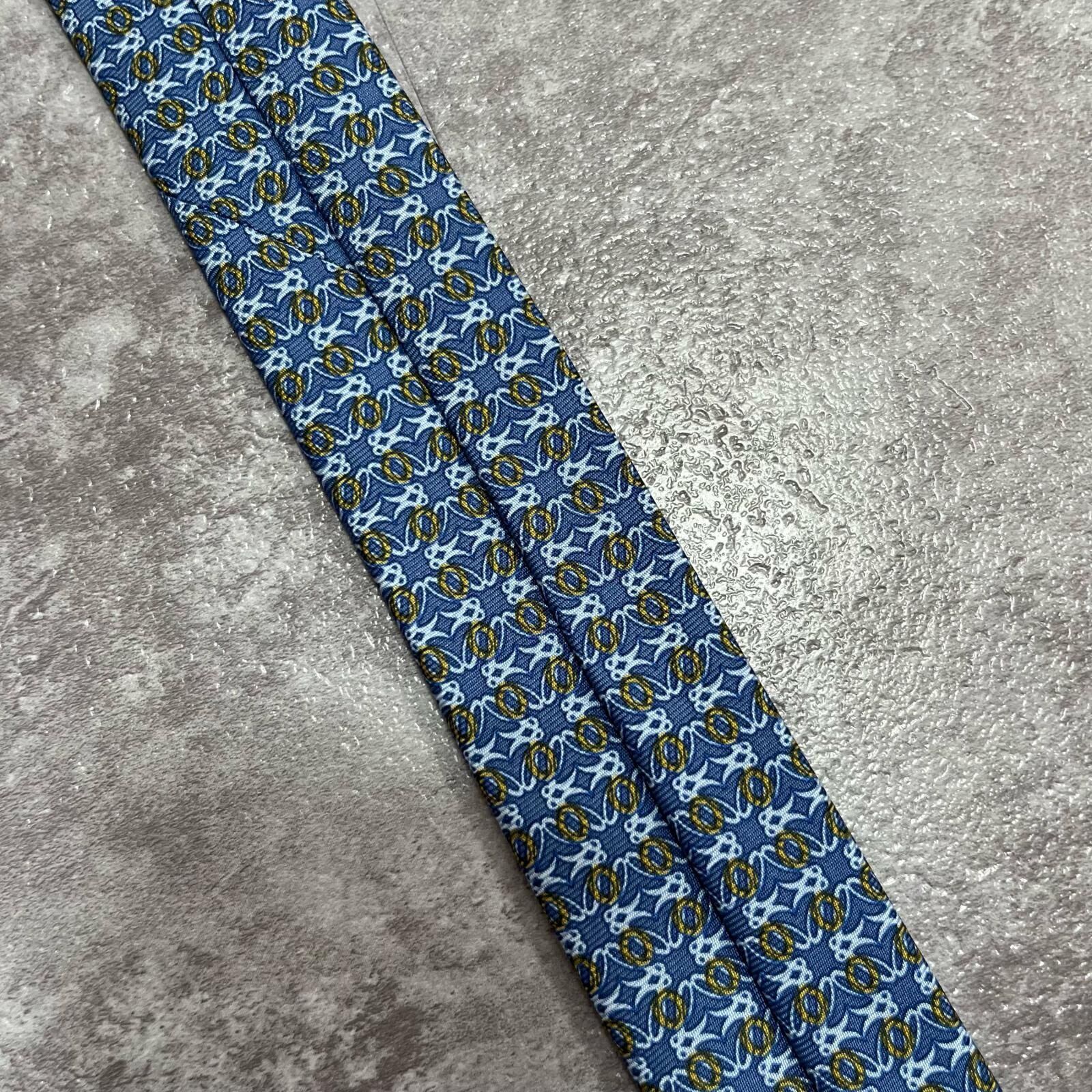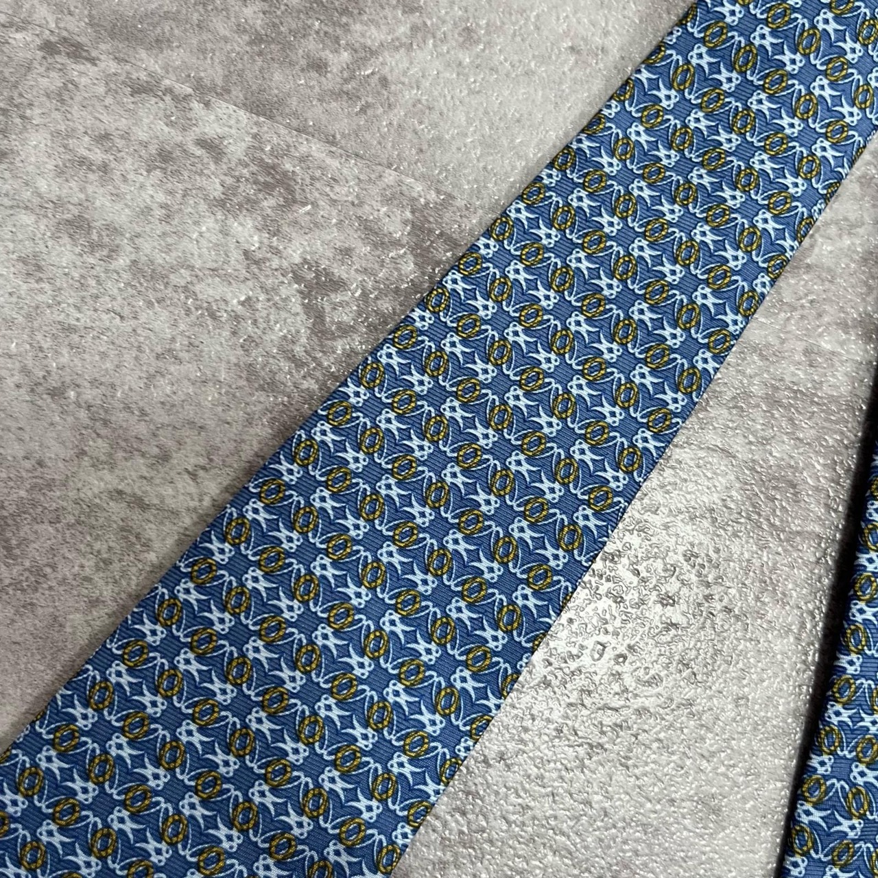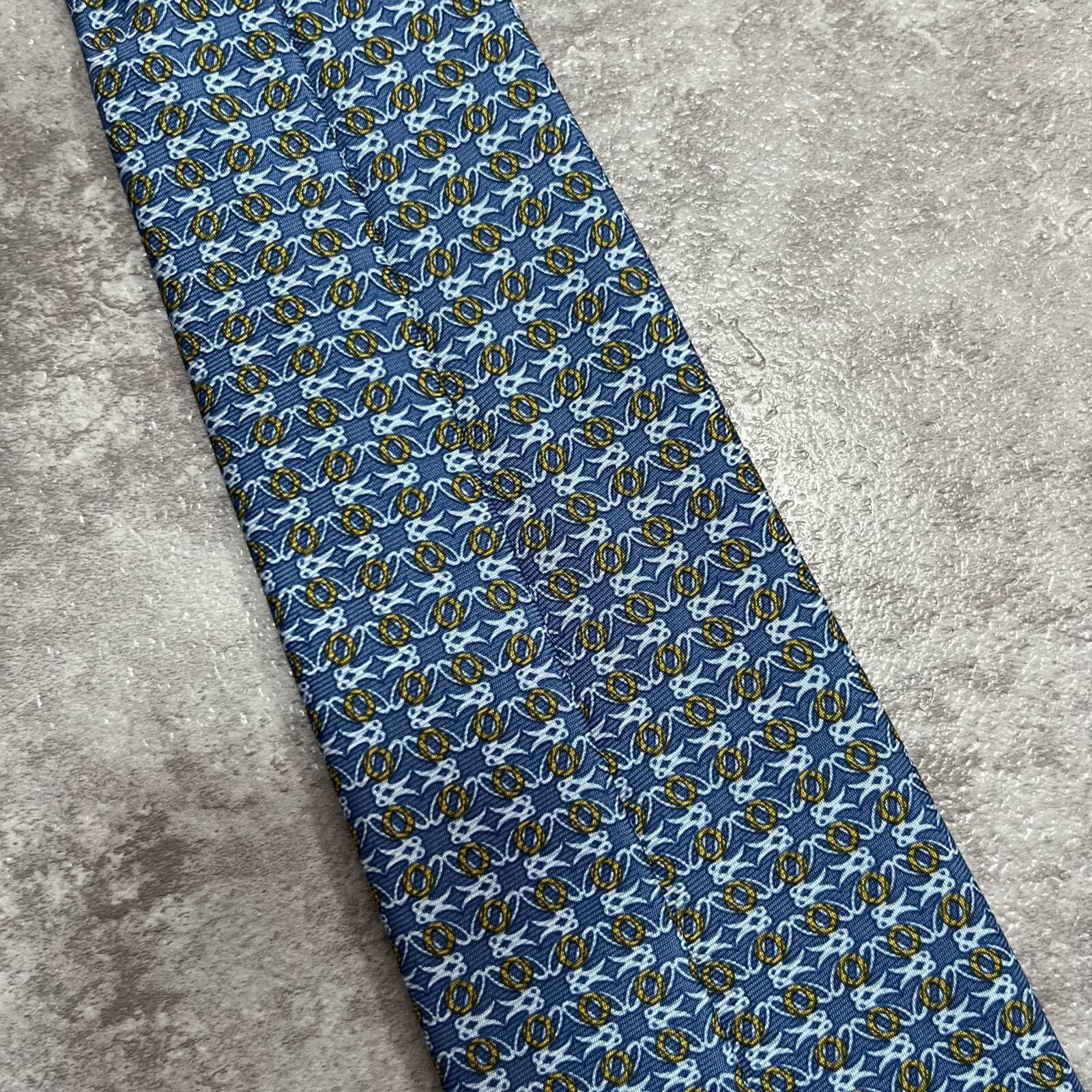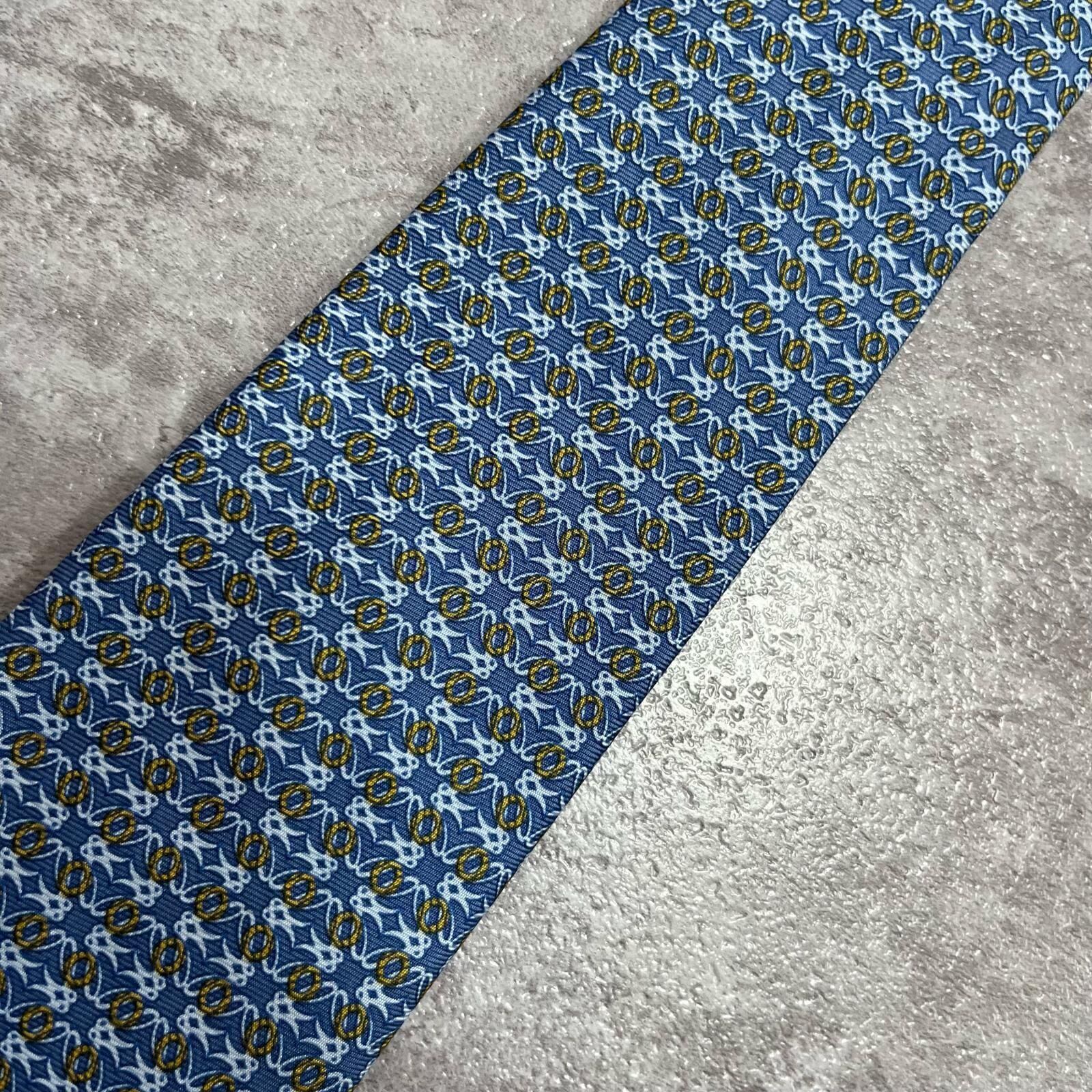 【LOEWE】ロエベ 小紋柄ネクタイ アナグラム風モチーフ シルク100% メンズ イタリア製 ブルー 青色 総柄 ビジネスネクタイ ブランドネクタイ フォーマルネクタイ 小紋デザイン