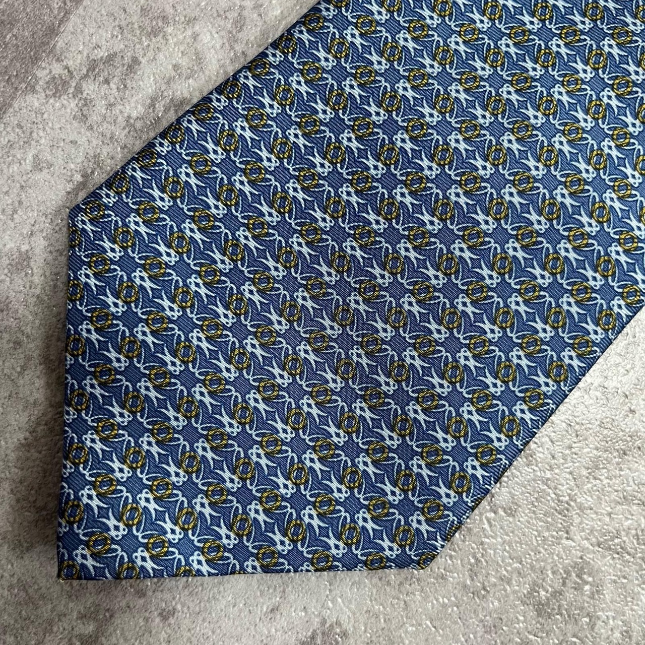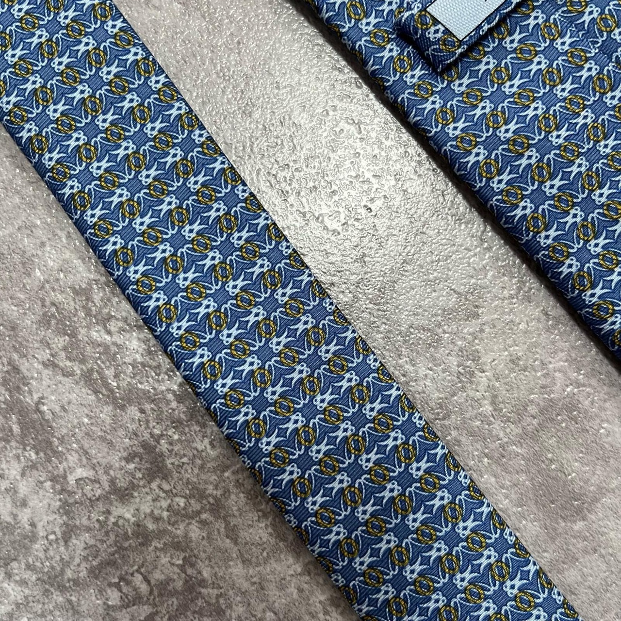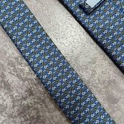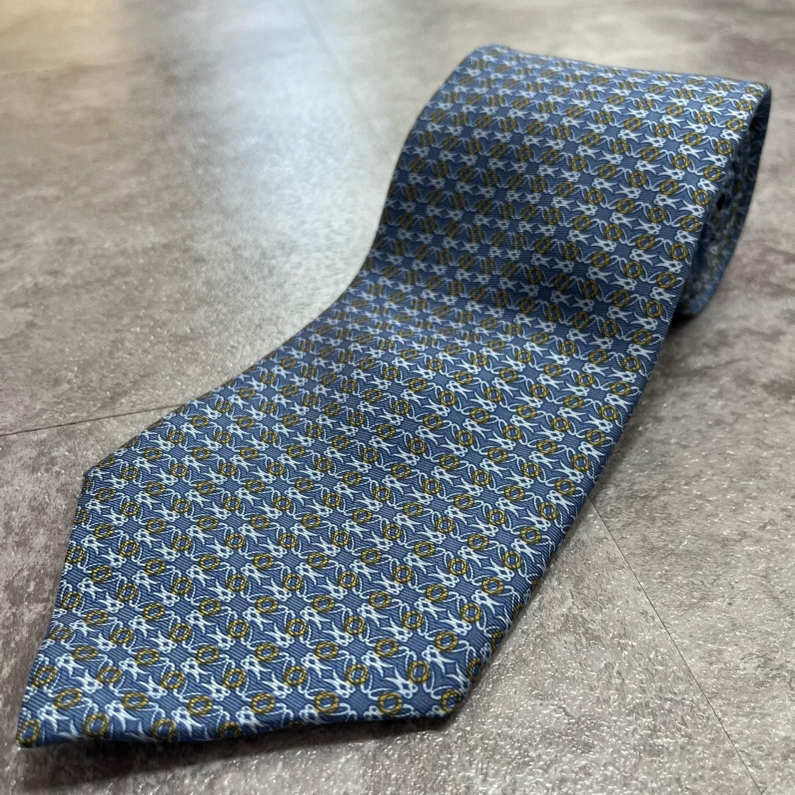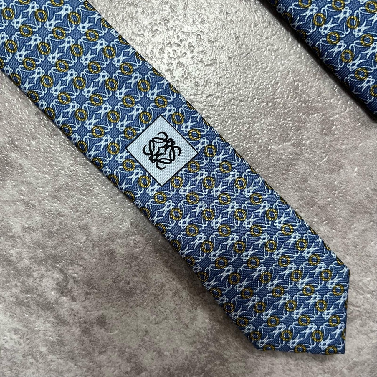 【LOEWE】ロエベ 小紋柄ネクタイ アナグラム風モチーフ シルク100% メンズ イタリア製 ブルー 青色 総柄 ビジネスネクタイ ブランドネクタイ フォーマルネクタイ 小紋デザイン