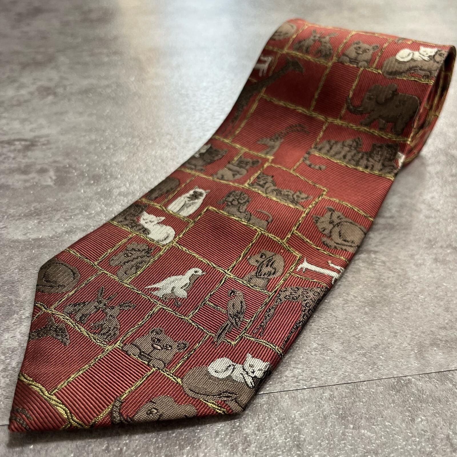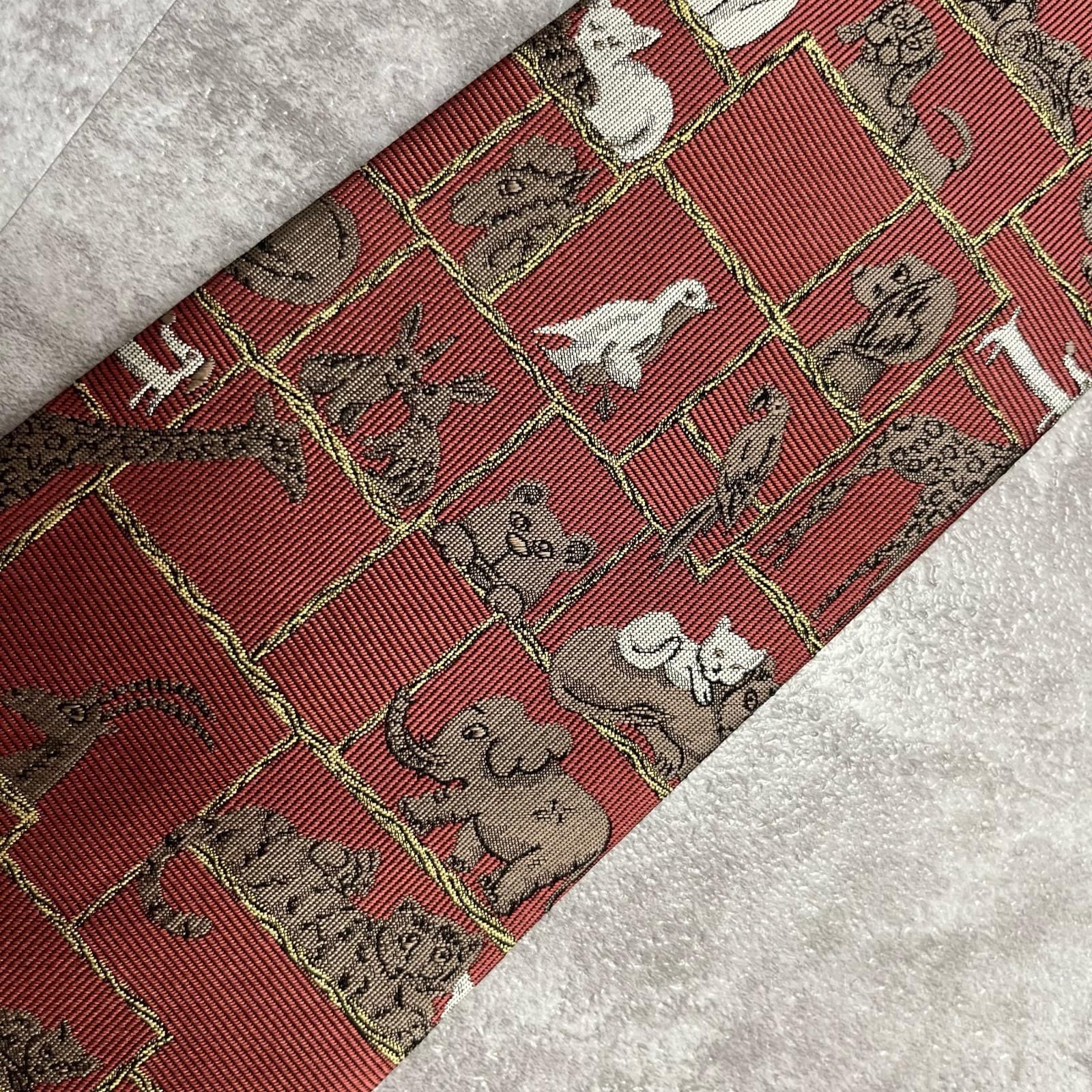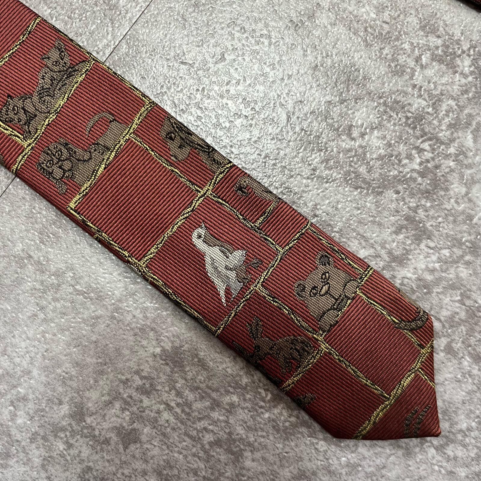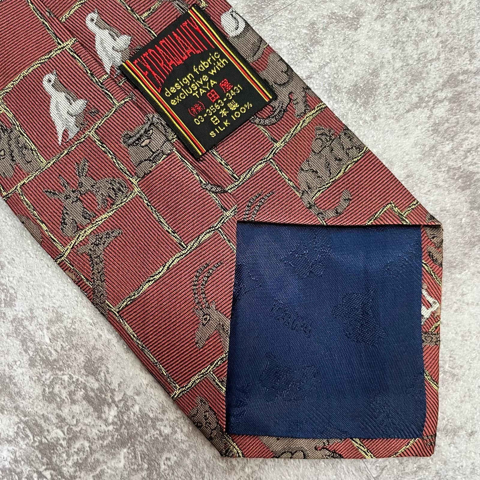 【銀座田屋】アニマル柄ネクタイ 動物モチーフ シルク100% メンズ 日本製 レッド 赤色 総柄 ビジネスネクタイ ブランドネクタイ フォーマルネクタイ 動物デザイン