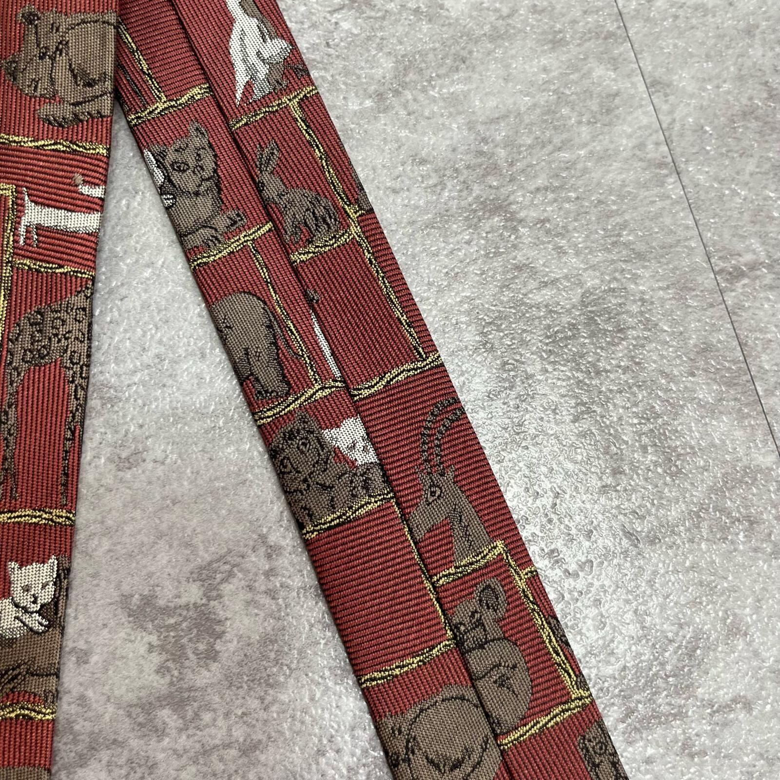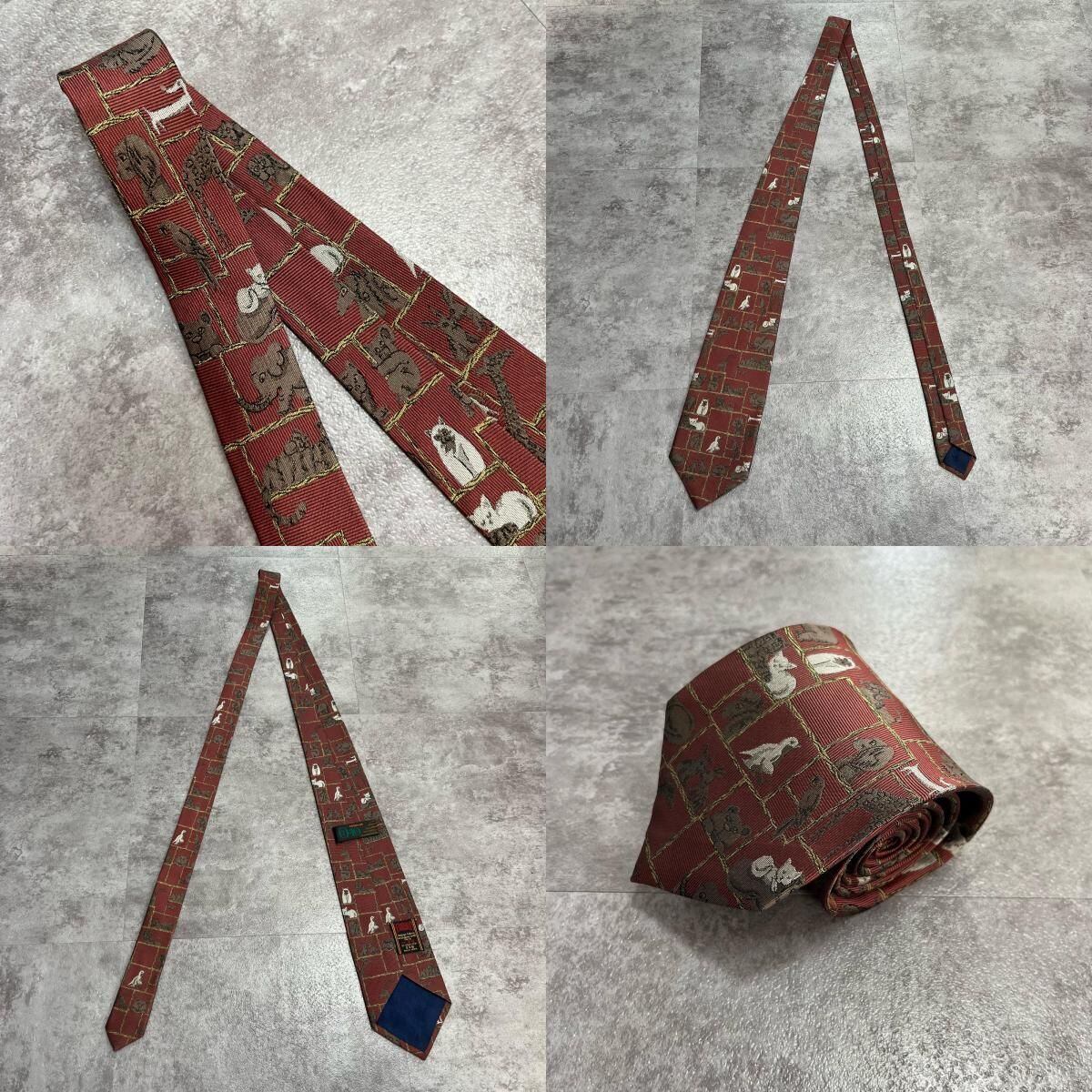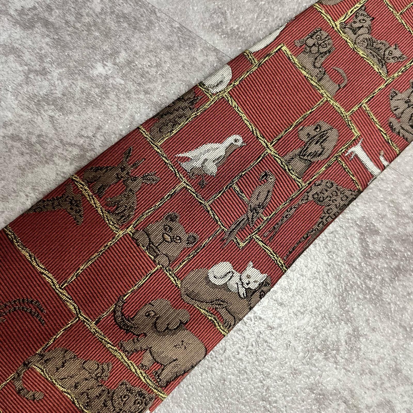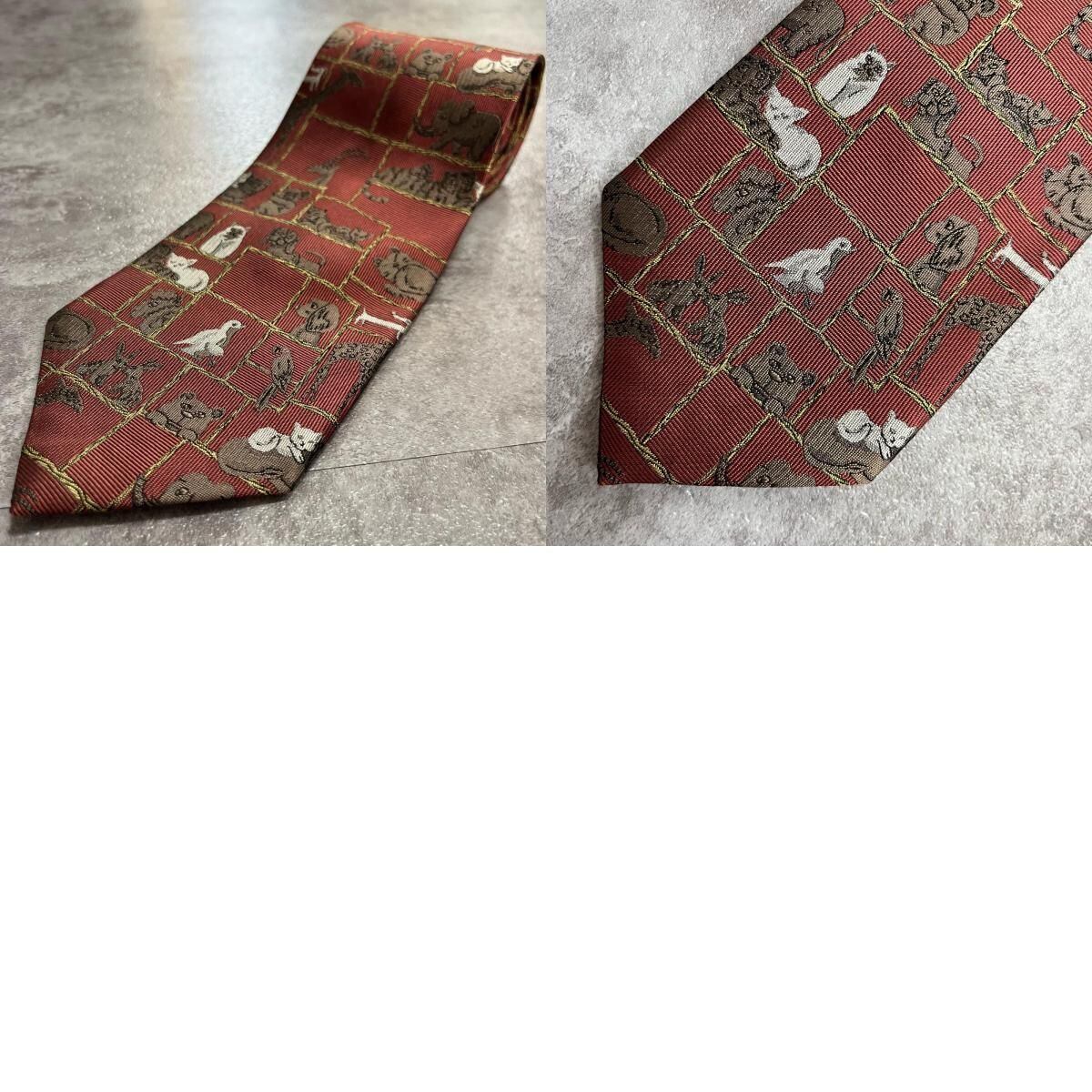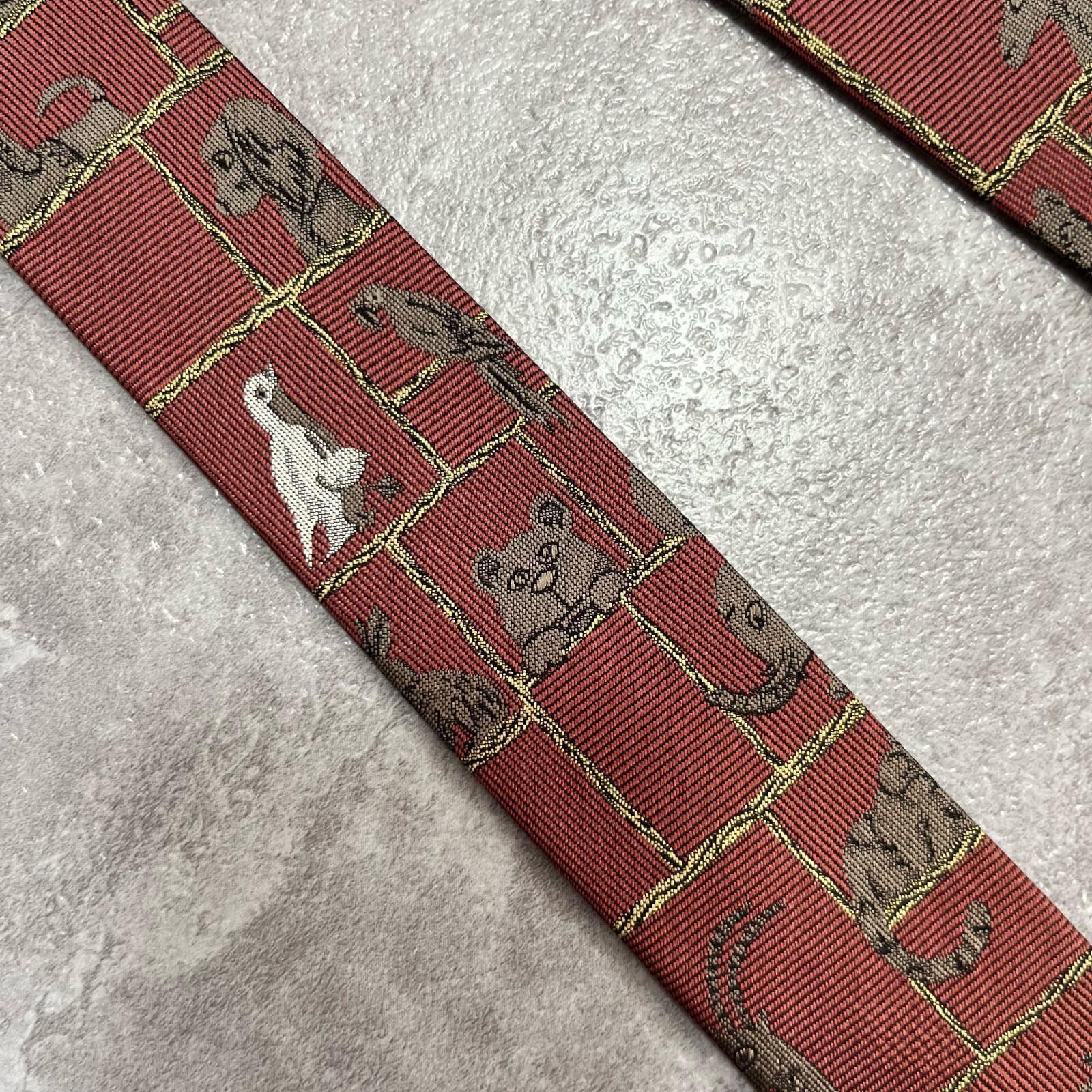 【銀座田屋】アニマル柄ネクタイ 動物モチーフ シルク100% メンズ 日本製 レッド 赤色 総柄 ビジネスネクタイ ブランドネクタイ フォーマルネクタイ 動物デザイン