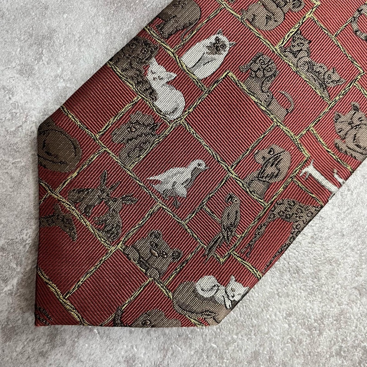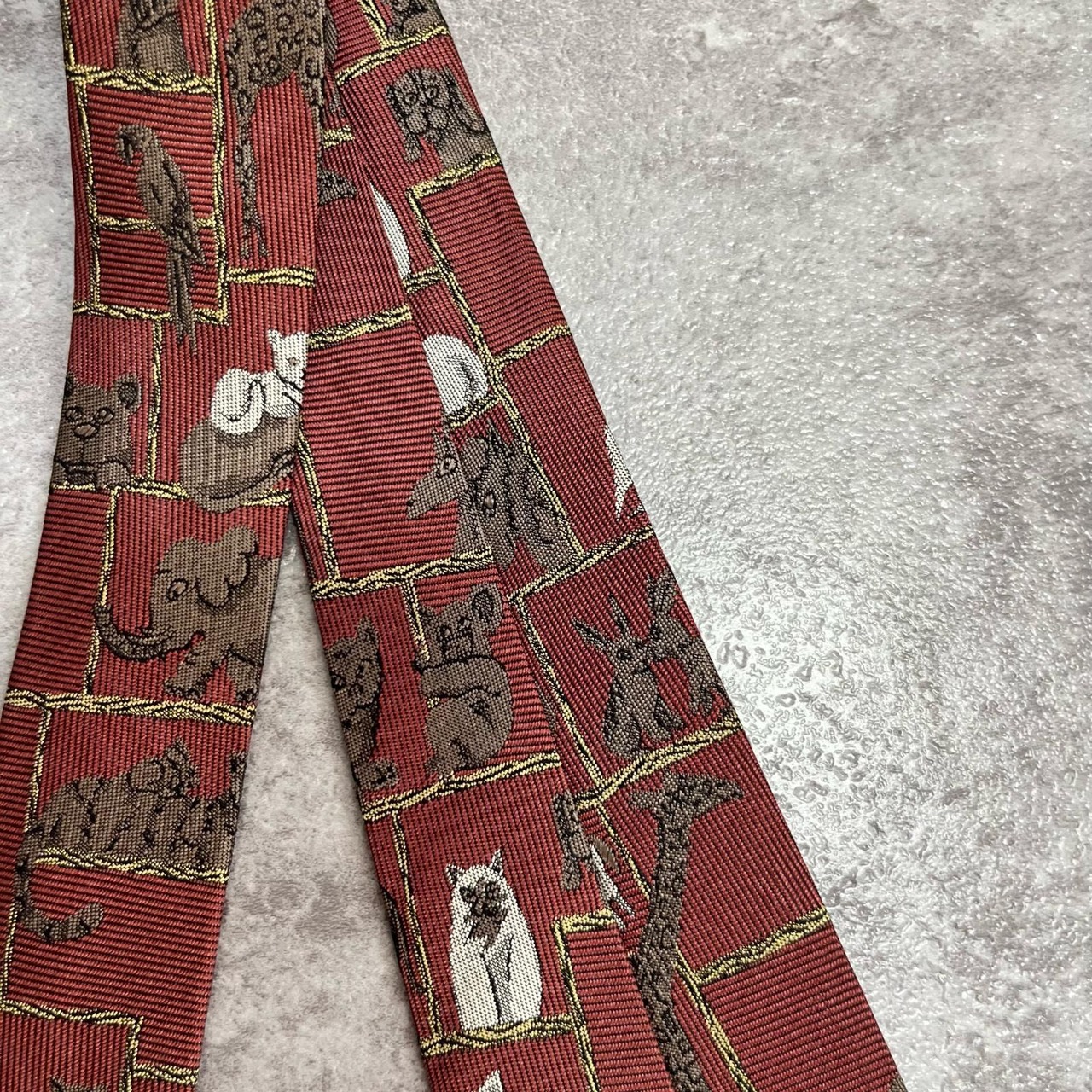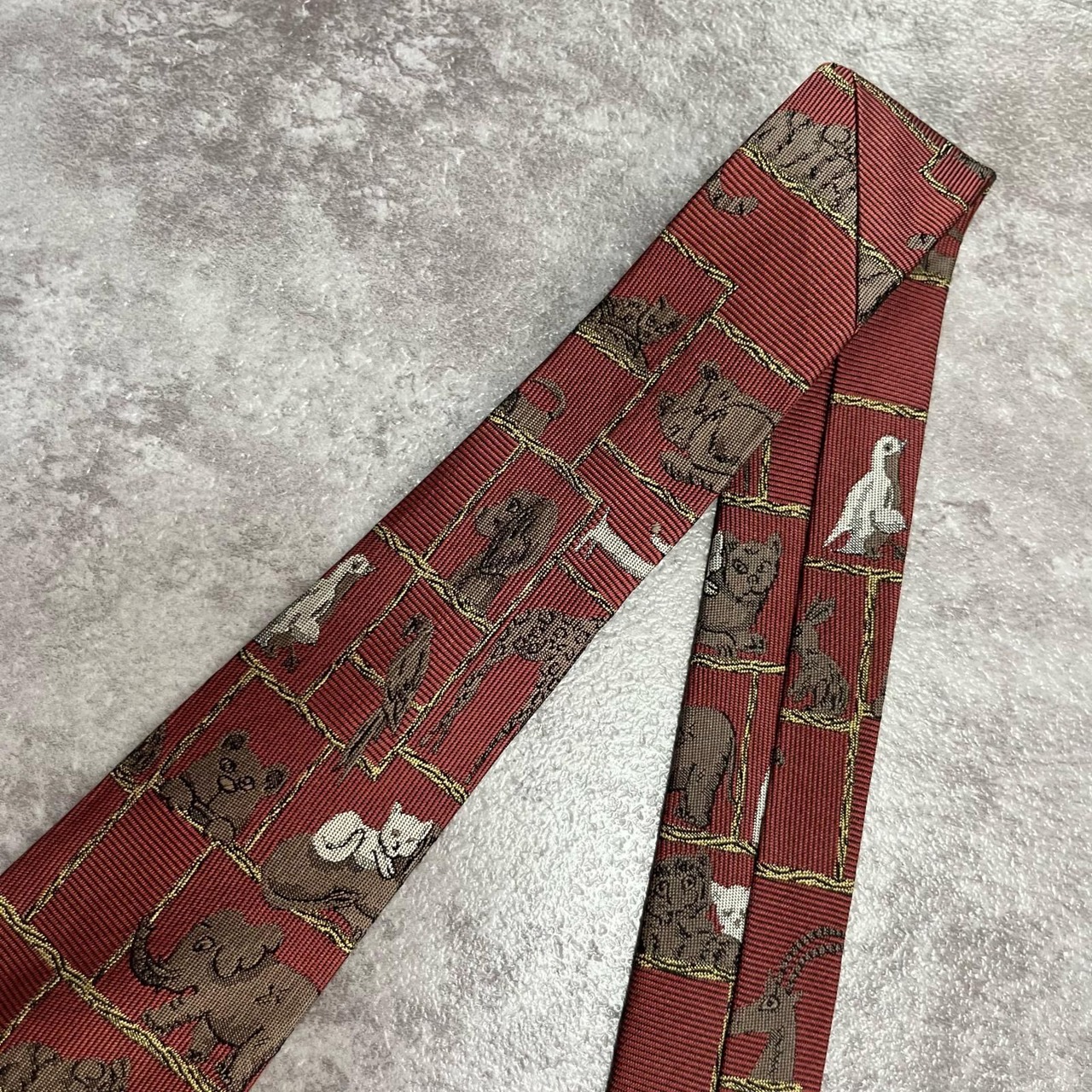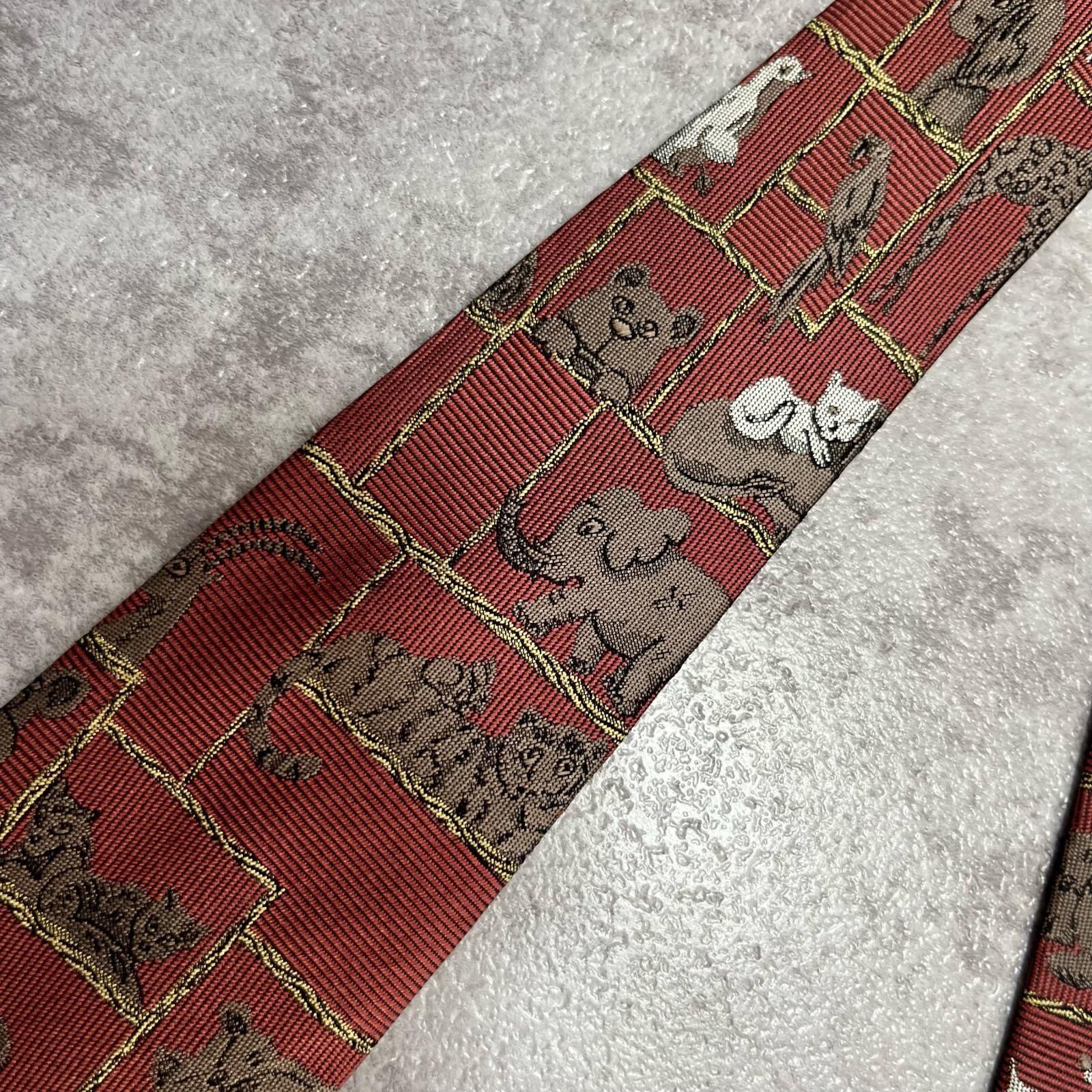 【銀座田屋】アニマル柄ネクタイ 動物モチーフ シルク100% メンズ 日本製 レッド 赤色 総柄 ビジネスネクタイ ブランドネクタイ フォーマルネクタイ 動物デザイン