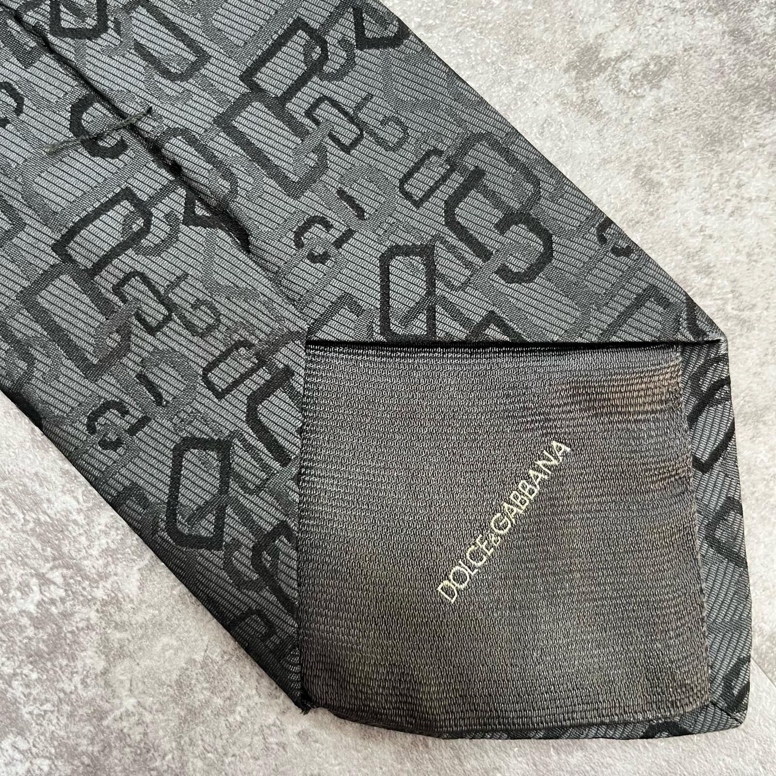 【DOLCE&GABBANA】ドルチェ&ガッバーナ ロゴ柄ネクタイ DGロゴモチーフ シルク100% メンズ イタリア製 グレー 灰色 ブラック 黒色 小紋柄 ビジネスネクタイ ブランドネクタイ フォーマルネクタイ DGロゴデザイン