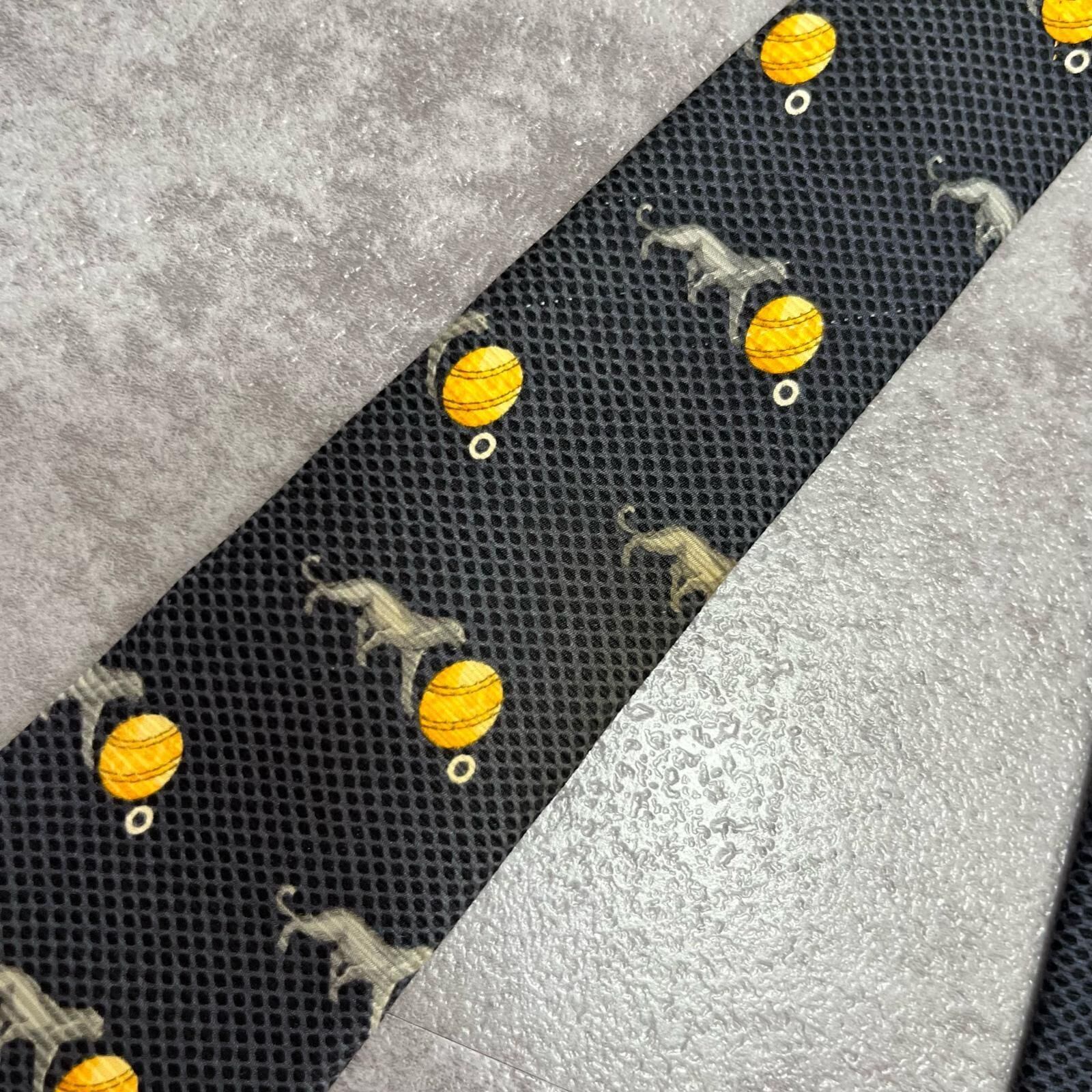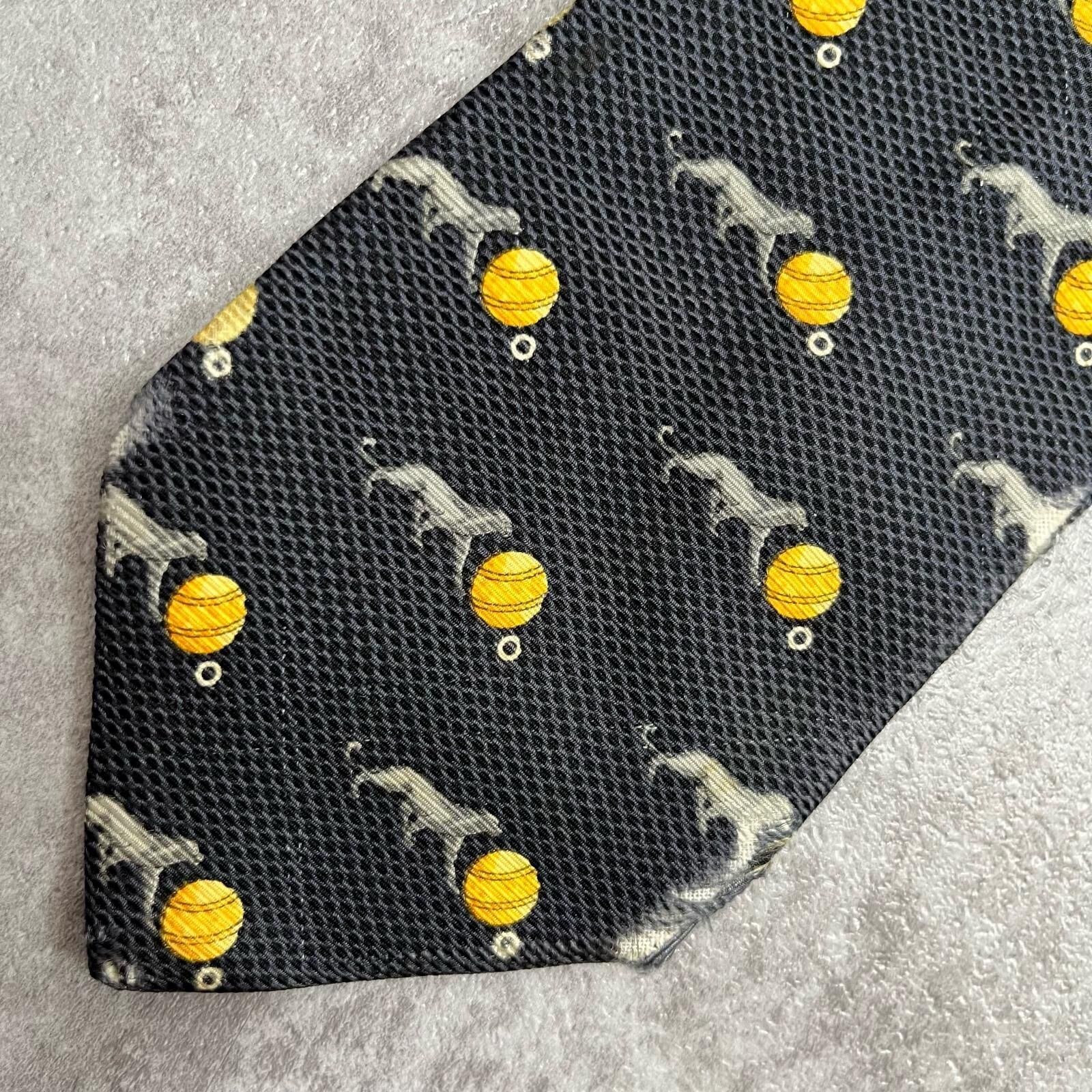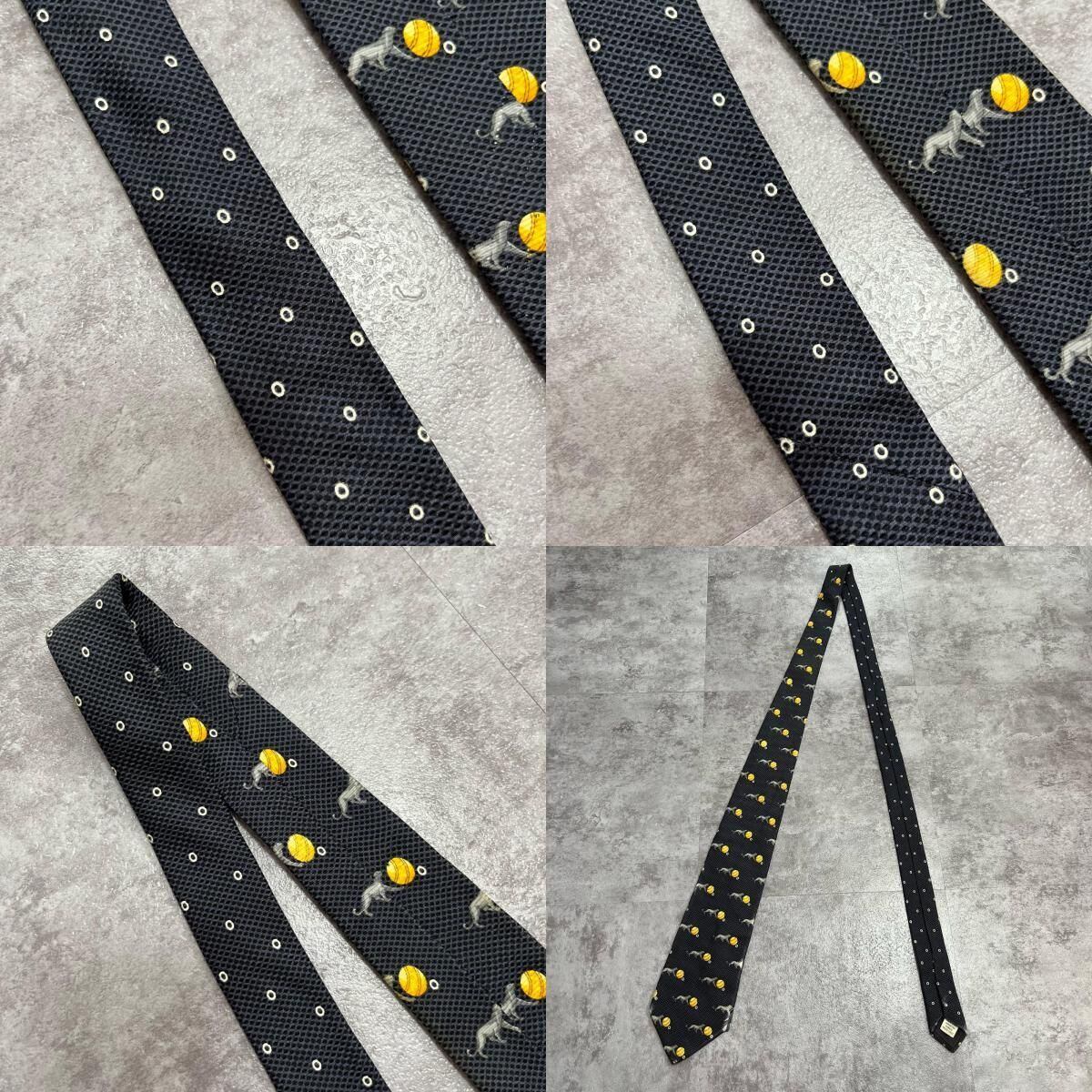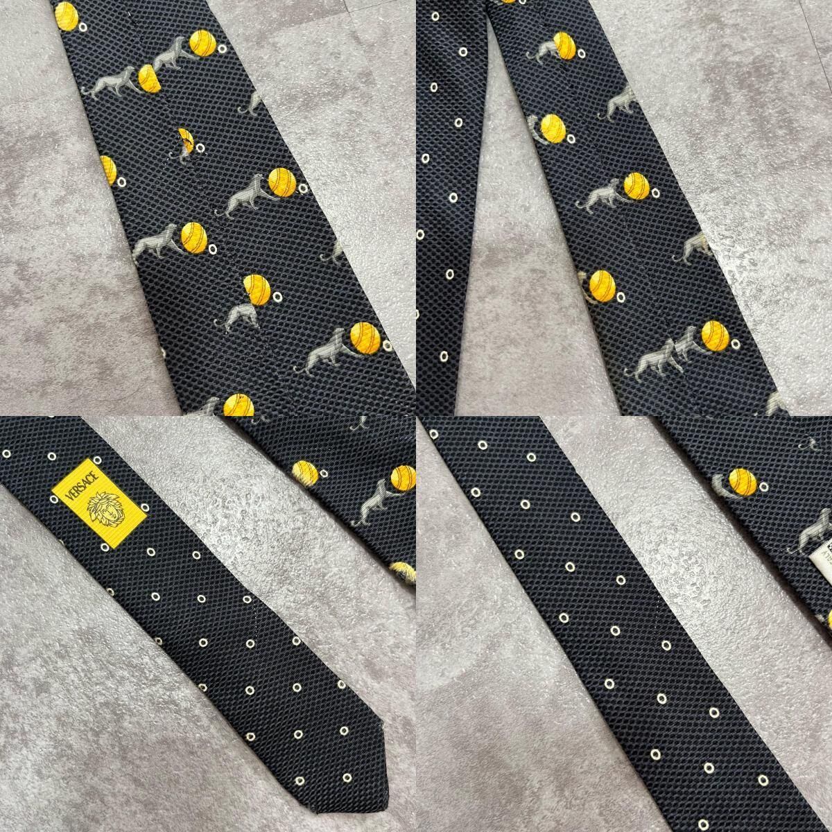 【VERSACE】ヴェルサーチ 犬柄ネクタイ 犬モチーフ シルク100% メンズ 日本製 ブラック 黒色 アニマル柄 ビジネスネクタイ ブランドネクタイ フォーマルネクタイ ドッグデザイン