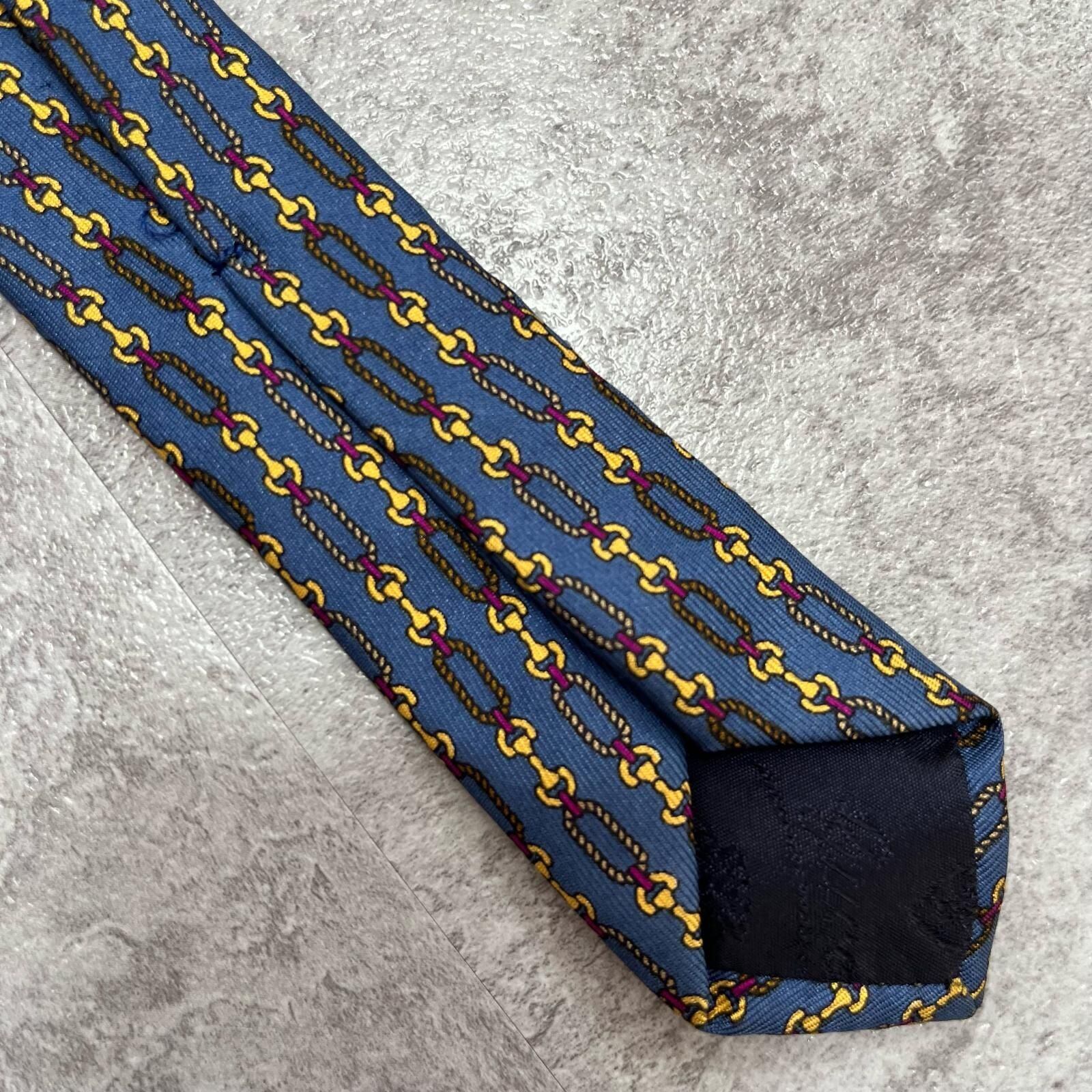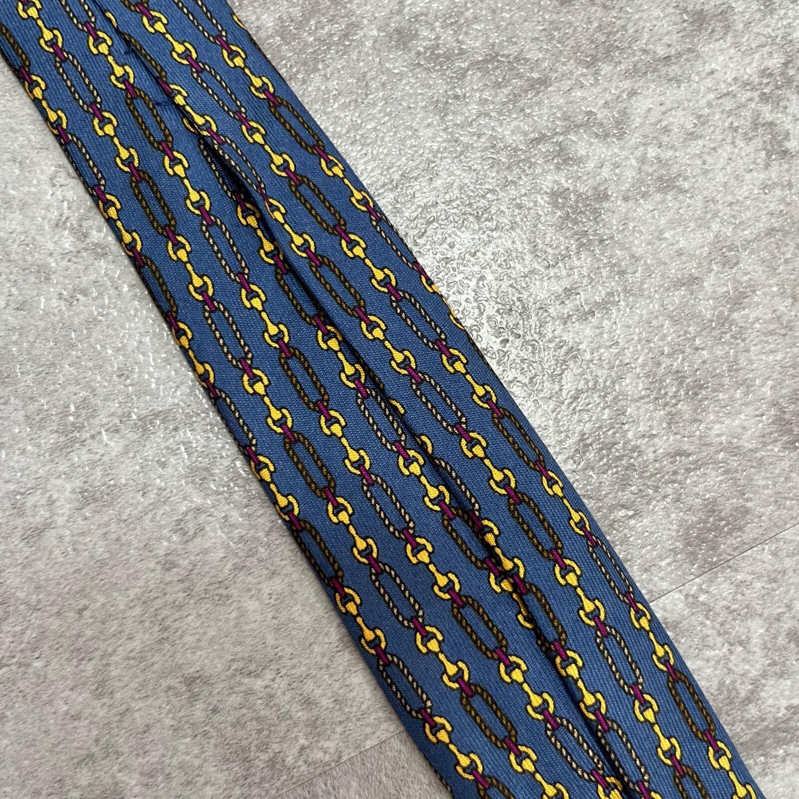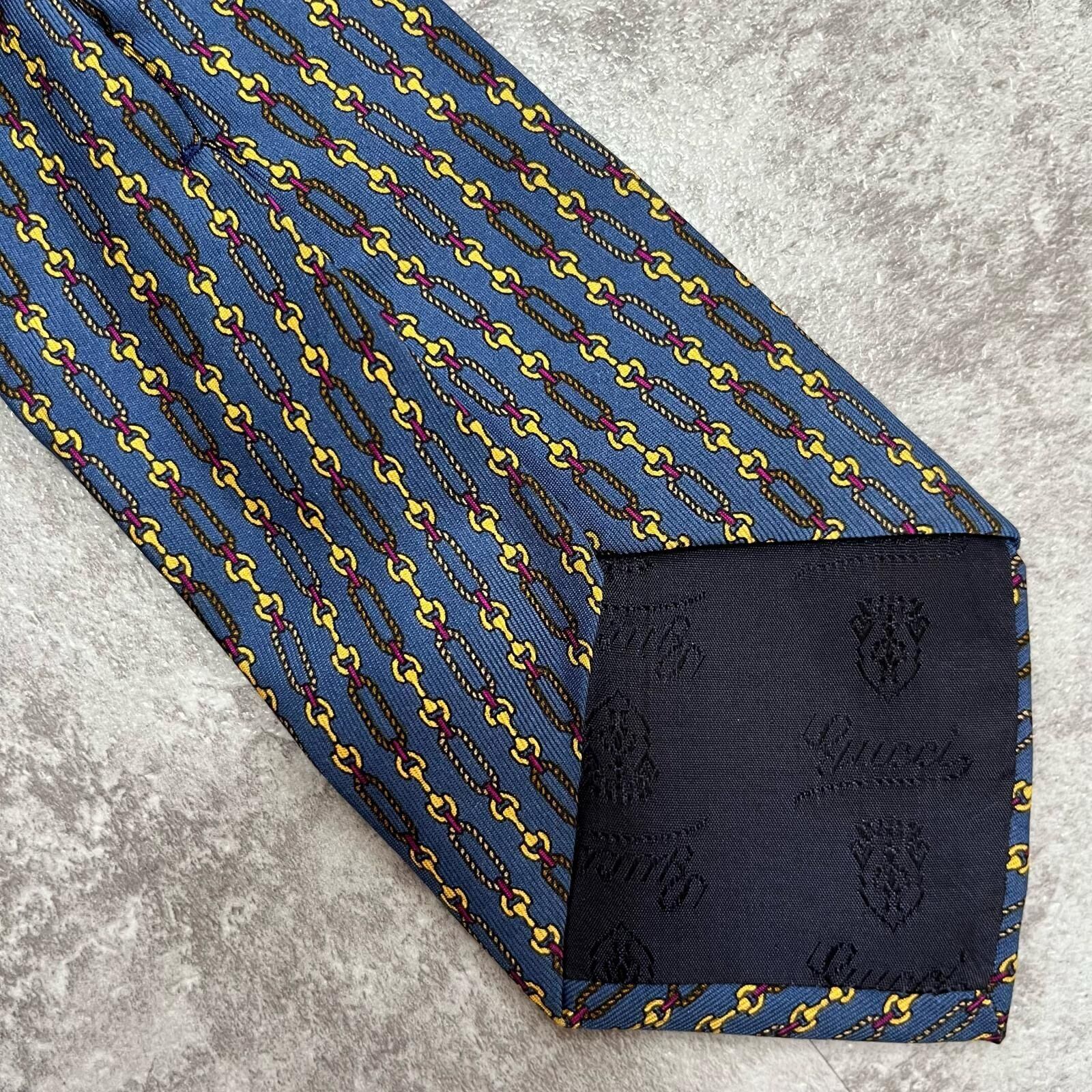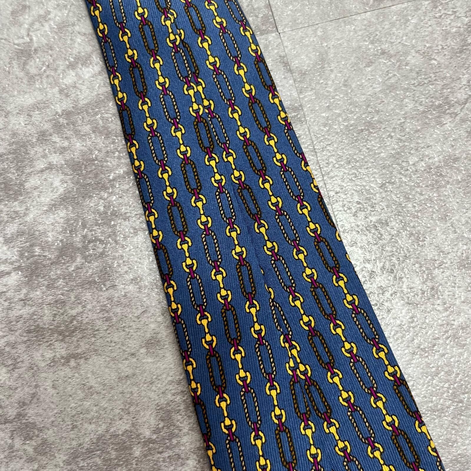 【GUCCI】グッチ チェーン柄ネクタイ GGロゴモチーフ シルク100% メンズ イタリア製 ブルー 青色 小紋柄 ビジネスネクタイ ブランドネクタイ フォーマルネクタイ チェーンデザイン