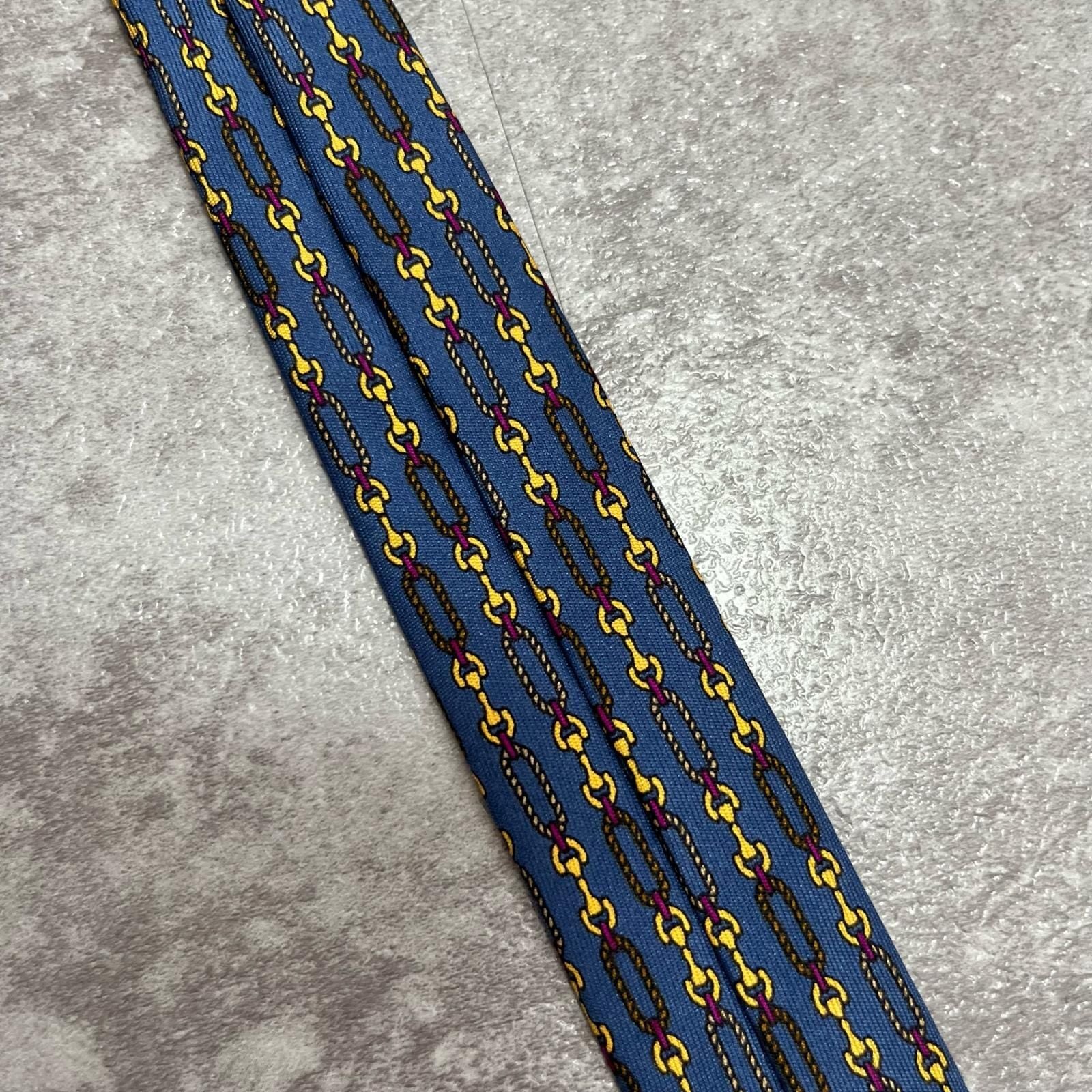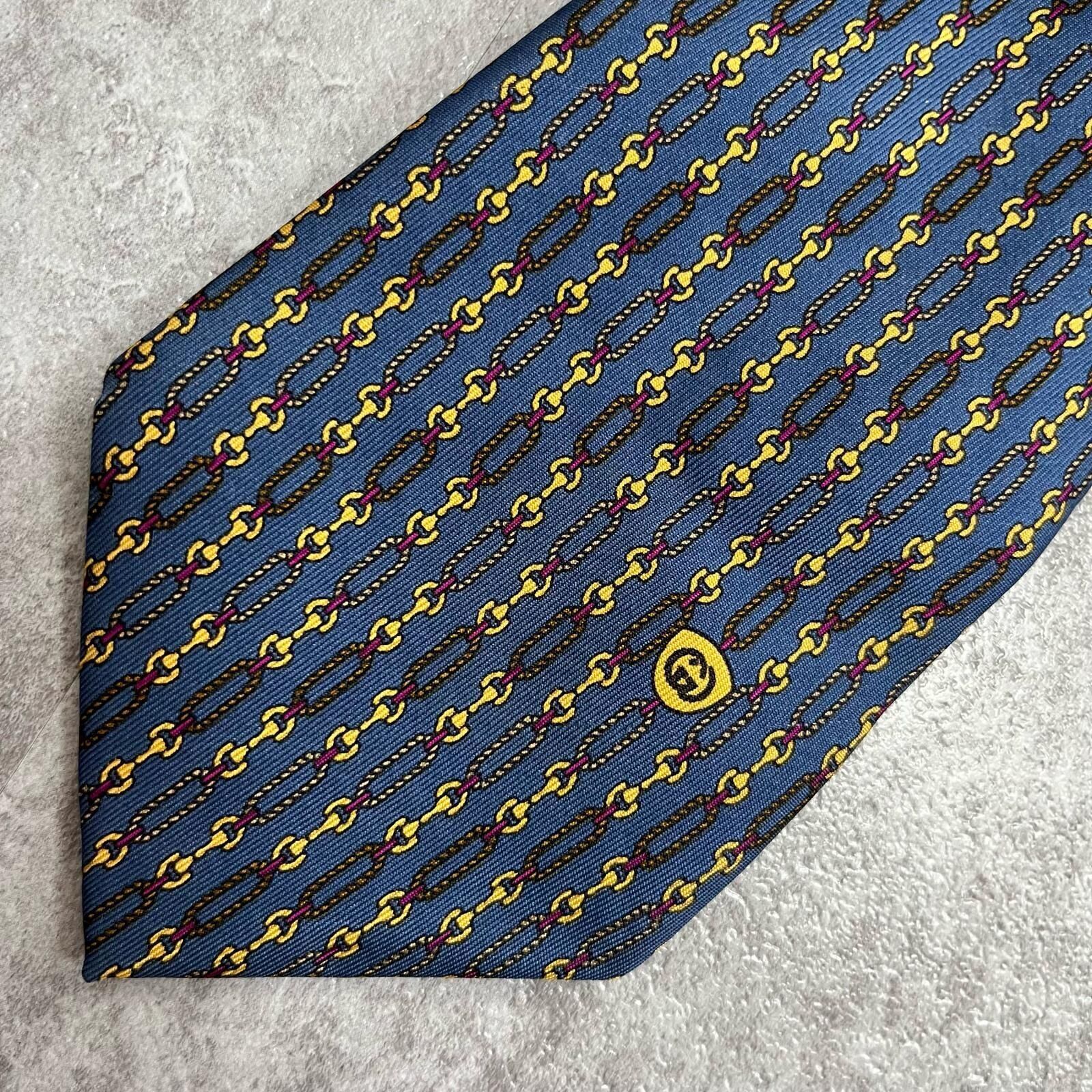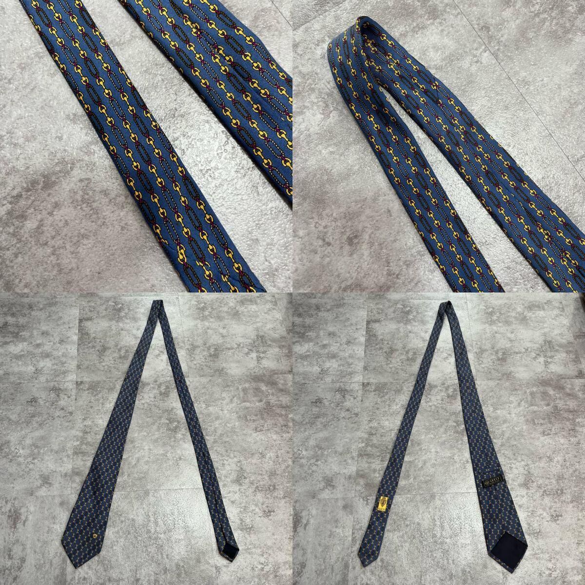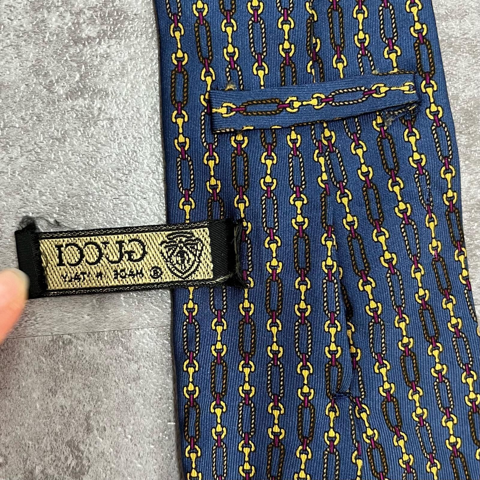 【GUCCI】グッチ チェーン柄ネクタイ GGロゴモチーフ シルク100% メンズ イタリア製 ブルー 青色 小紋柄 ビジネスネクタイ ブランドネクタイ フォーマルネクタイ チェーンデザイン