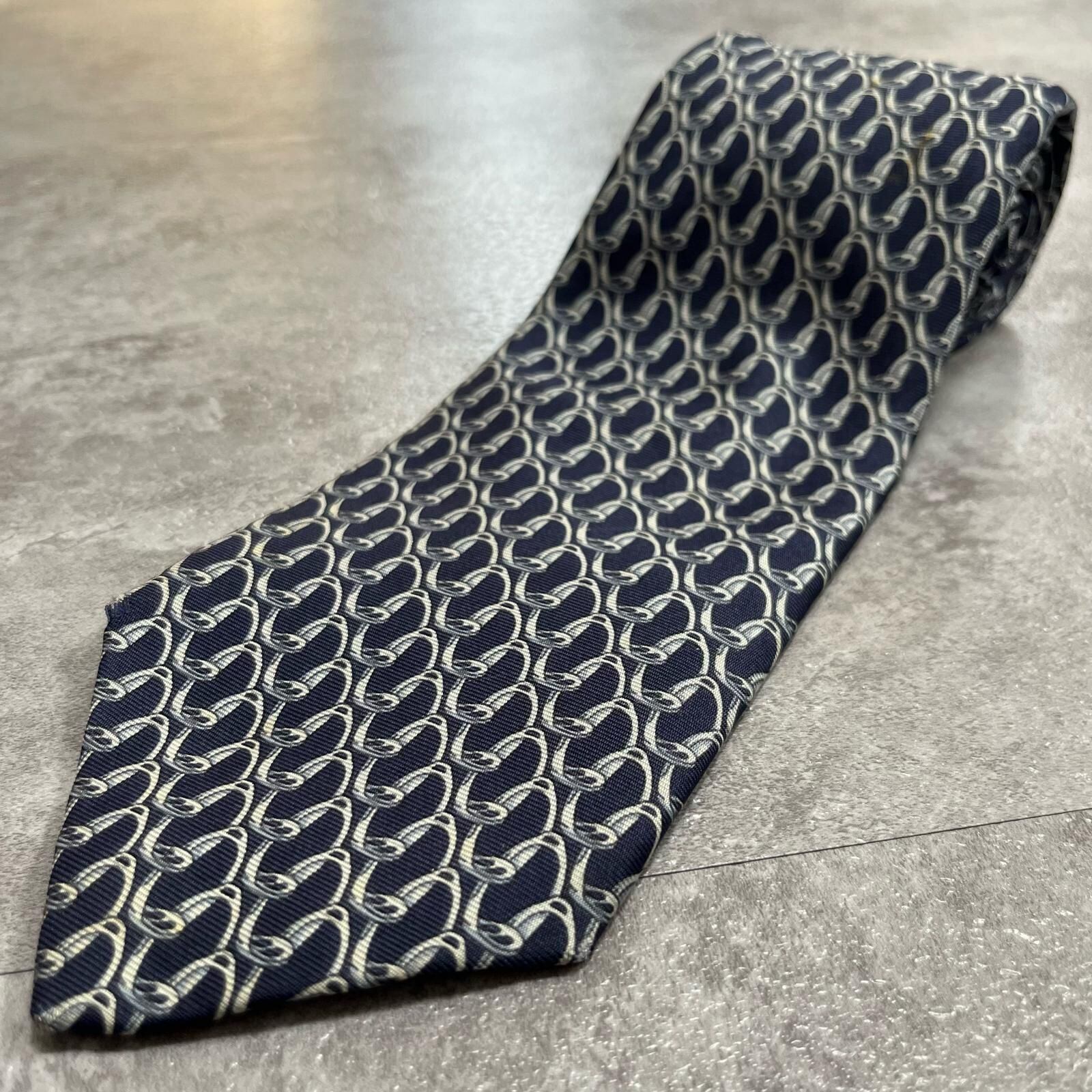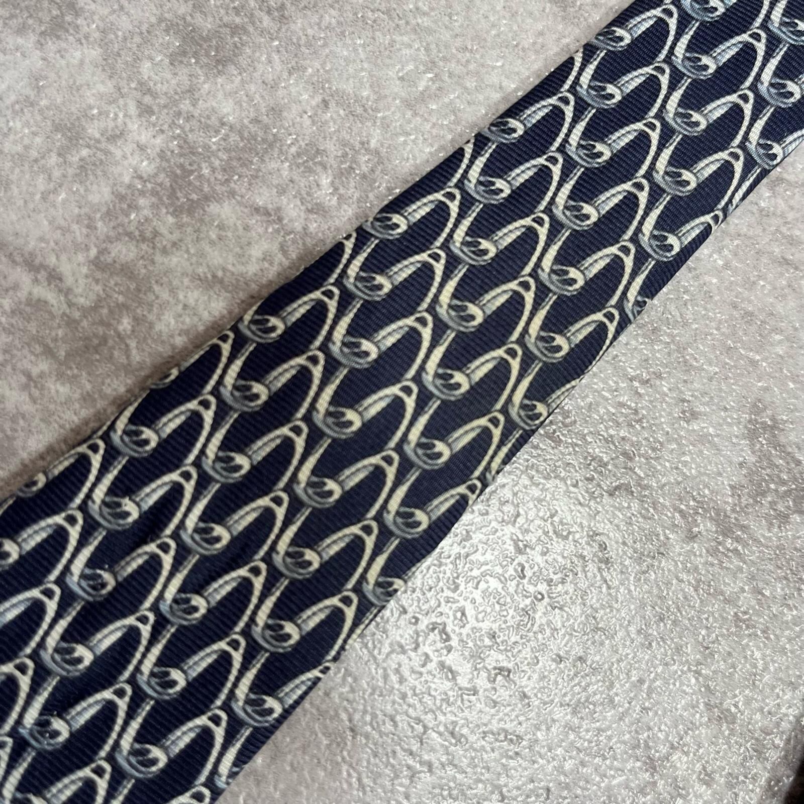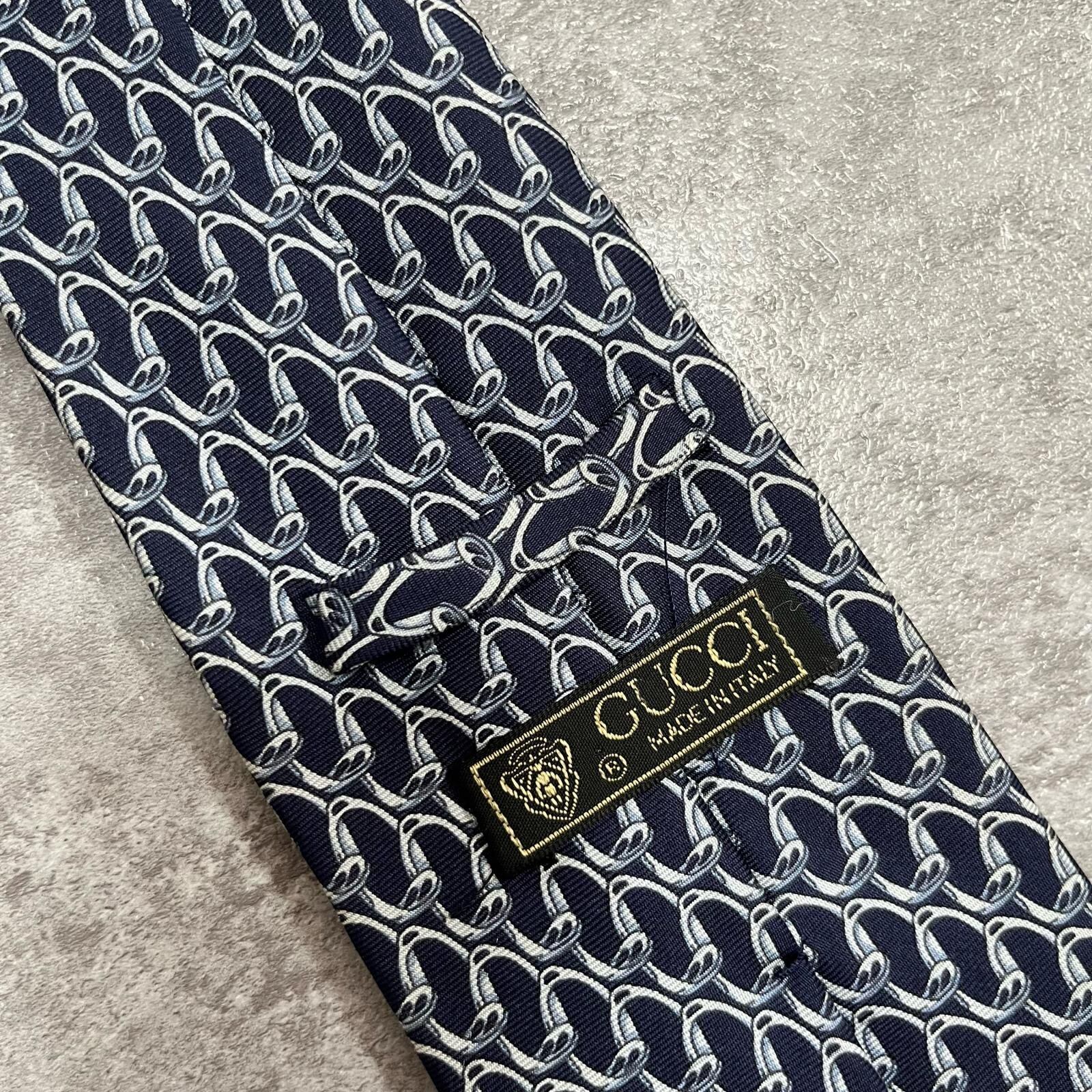 【GUCCI】グッチ シルクネクタイ シルク100% メンズ イタリア製 ネイビー 紺 総柄 GGモチーフ風 小紋柄 クラシック ドレス ビジネス 高級ブランド ヴィンテージ