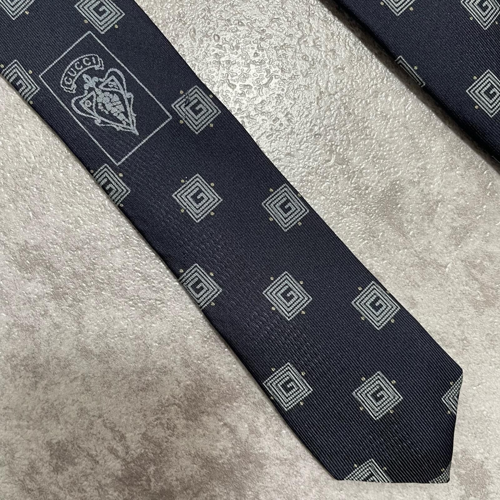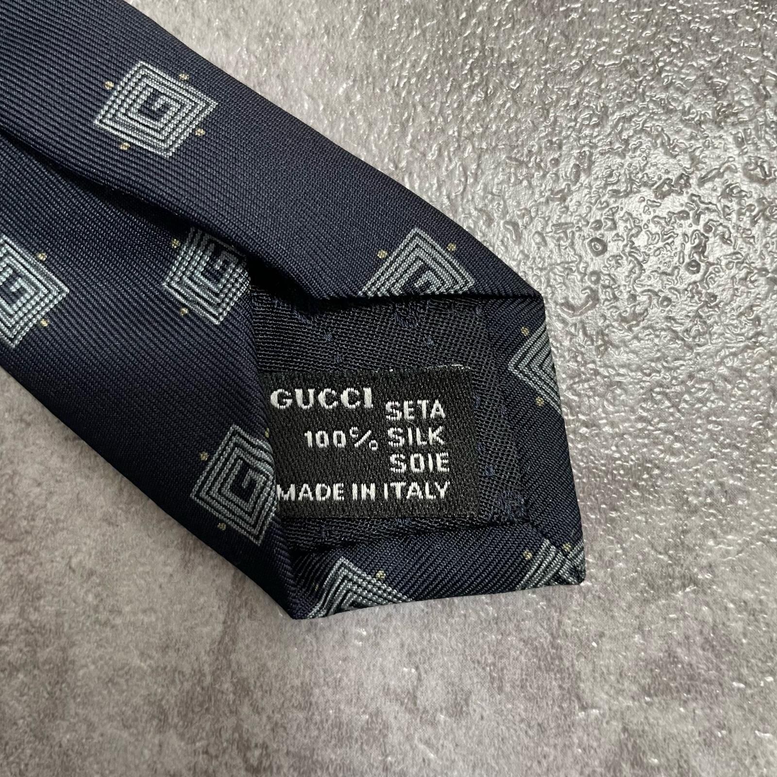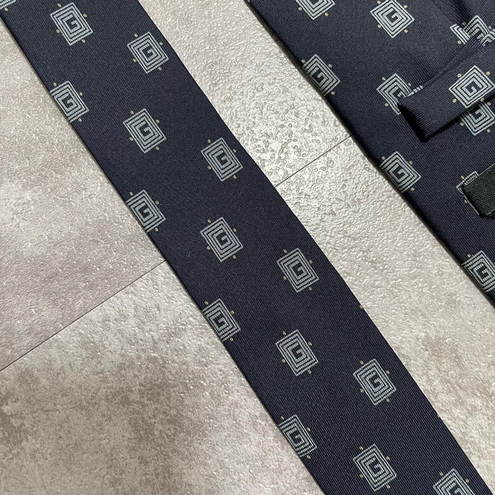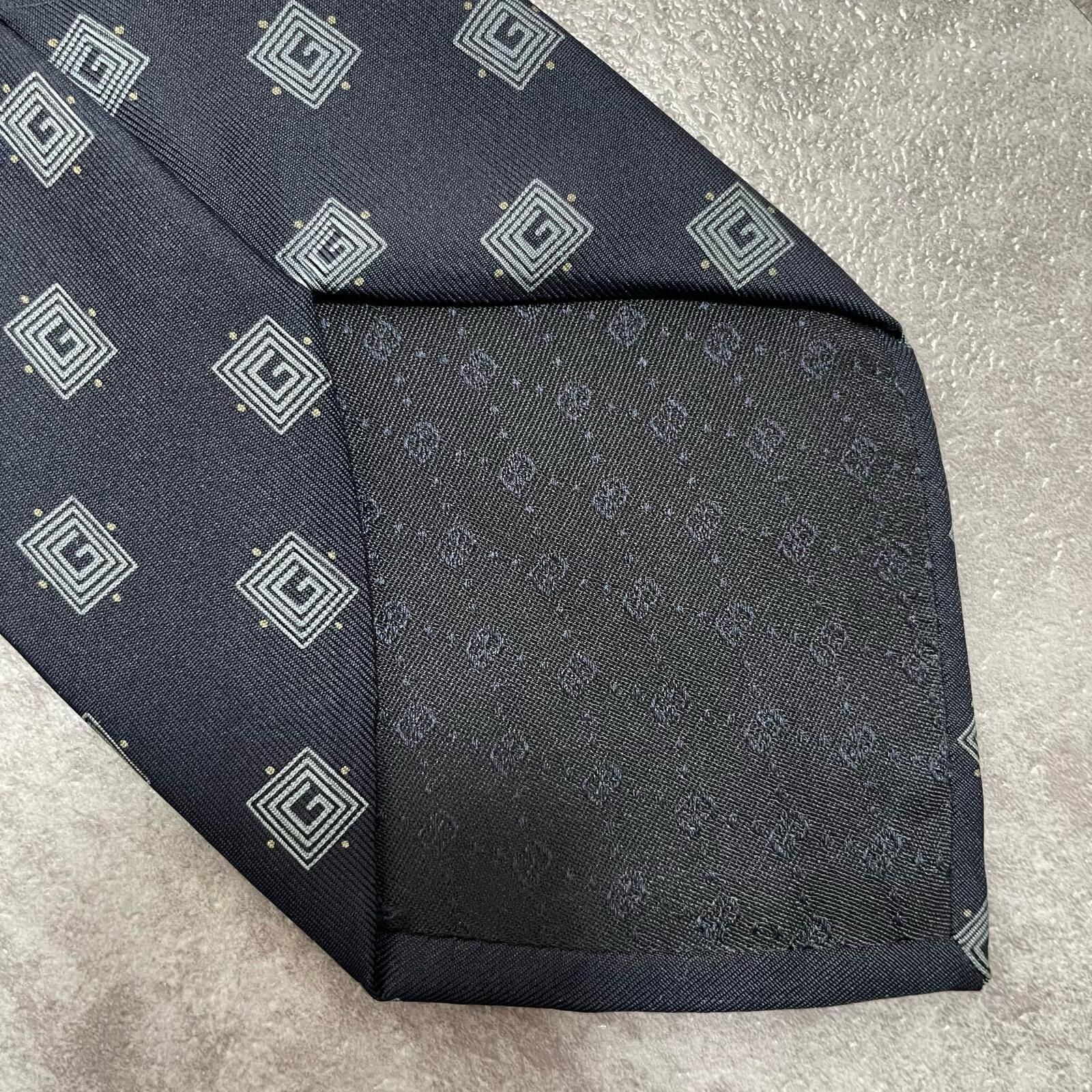 【GUCCI】グッチ 総G柄ネクタイ シルク100% メンズ ネイビー 紺色 小紋柄 スクエアドット 総ロゴ イタリア製 ビジネス向け GG