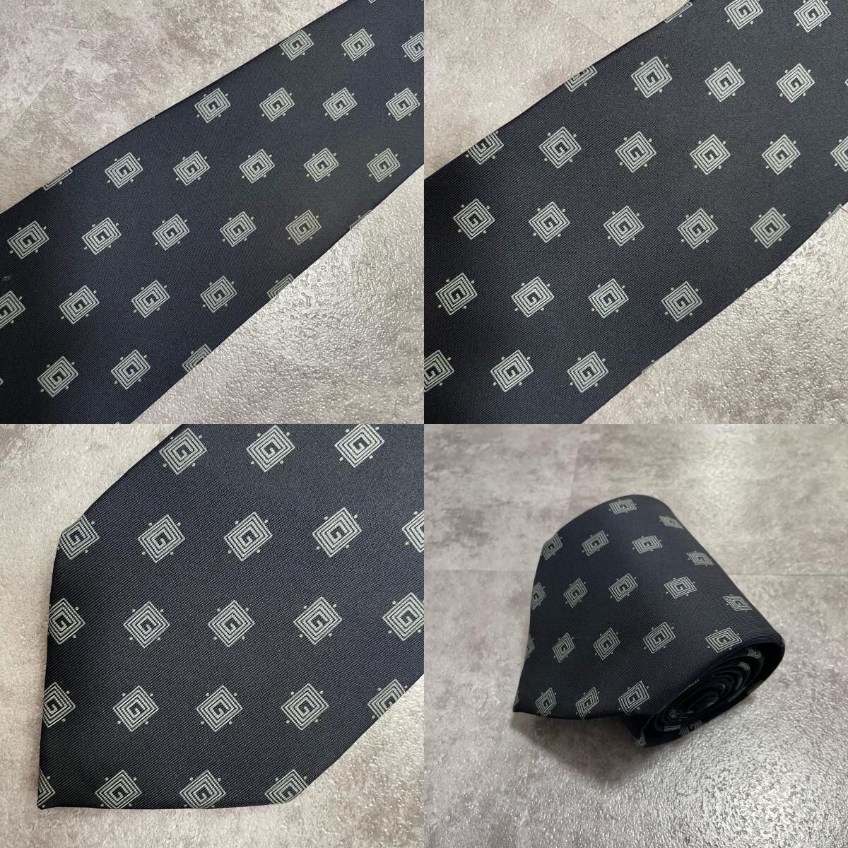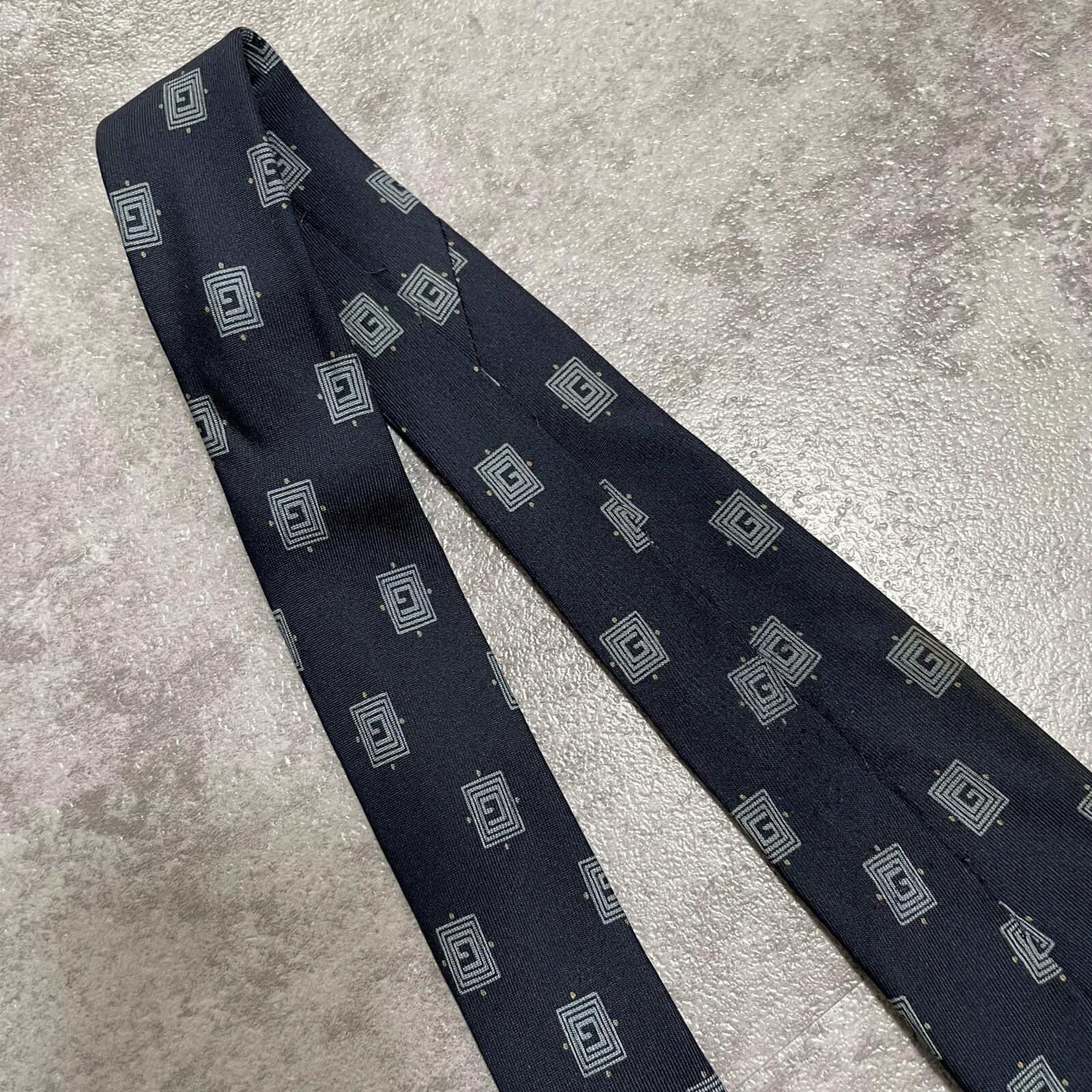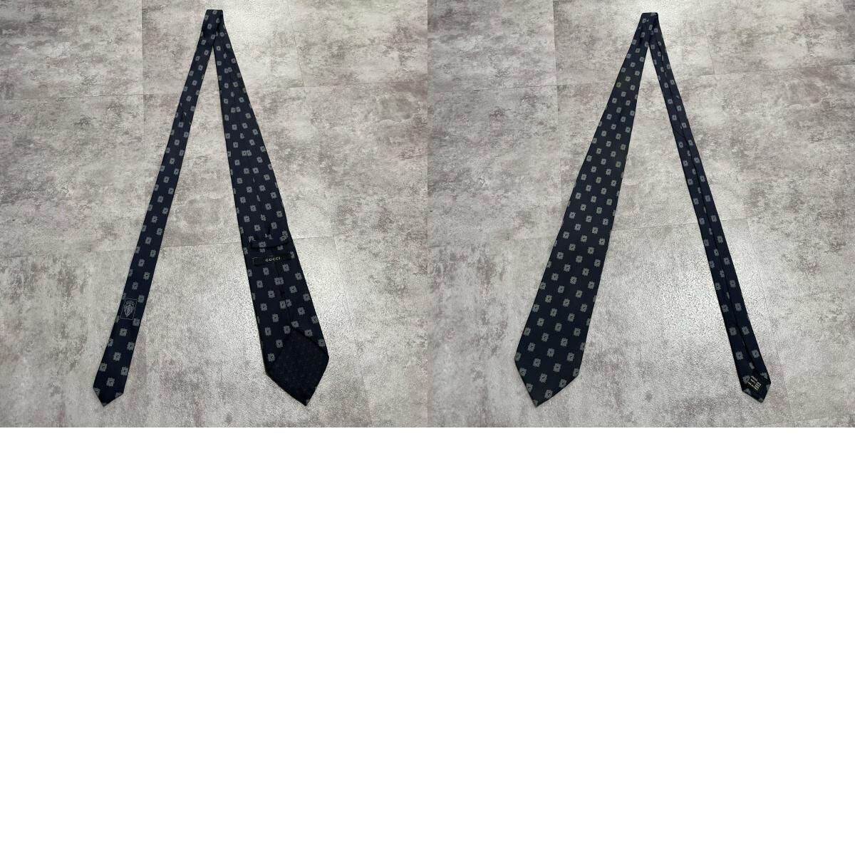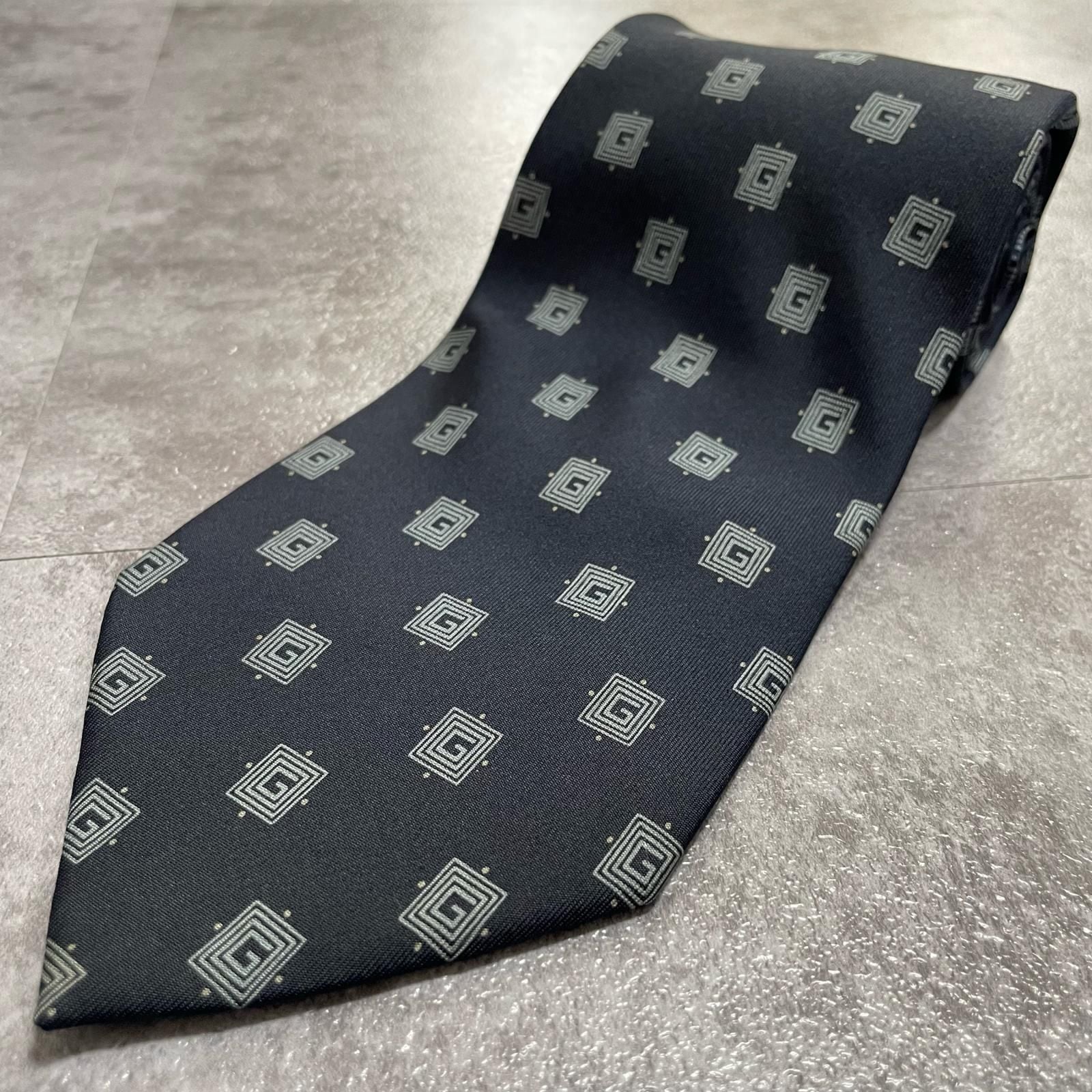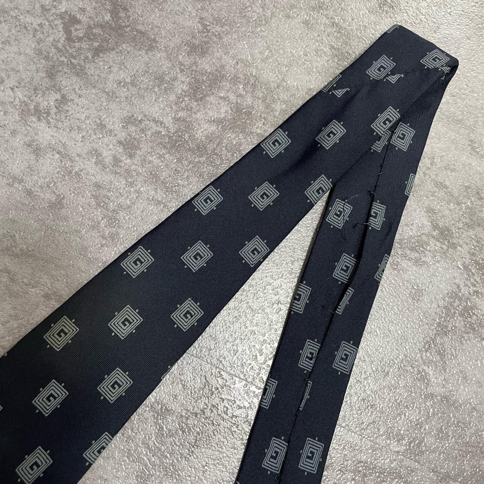 【GUCCI】グッチ 総G柄ネクタイ シルク100% メンズ ネイビー 紺色 小紋柄 スクエアドット 総ロゴ イタリア製 ビジネス向け GG