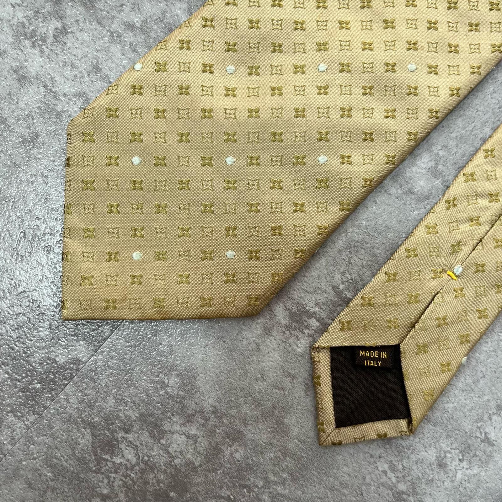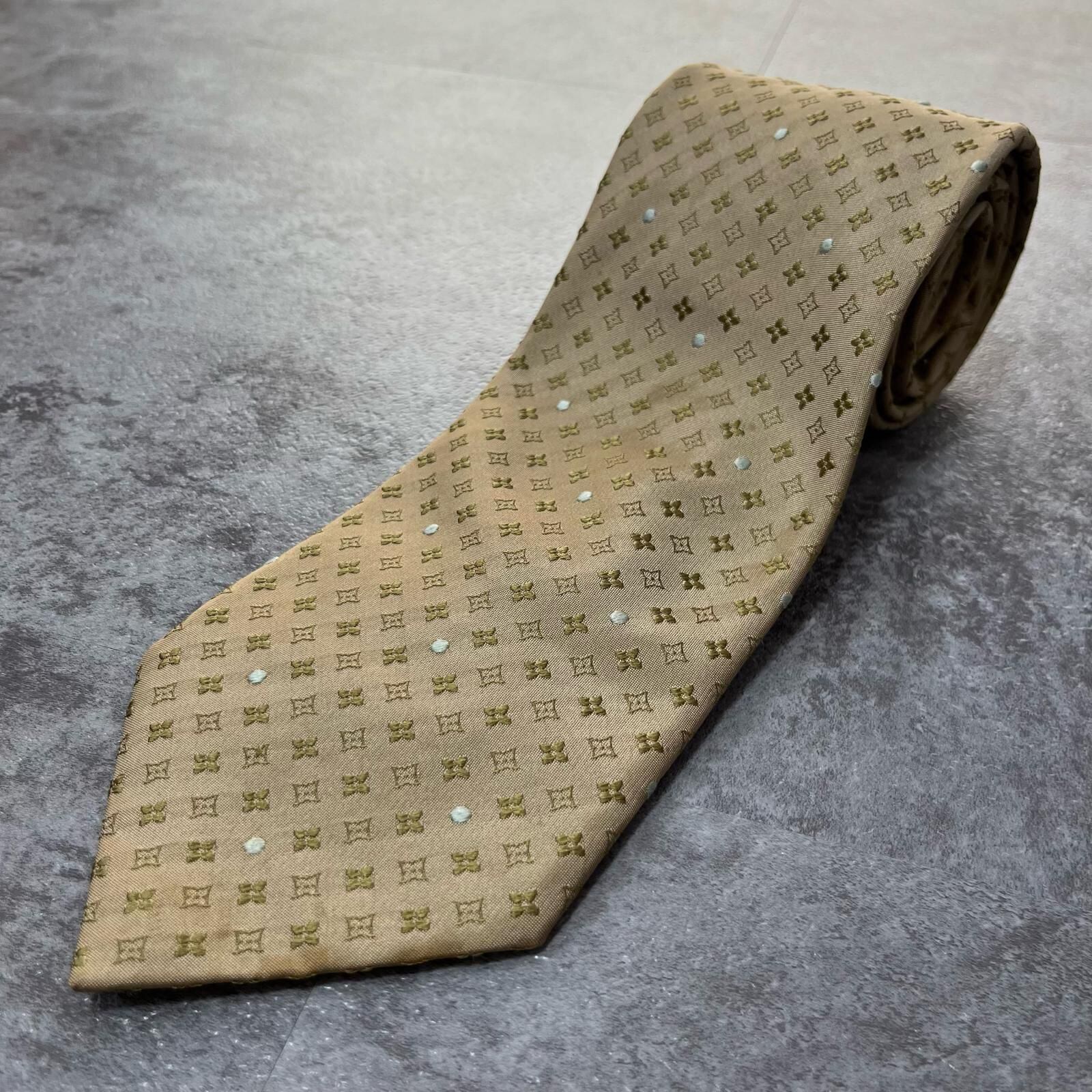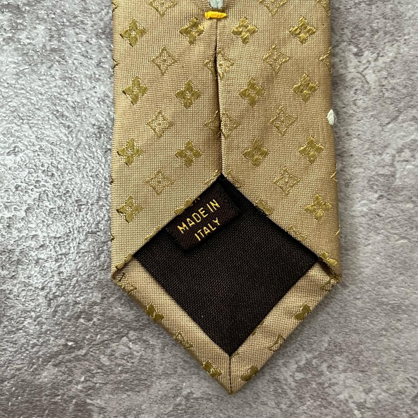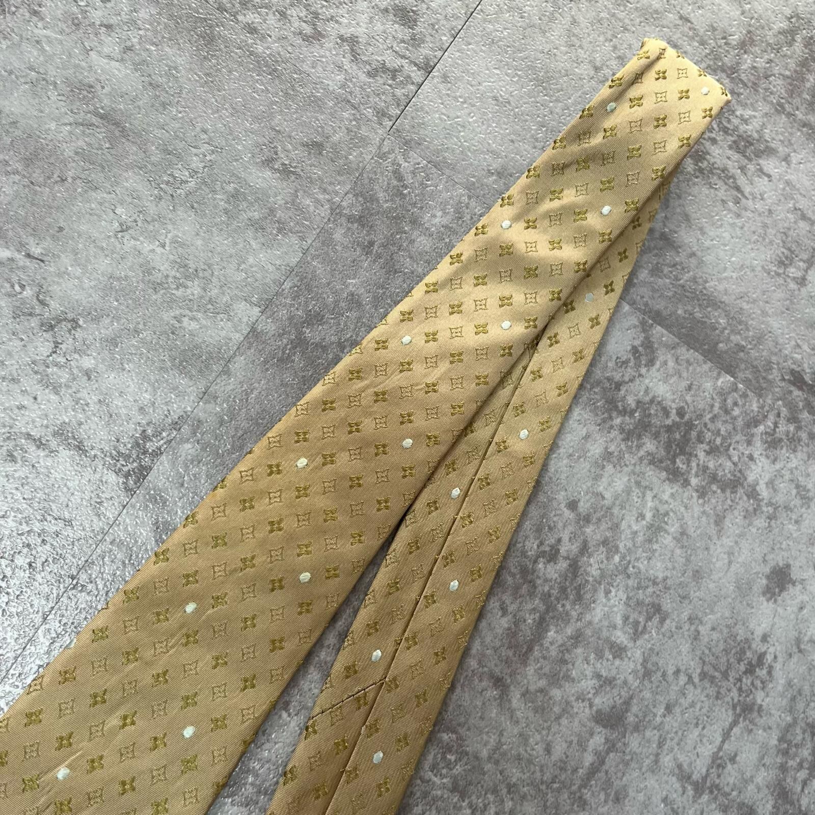 【LOUIS VUITTON】ルイ・ヴィトン モノグラム柄ネクタイ シルク100% メンズ イタリア製 ゴールド 金 ドット柄 光沢肉厚