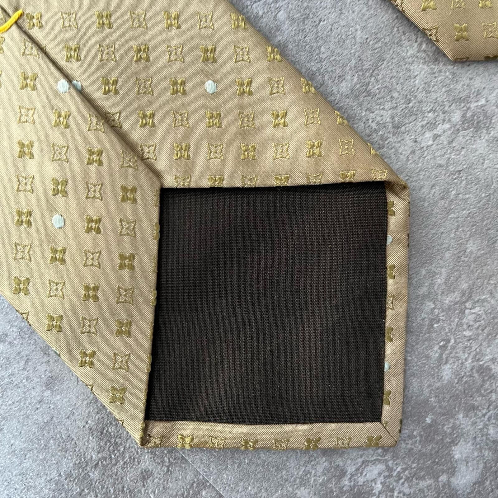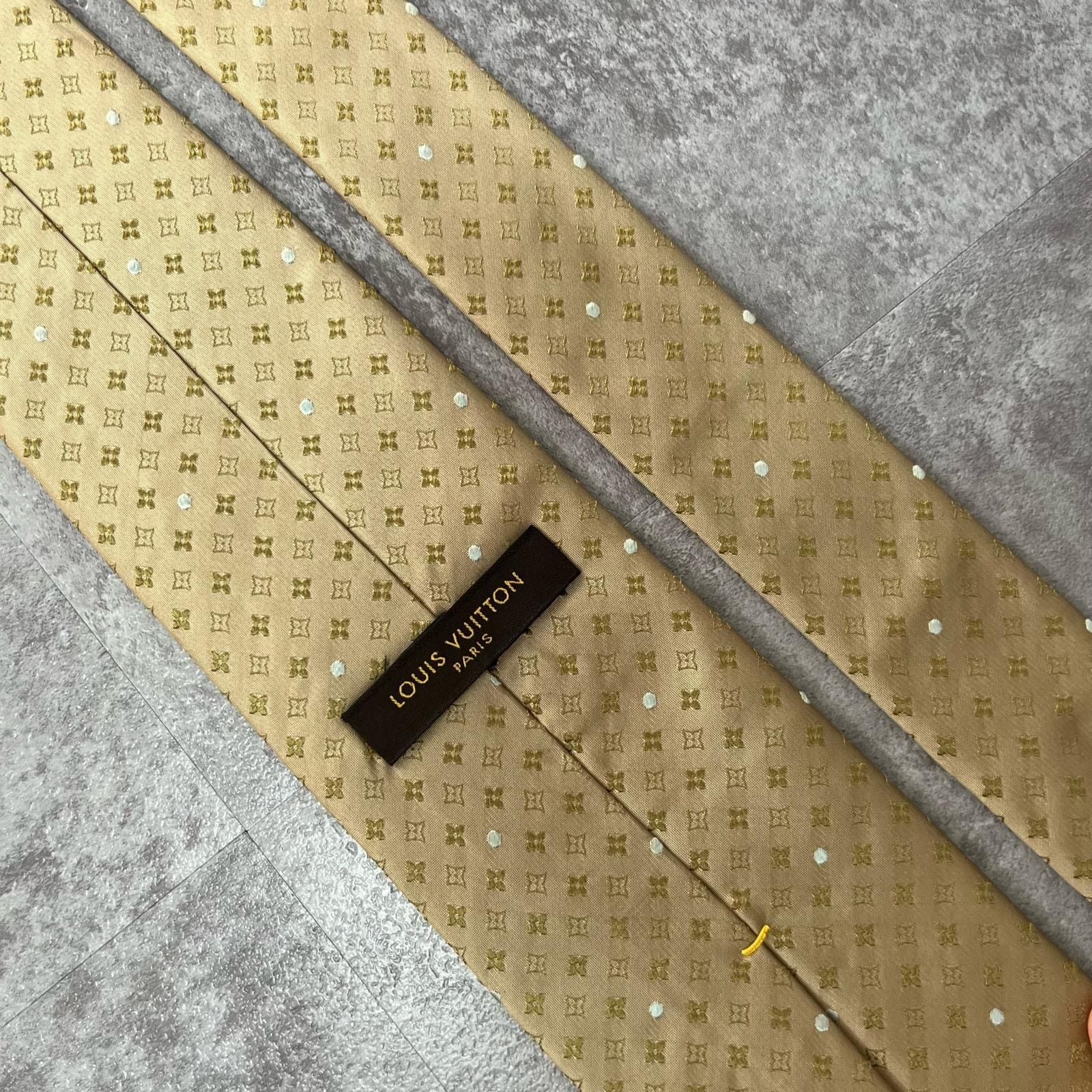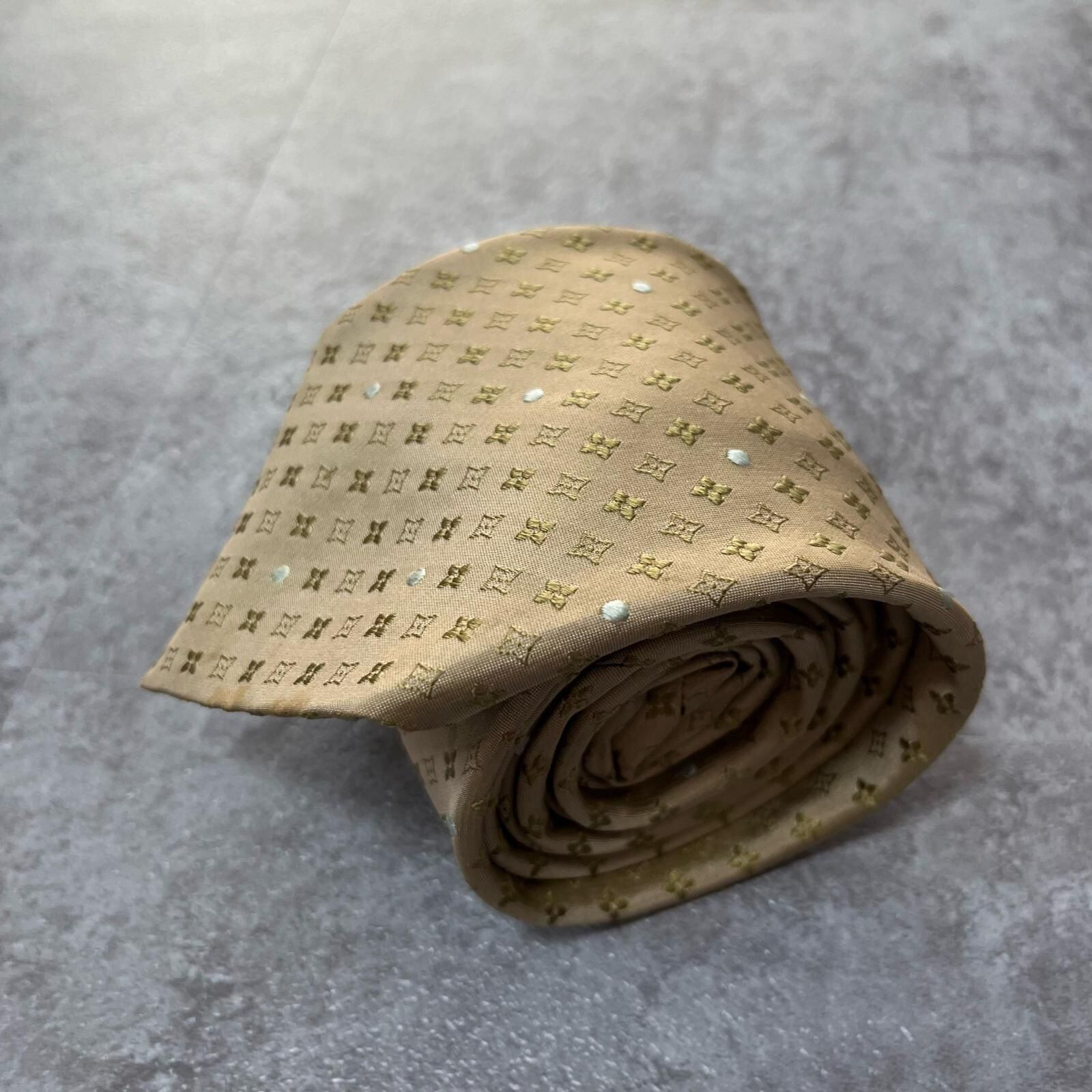 【LOUIS VUITTON】ルイ・ヴィトン モノグラム柄ネクタイ シルク100% メンズ イタリア製 ゴールド 金 ドット柄 光沢肉厚