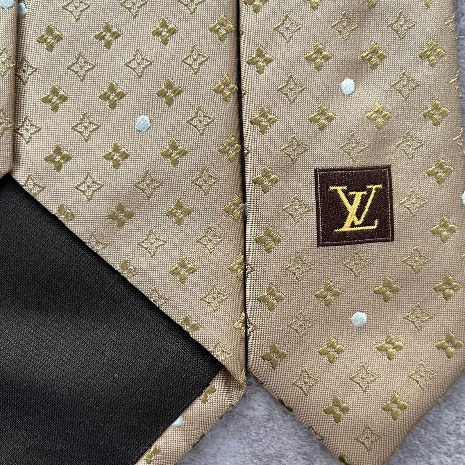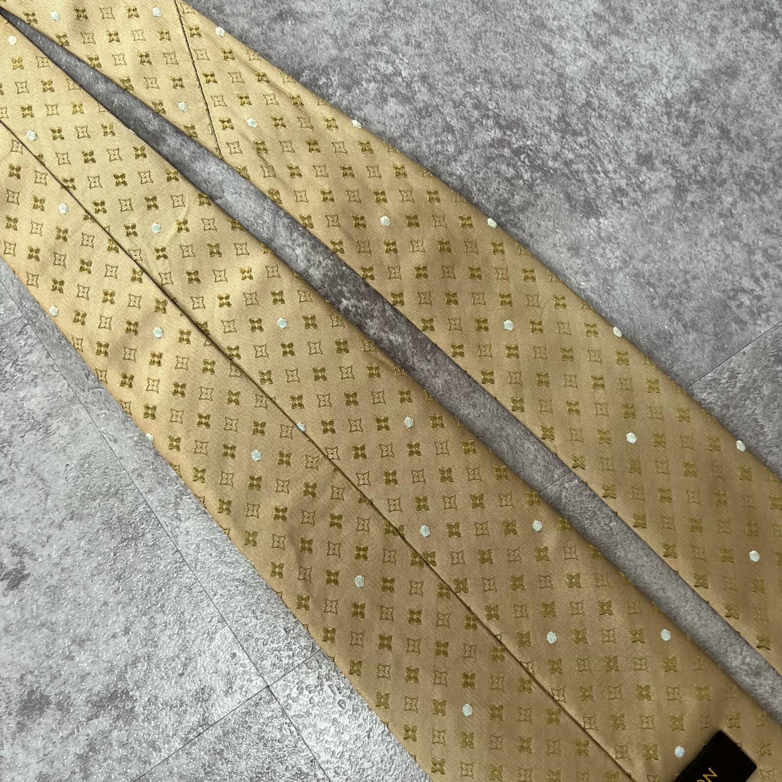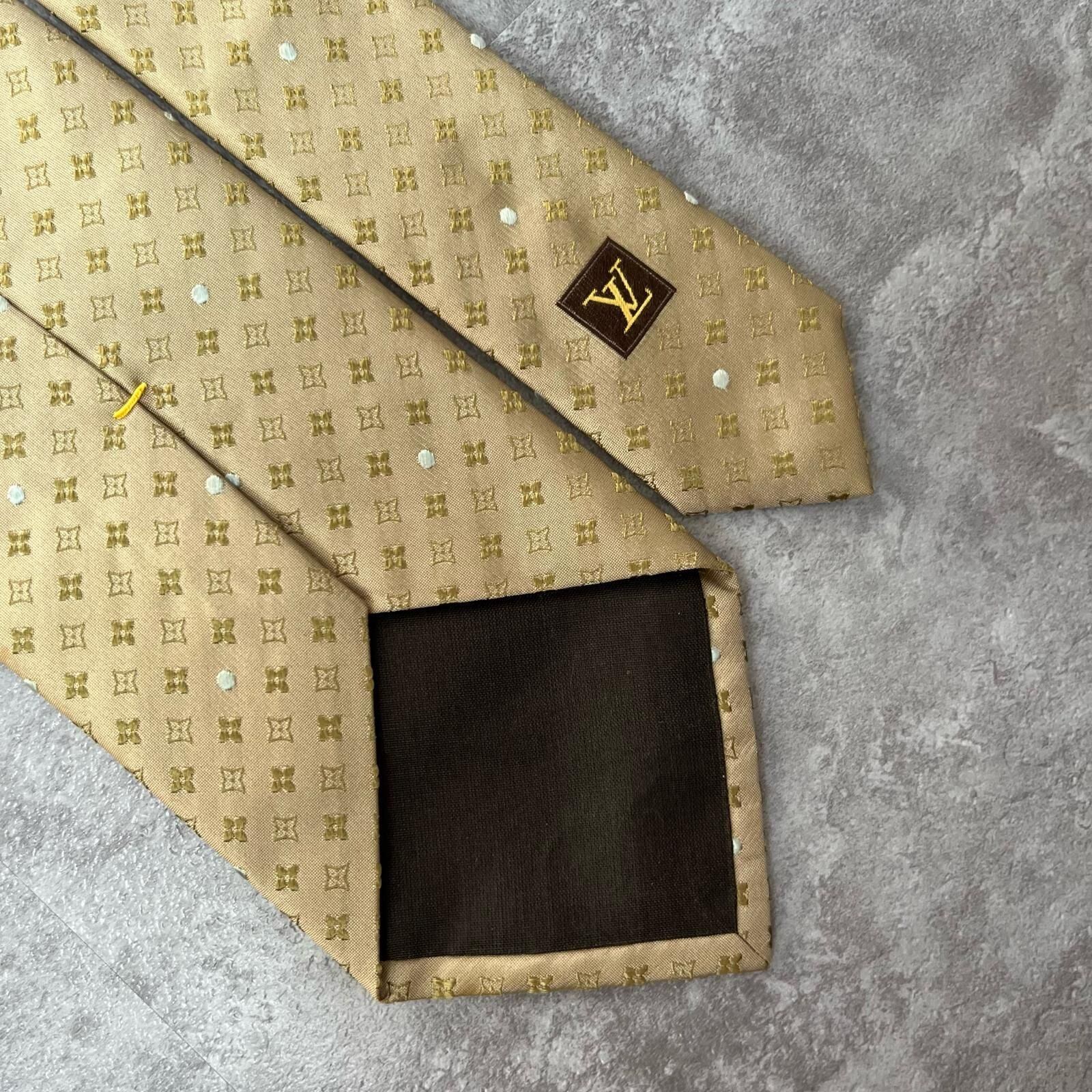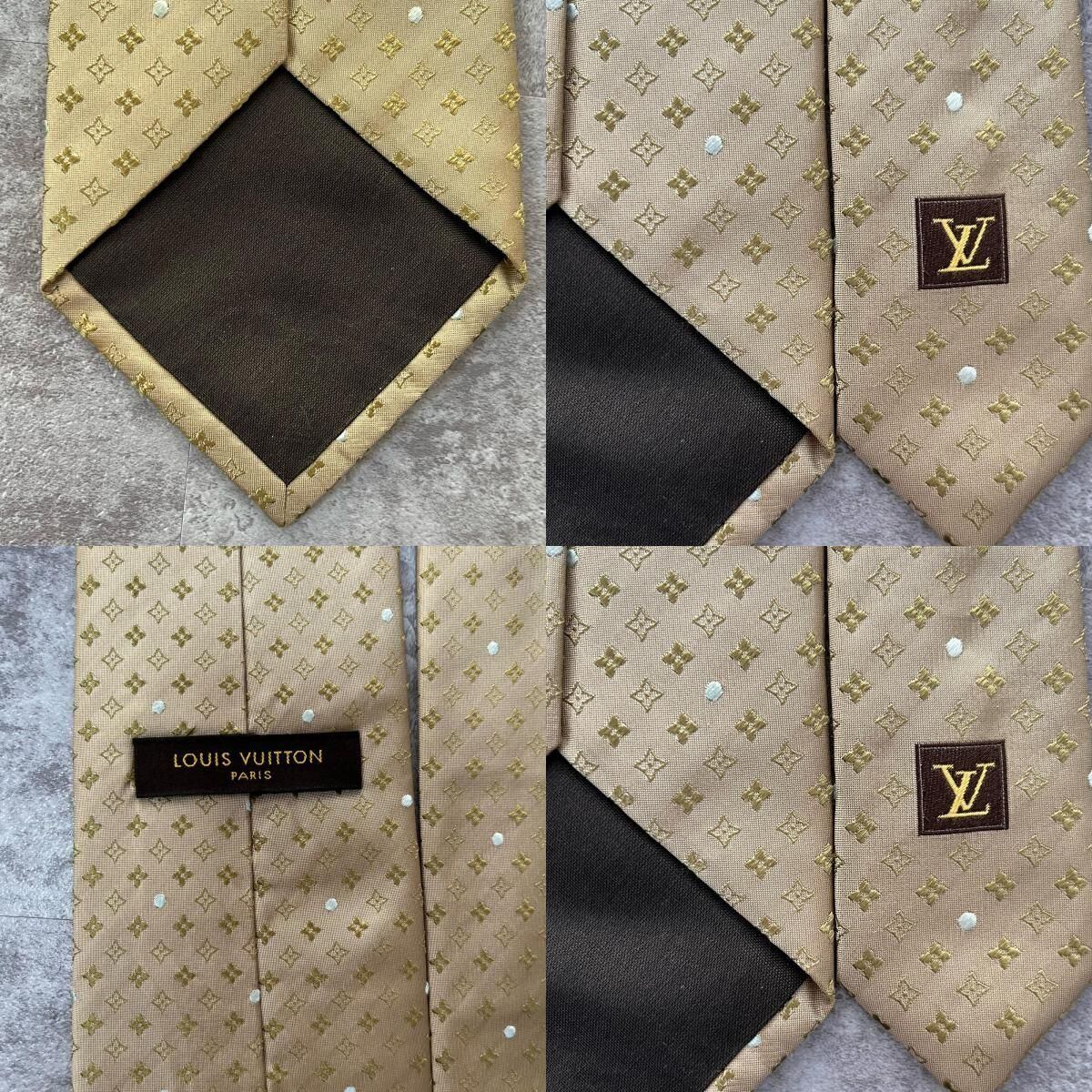 【LOUIS VUITTON】ルイ・ヴィトン モノグラム柄ネクタイ シルク100% メンズ イタリア製 ゴールド 金 ドット柄 光沢肉厚