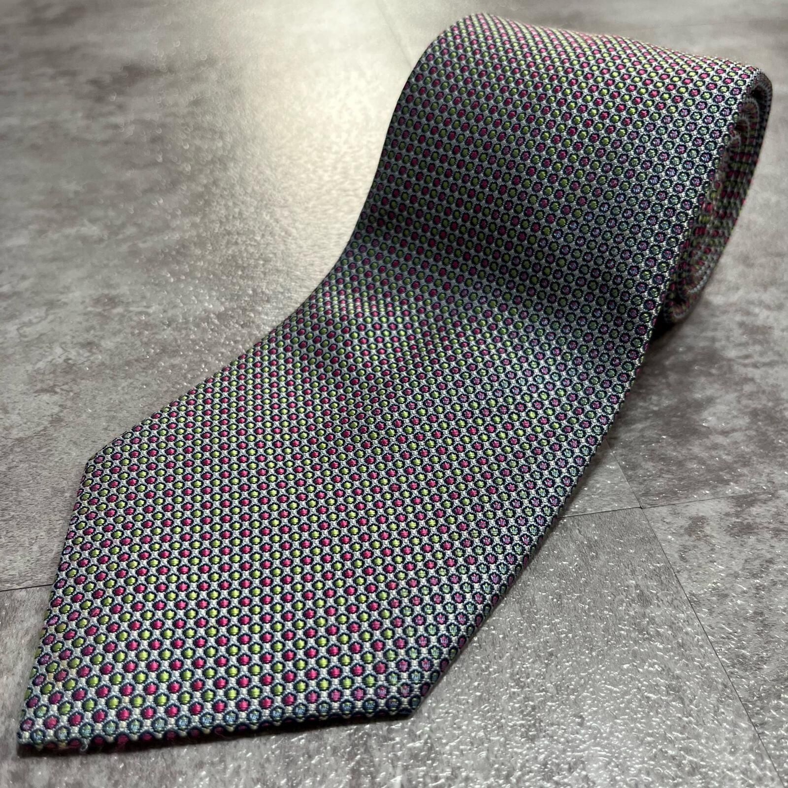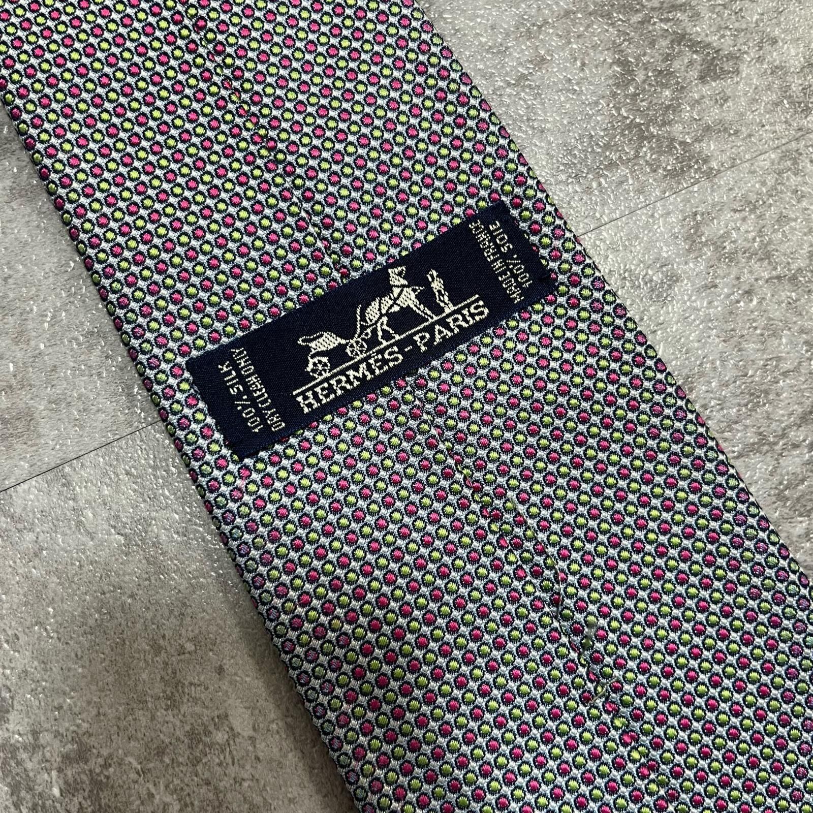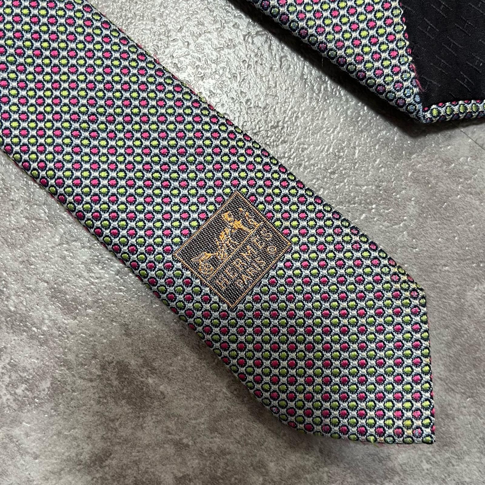 【HERMES】エルメス ドット柄ネクタイ ドットモチーフ シルク100% メンズ フランス製 グリーン 緑色 ピンク ネイビー 紺色 小紋柄 総柄 ビジネスネクタイ ブランドネクタイ ドットデザイン