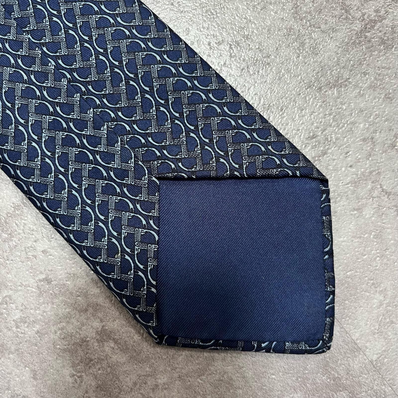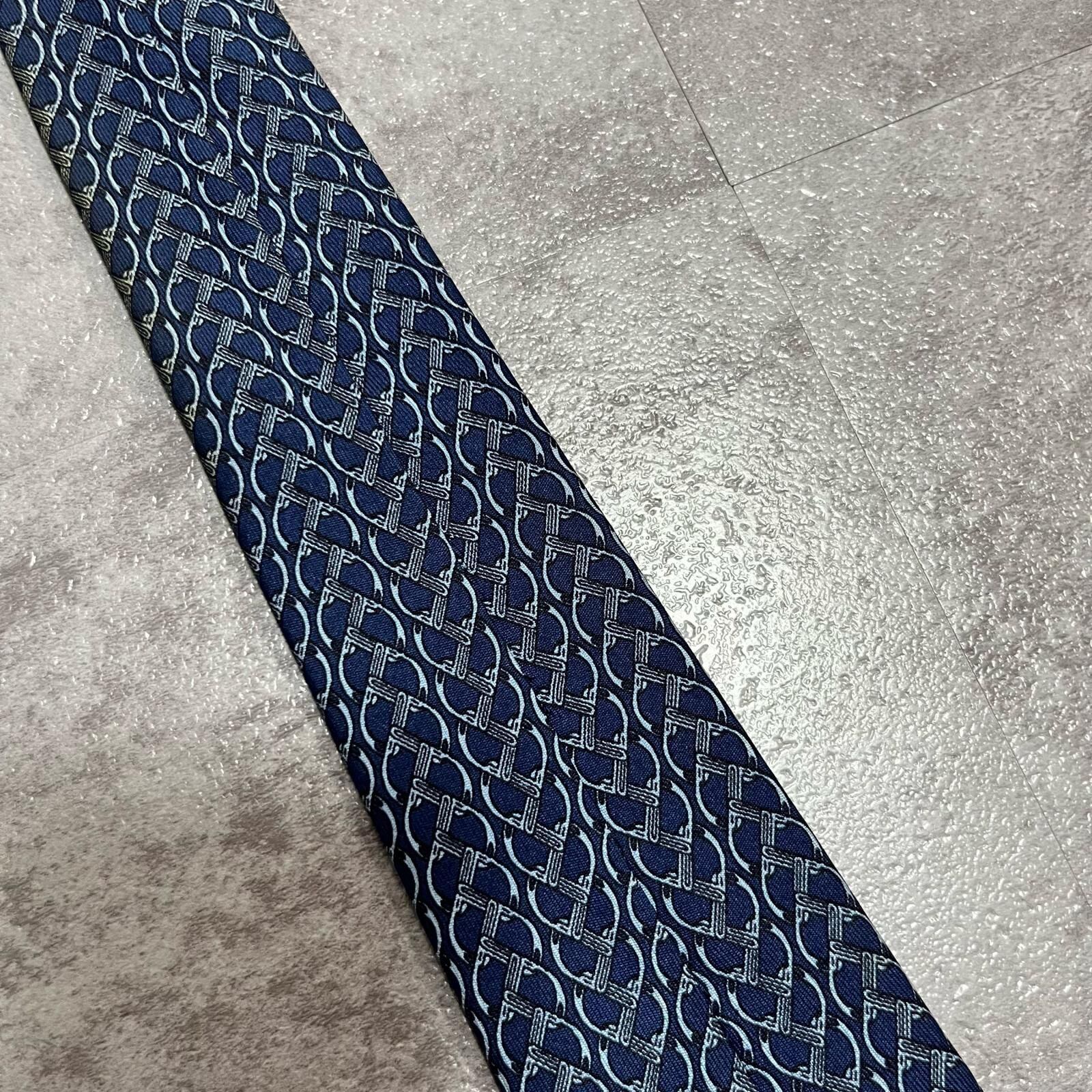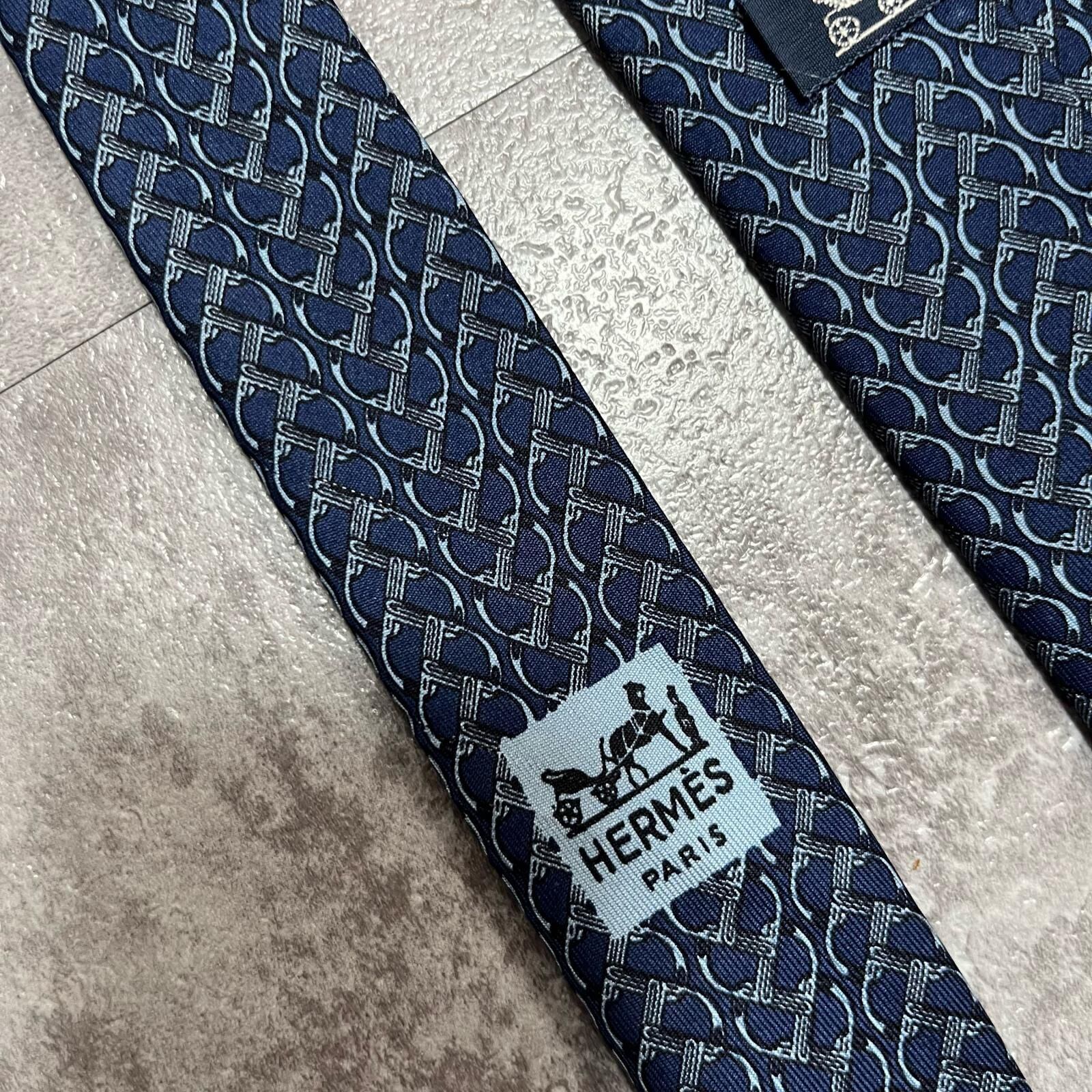 【HERMES】エルメス ベルト柄ネクタイ 馬具モチーフ シルク100% メンズ フランス製 ネイビー 紺色 小紋柄 ビジネスネクタイ ブランドネクタイ フォーマルネクタイ ベルトデザイン