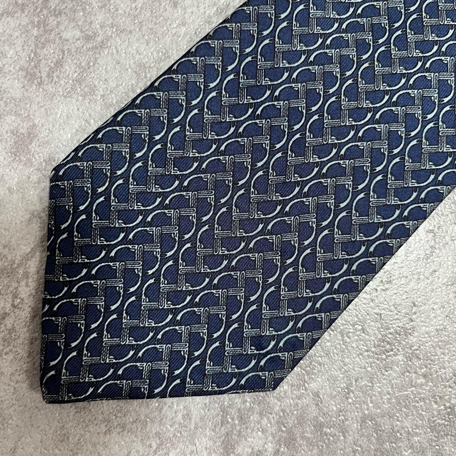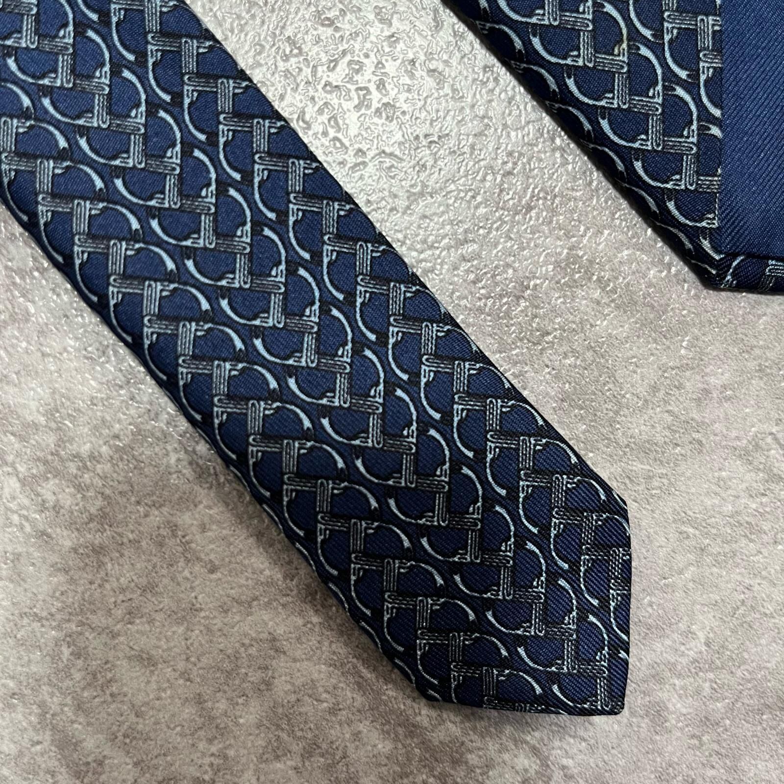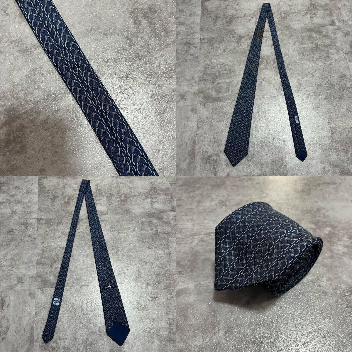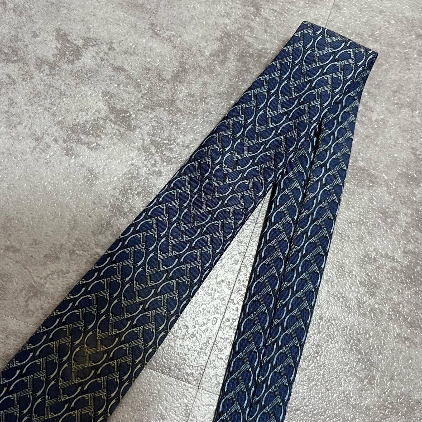 【HERMES】エルメス ベルト柄ネクタイ 馬具モチーフ シルク100% メンズ フランス製 ネイビー 紺色 小紋柄 ビジネスネクタイ ブランドネクタイ フォーマルネクタイ ベルトデザイン
