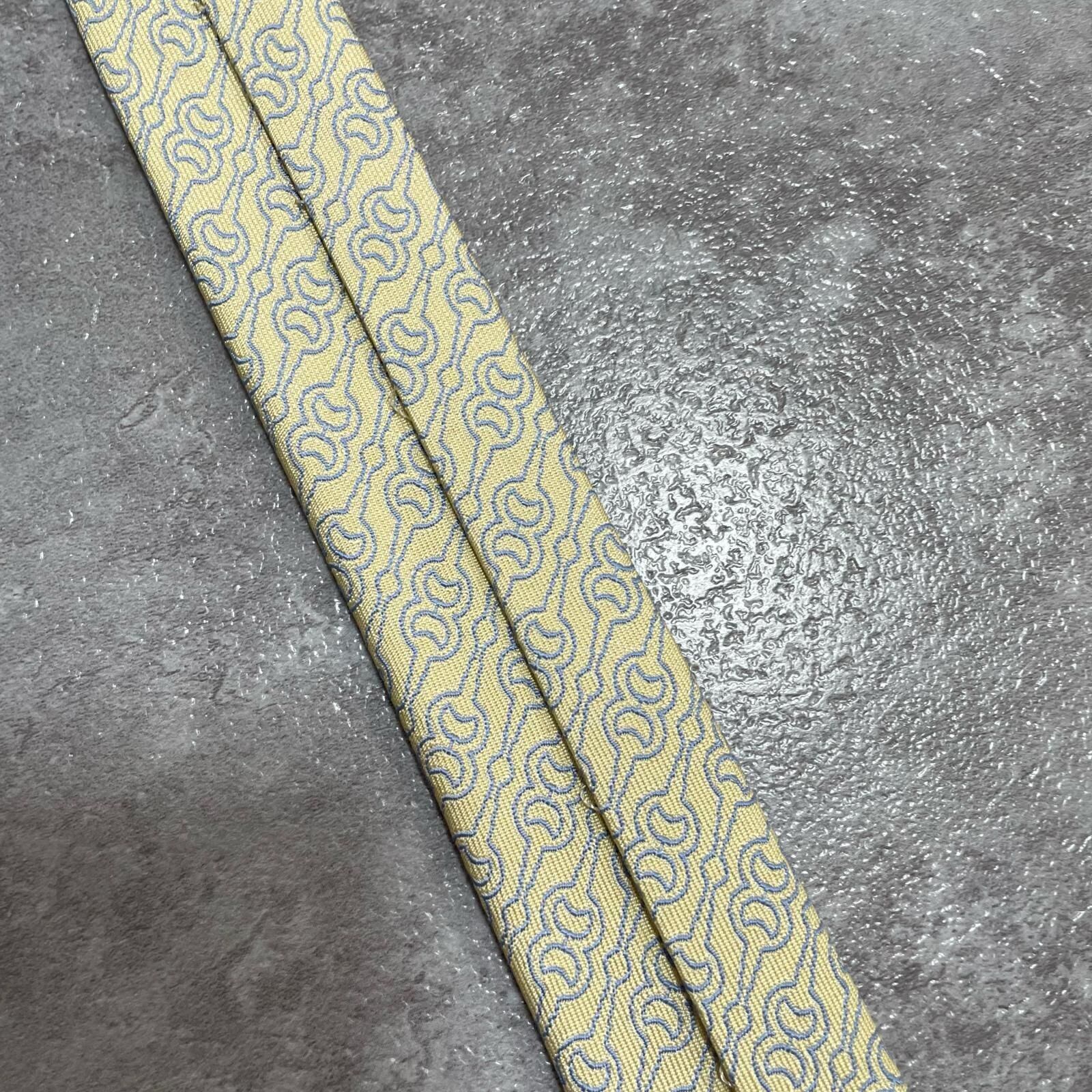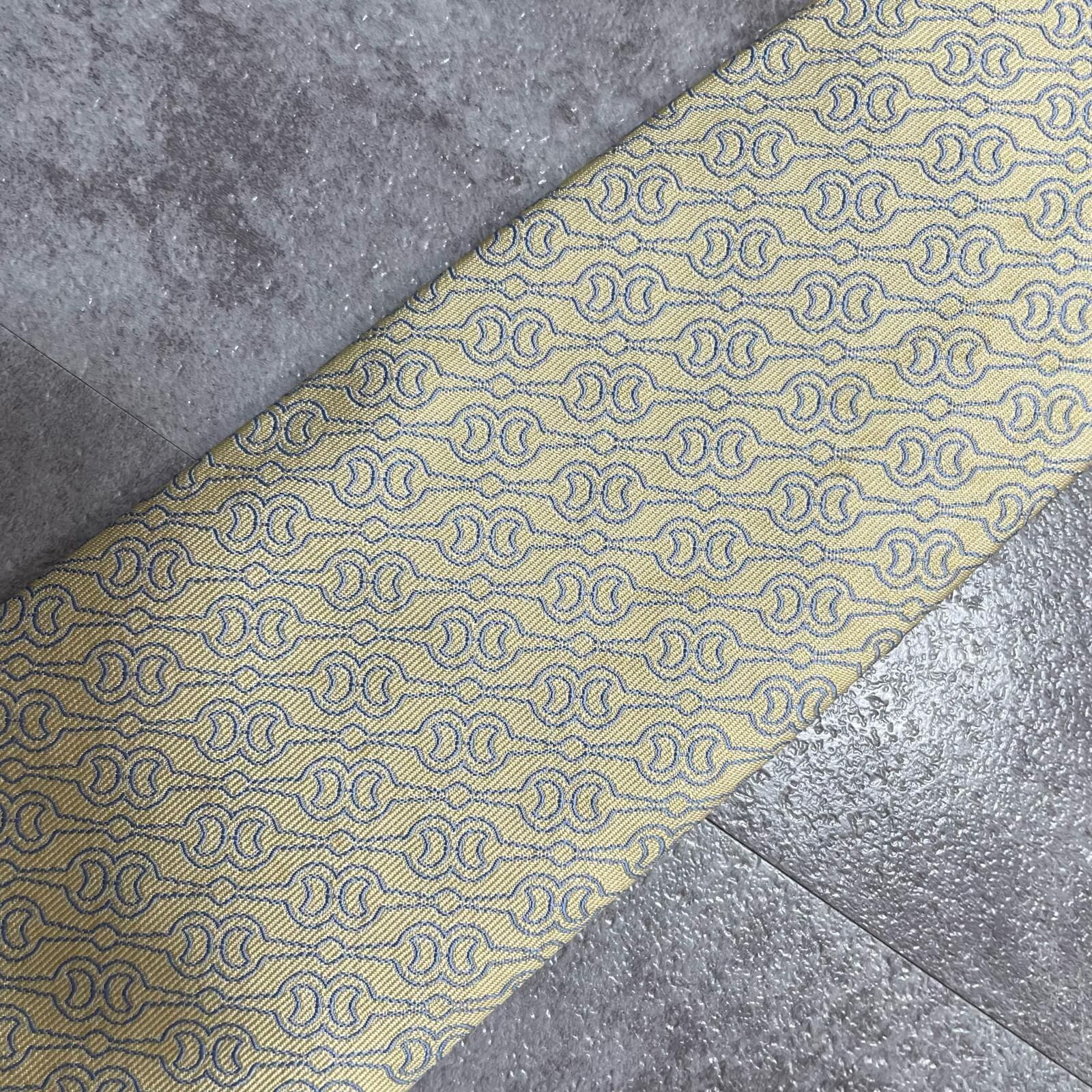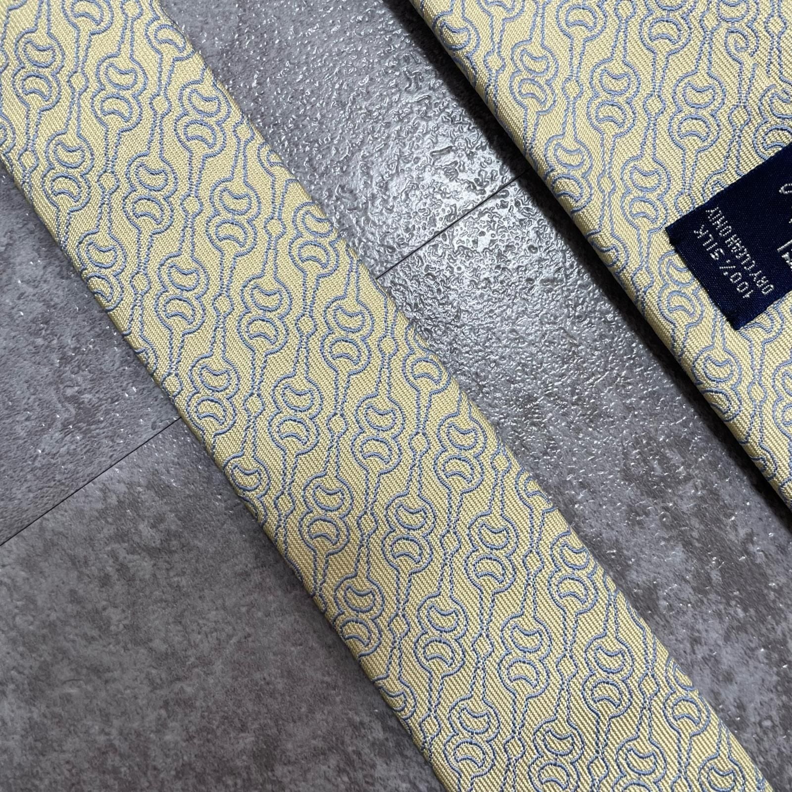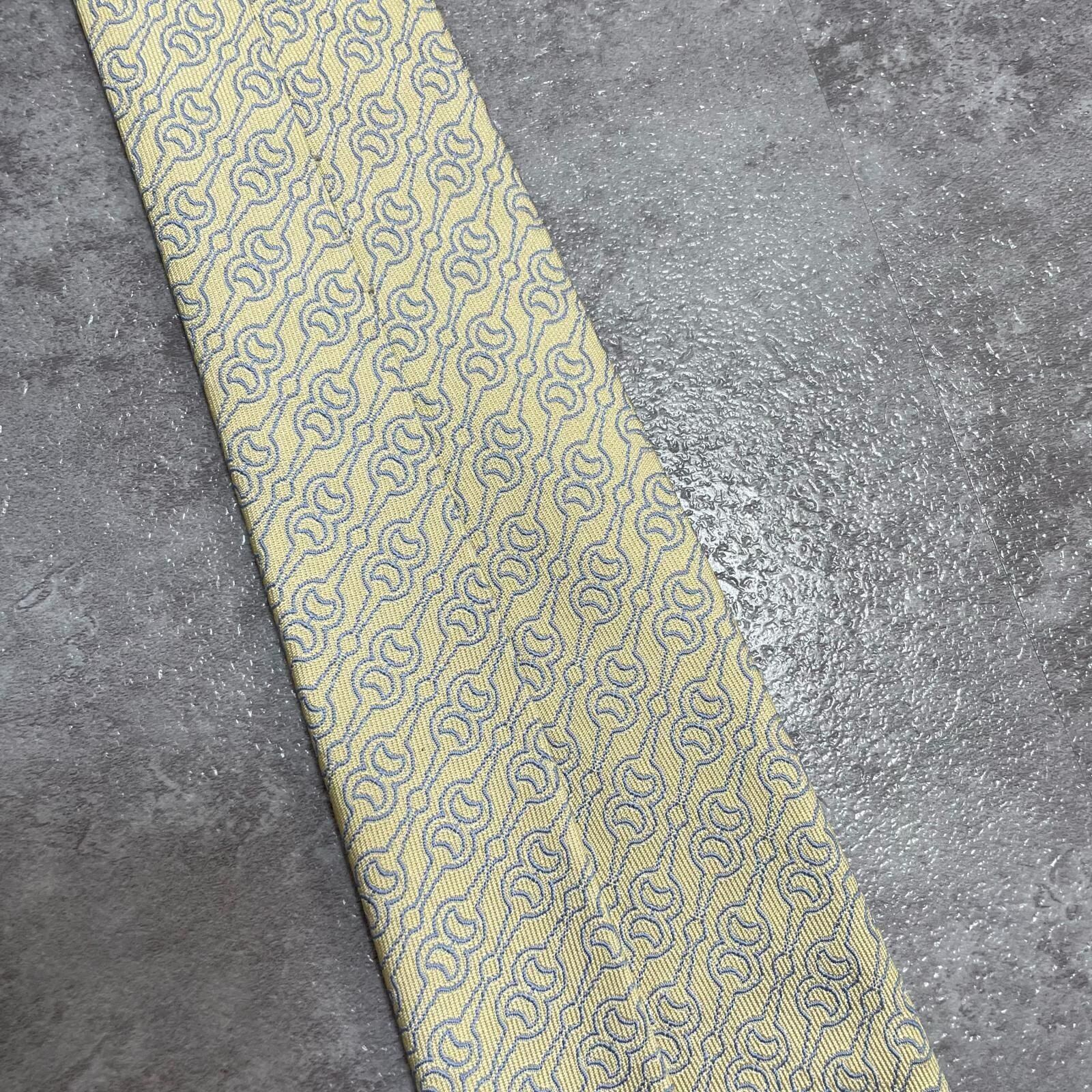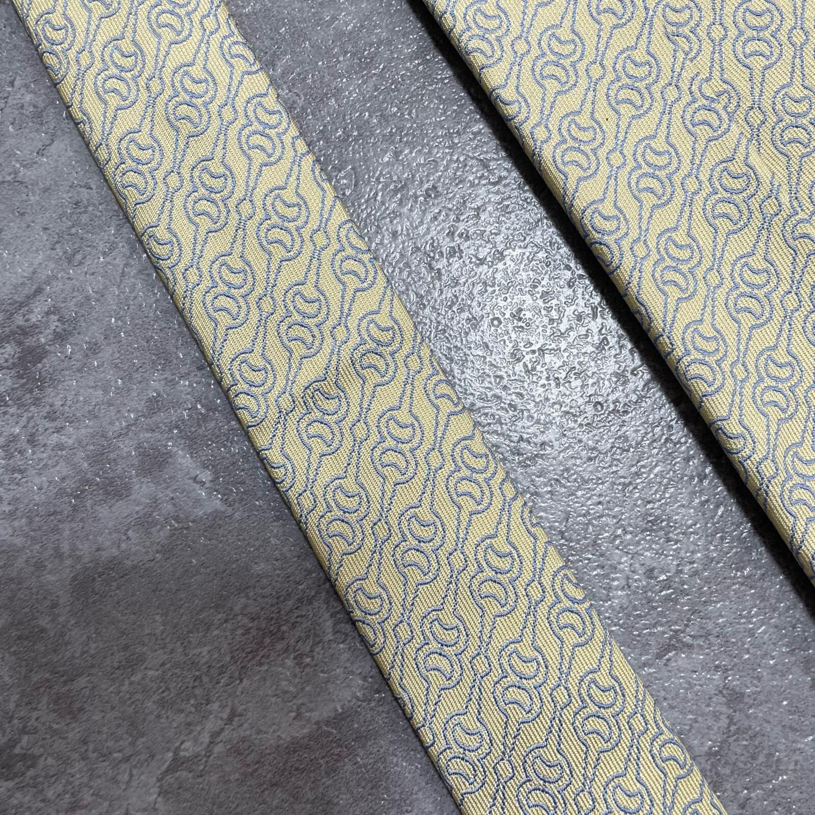 【HERMES】エルメス シェーヌダンクル総柄ネクタイ シルク100% メンズ フランス製 イエロー 黄色 チェーンモチーフ ブランドアイコン ジャガード織 ビジネス向け ヴィンテージ