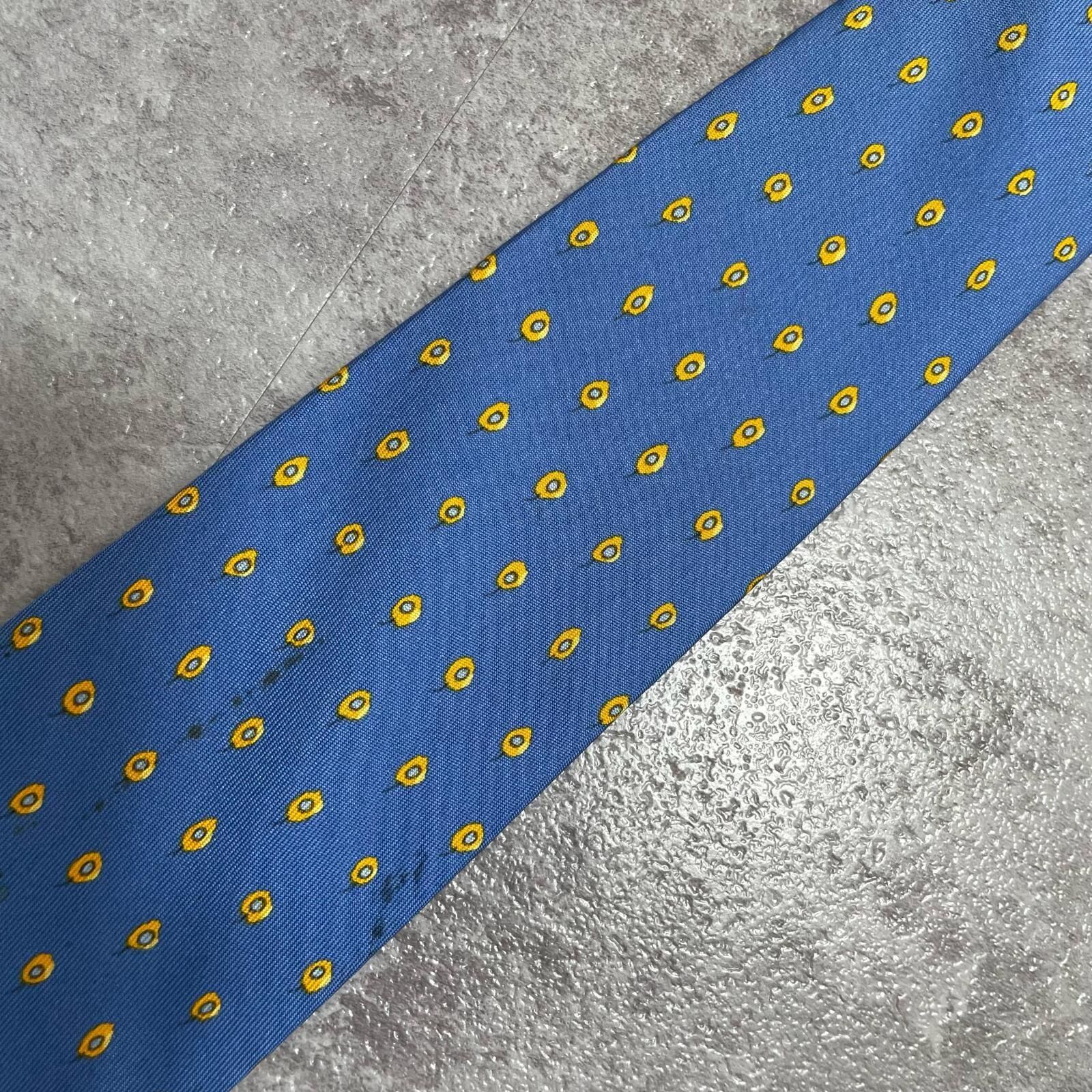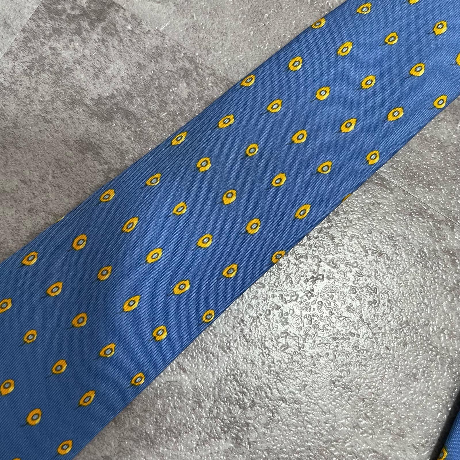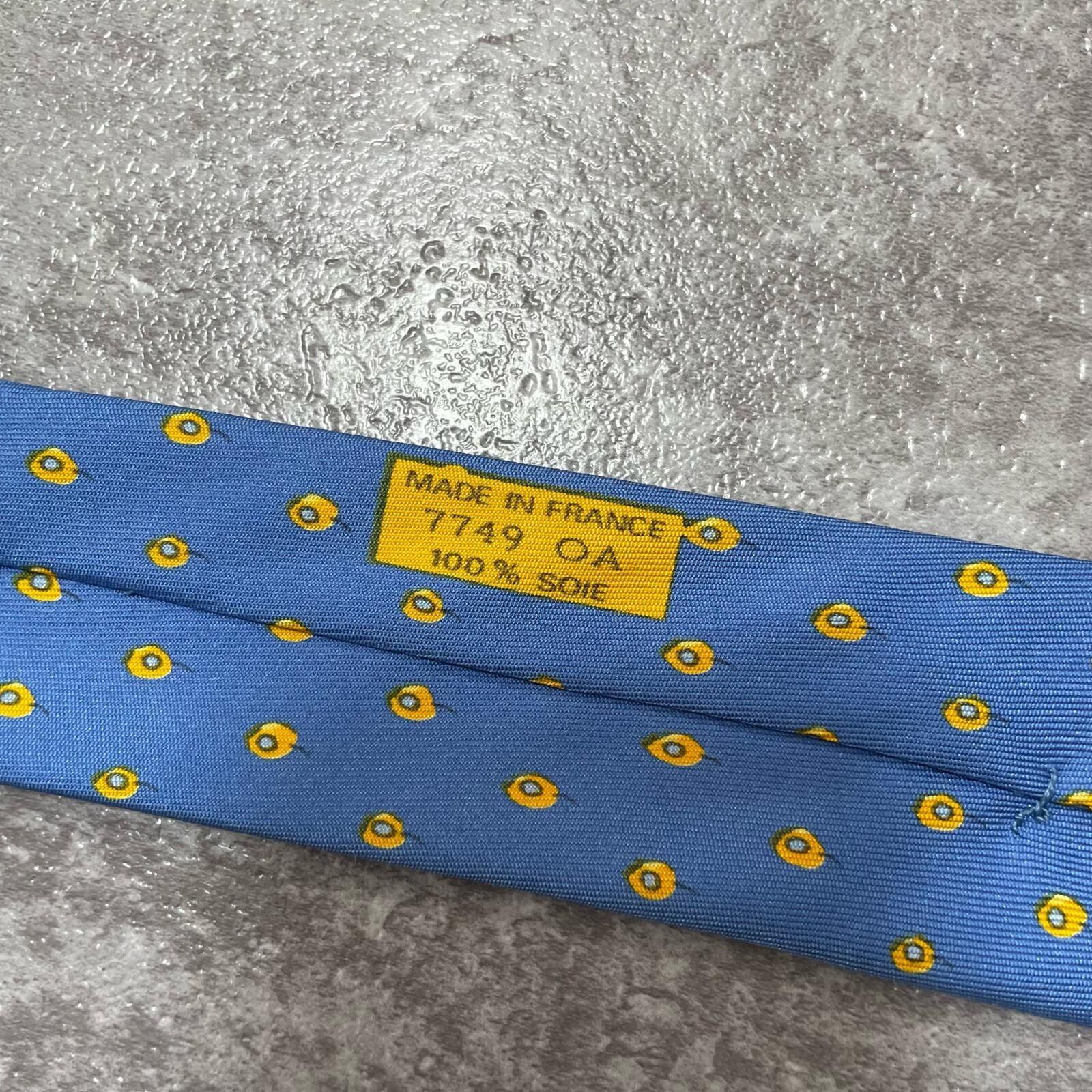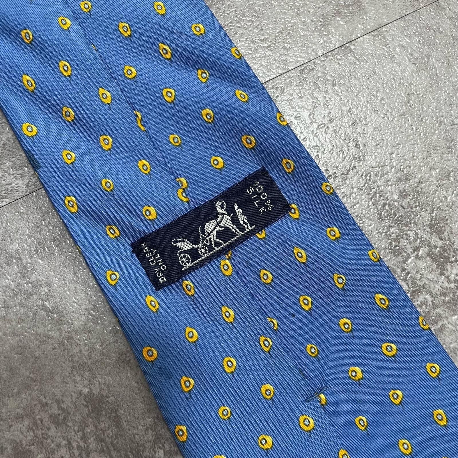 【HERMES】エルメス 小紋柄ネクタイ シルク100% メンズ フランス製 ブルー 青色 ドット調総柄 ブランドネクタイ ビジネス向け ヴィンテージ
