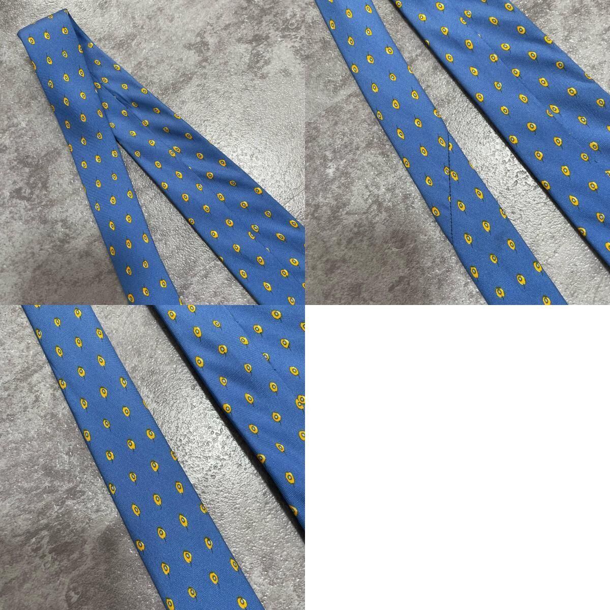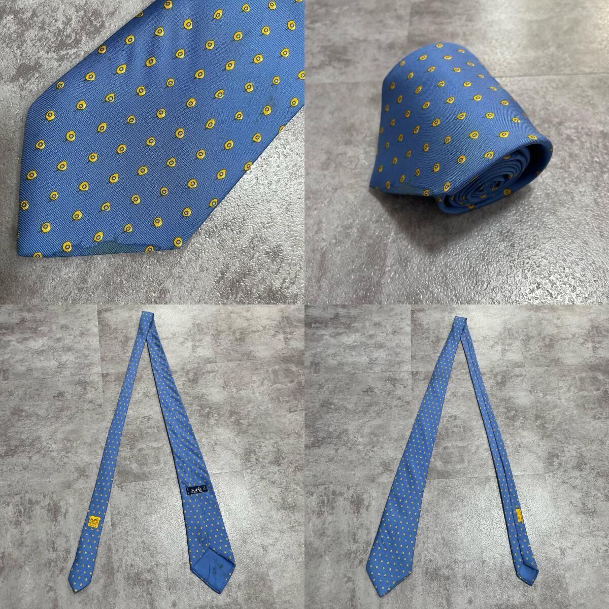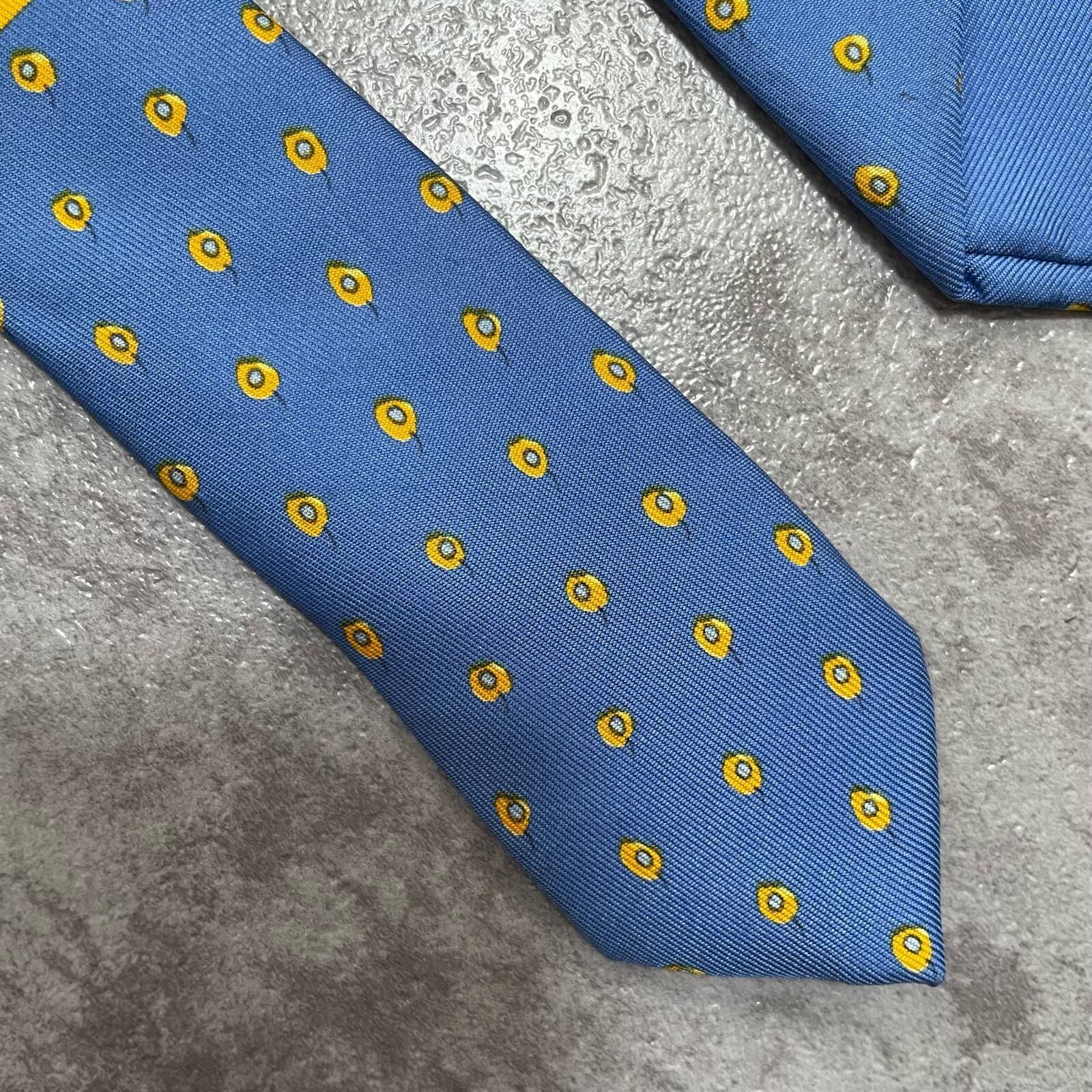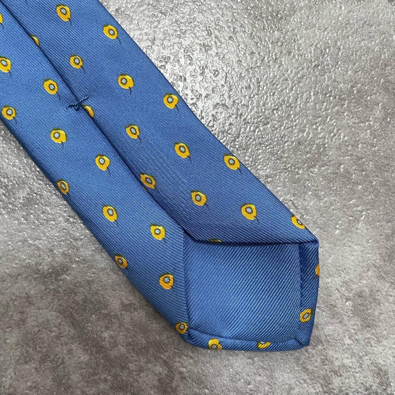 【HERMES】エルメス 小紋柄ネクタイ シルク100% メンズ フランス製 ブルー 青色 ドット調総柄 ブランドネクタイ ビジネス向け ヴィンテージ