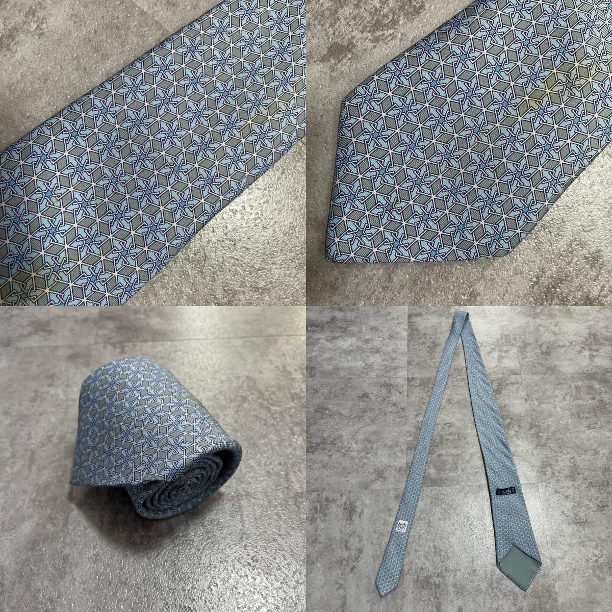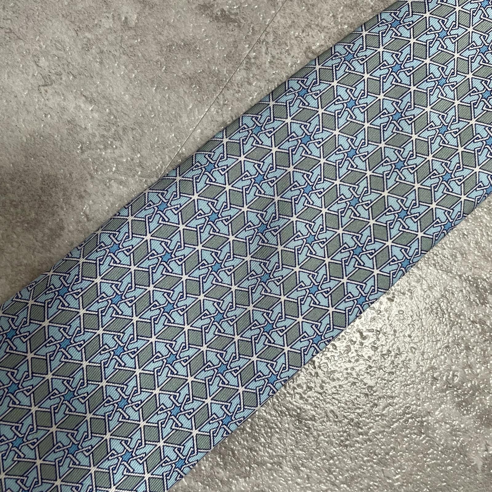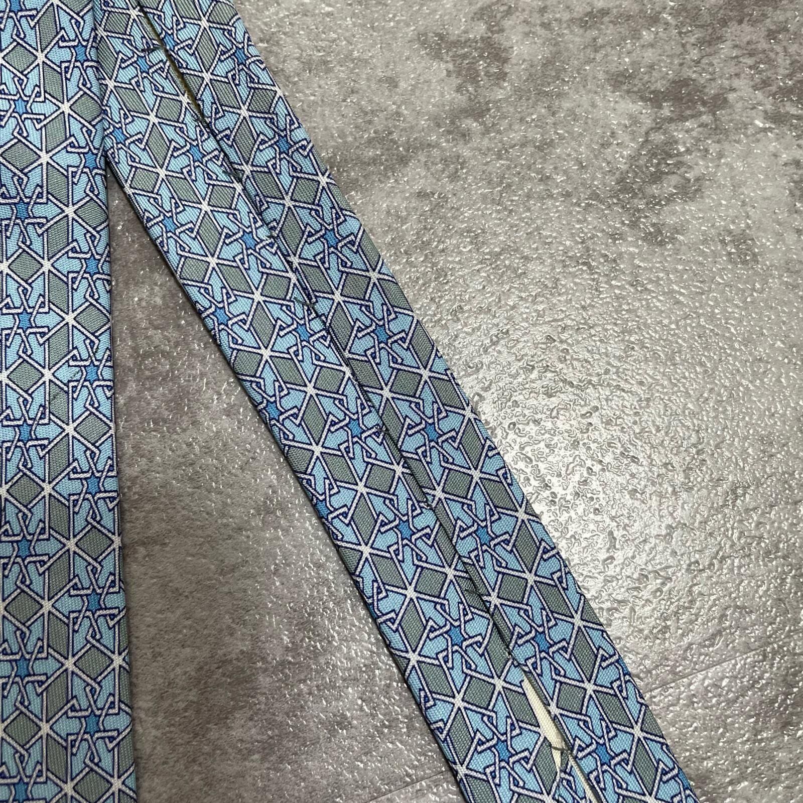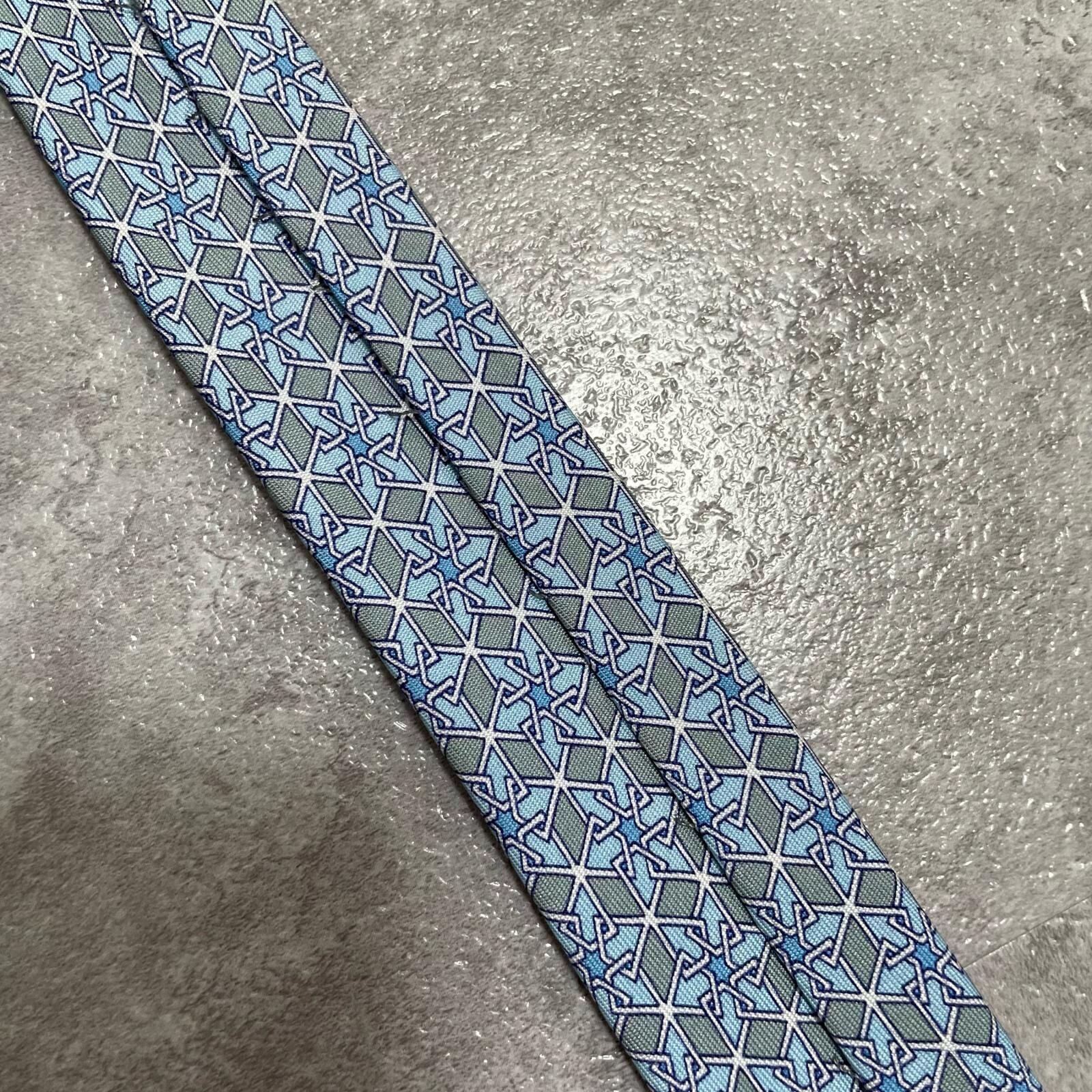 【HERMES】エルメス 幾何学柄ネクタイ シルク100% メンズ ブルー 青 水色 フランス製 ビジネス向け バイカラー