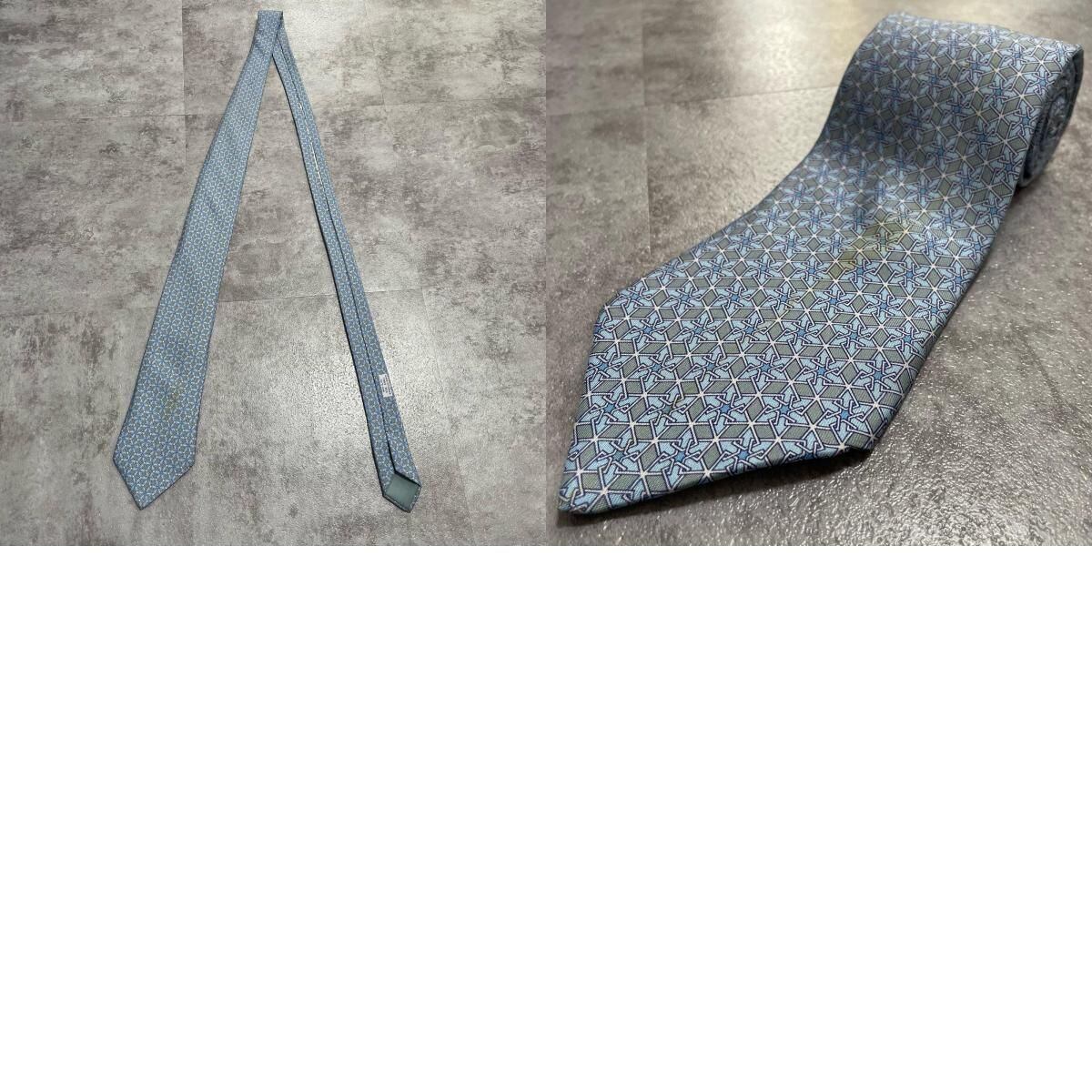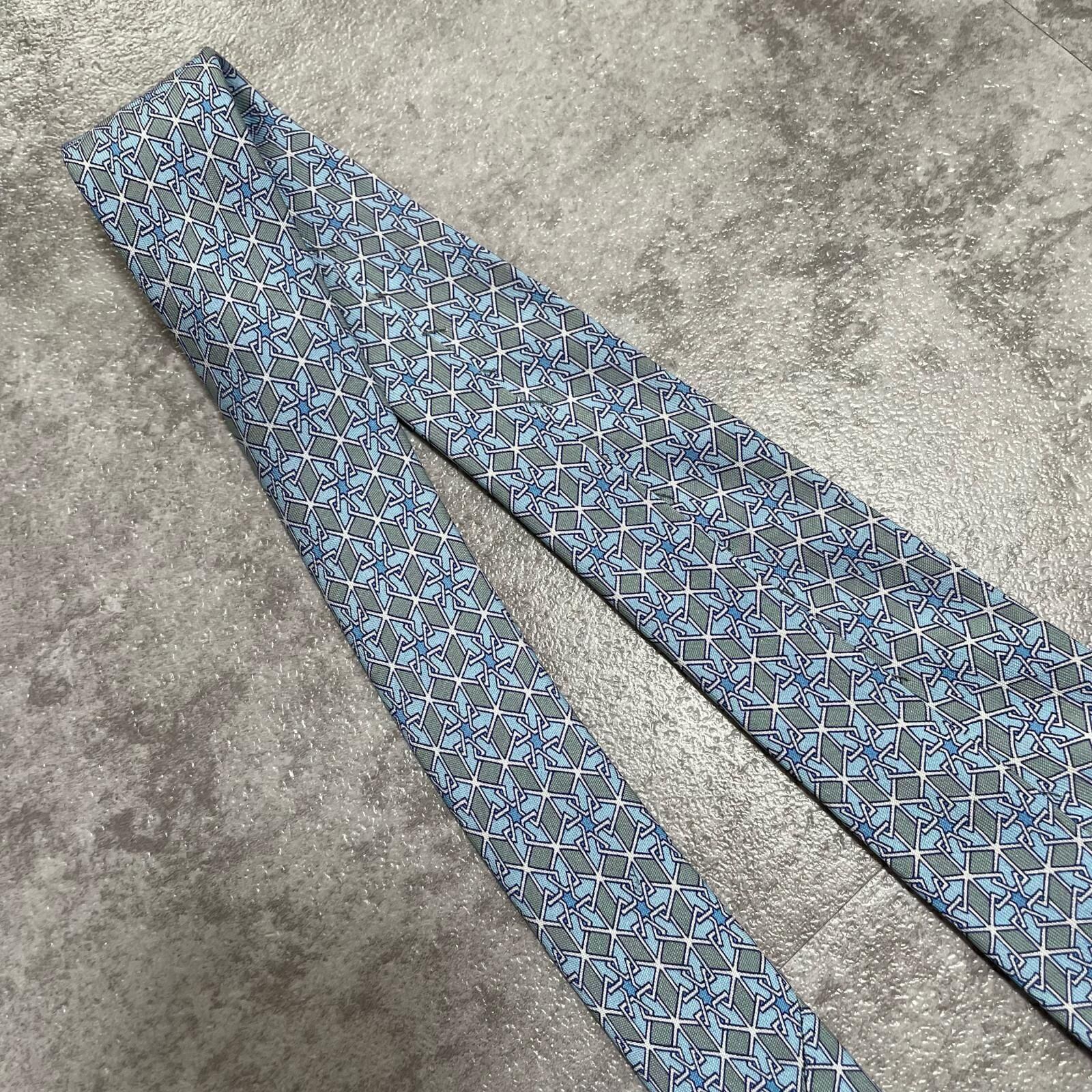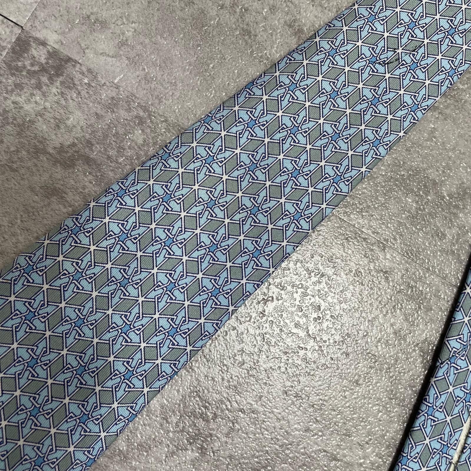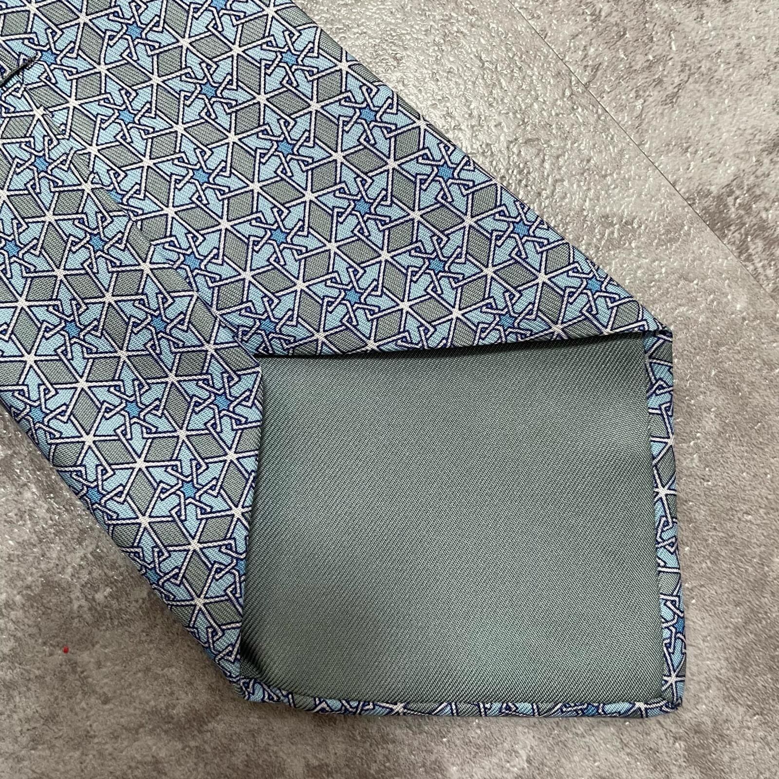 【HERMES】エルメス 幾何学柄ネクタイ シルク100% メンズ ブルー 青 水色 フランス製 ビジネス向け バイカラー