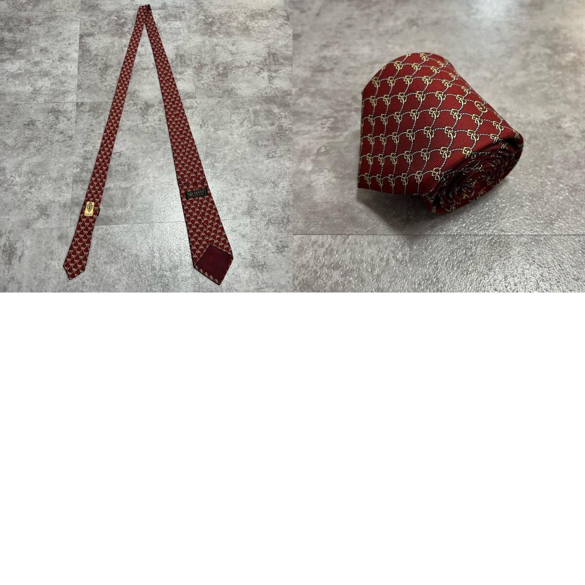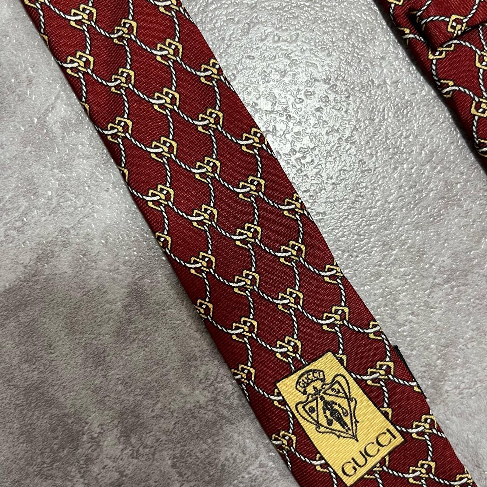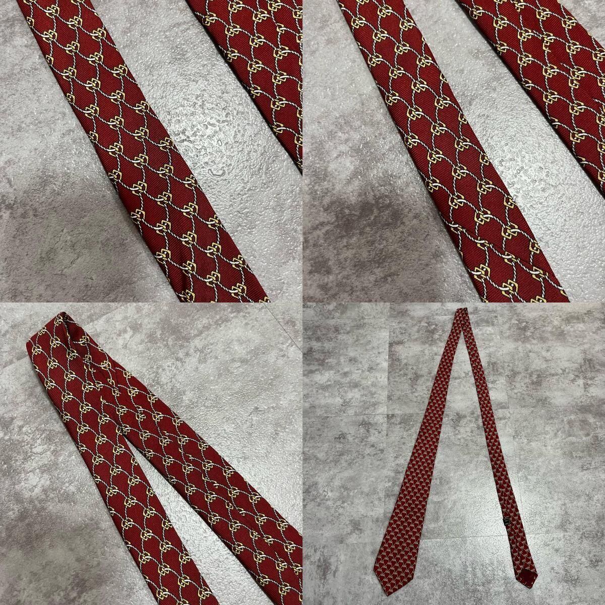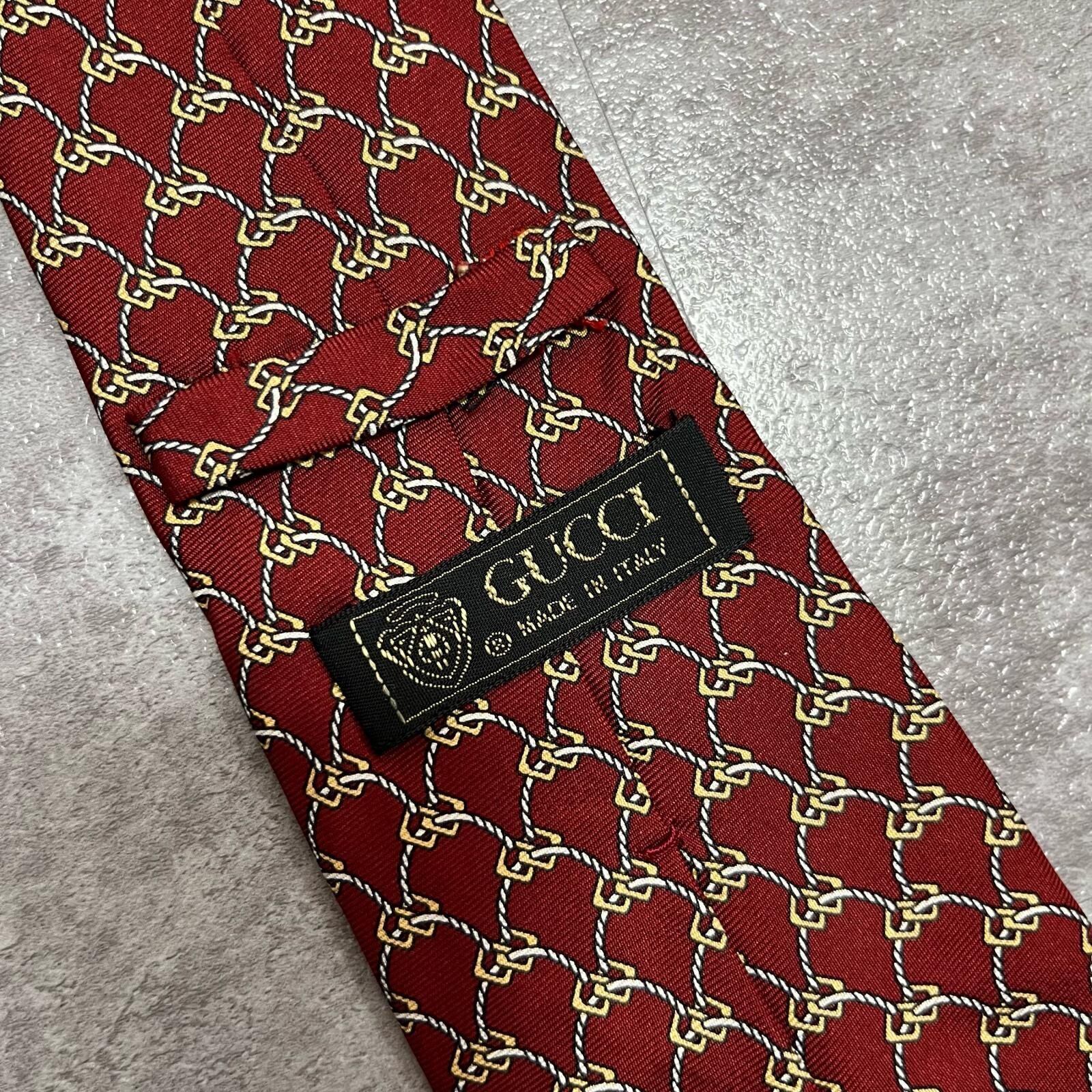 【GUCCI】グッチ 総ロゴネクタイ シルク100% メンズ GGロゴ レッド 赤 GGモチーフ チェーン柄 チェック柄 イエロー 黄色 オールドグッチ ヴィンテージ Y2K イタリア製