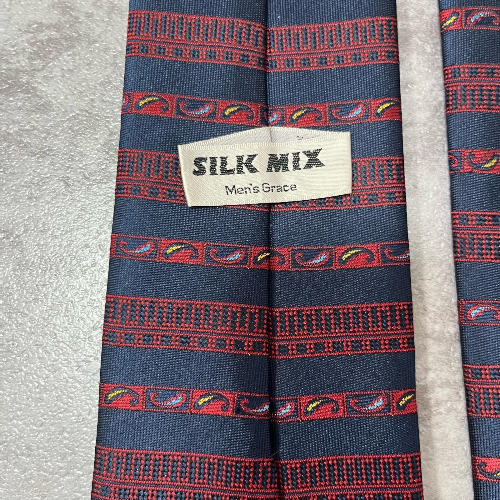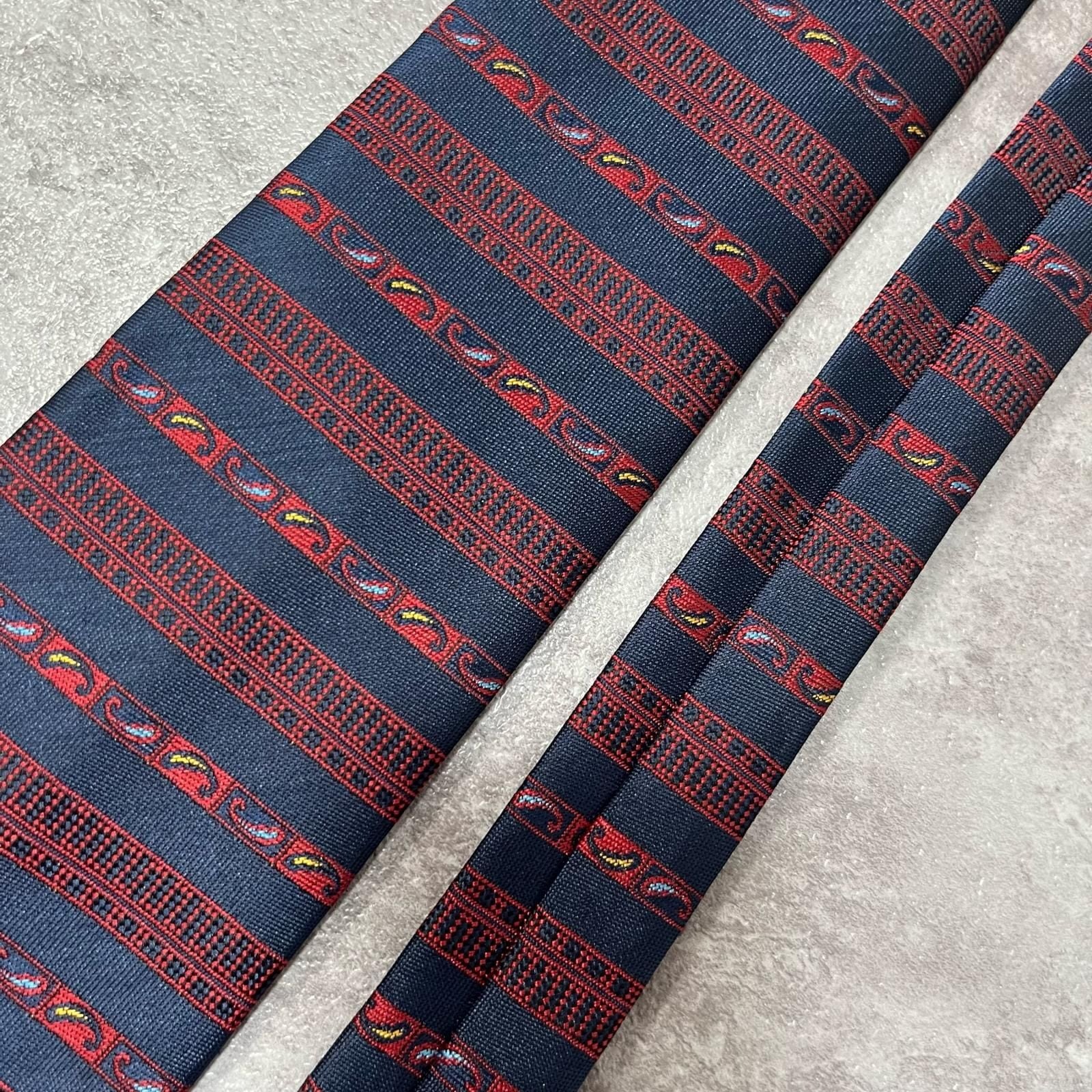 【ボーダー柄】ボーダー柄ネクタイ ペイズリーモチーフ メンズ 日本製 ネイビー 紺色 レッド 赤色 イエロー 黄色 マルチカラー ボーダー柄ネクタイ ペイズリー柄ネクタイ ジャガード織り クラシックデザイン ビジネス向け ヴィンテージ